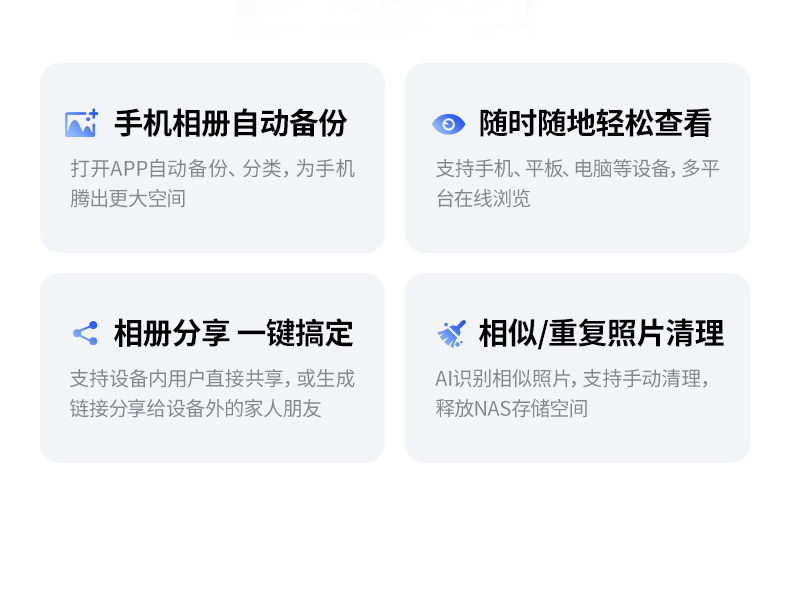 | Color Classification | [Space Gray] Standard Edition★3.5/ 2.5inch Hard Drive Neutral,[Space Gray] 8t Version★Equipped with 4t*2 Seagate Coolwolf Nas Disk,[Space Gray] 16t Version★Equipped with 8t*2 Seagate Coolwolf Nas Disk,[Space Gray] 16t Version★Equipped with 4t*4 Seagate Coolwolf Nas Disk,[Space Gray] 32t Version★Equipped with 8t*4 Seagate Coolwolf Nas Disk,[Space Gray] 8t Version★Equipped with 4t*2 Western Digital Red Disk Plus Nas Disk,[Space Gray] 16t Version★Equipped with 8t*2 Western Digital Red Disk Plus Nas Disk,[Space Gray] 16t Version★Equipped with 4t*4 Western Digital Red Disk Plus Nas Disk,[Space Gray] 32t Version★Equipped with 8t*4 Western Digital Red Disk Plus Nas Disk,[Ice White] Standard Edition★3.5/ 2.5inch Hard Drive Neutral,[Ice White] 8t Version★Equipped with 4t*2 Seagate Coolwolf Nas Disk,[Ice White] 16t Version★Equipped with 8t*2 Seagate Coolwolf Nas Disk,[Ice White] 8t Version★Equipped with 4t*2 Western Digital Red Disk Plus Nas Disk,[Ice White] 16t Version ★ Equipped with 8t*2 Western Digital Red Disk Plus Nas Disk |