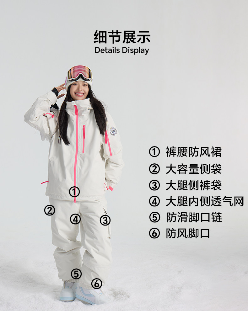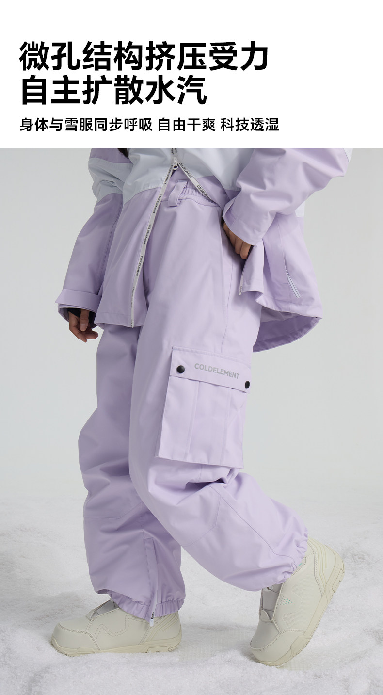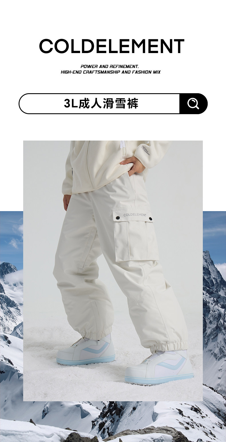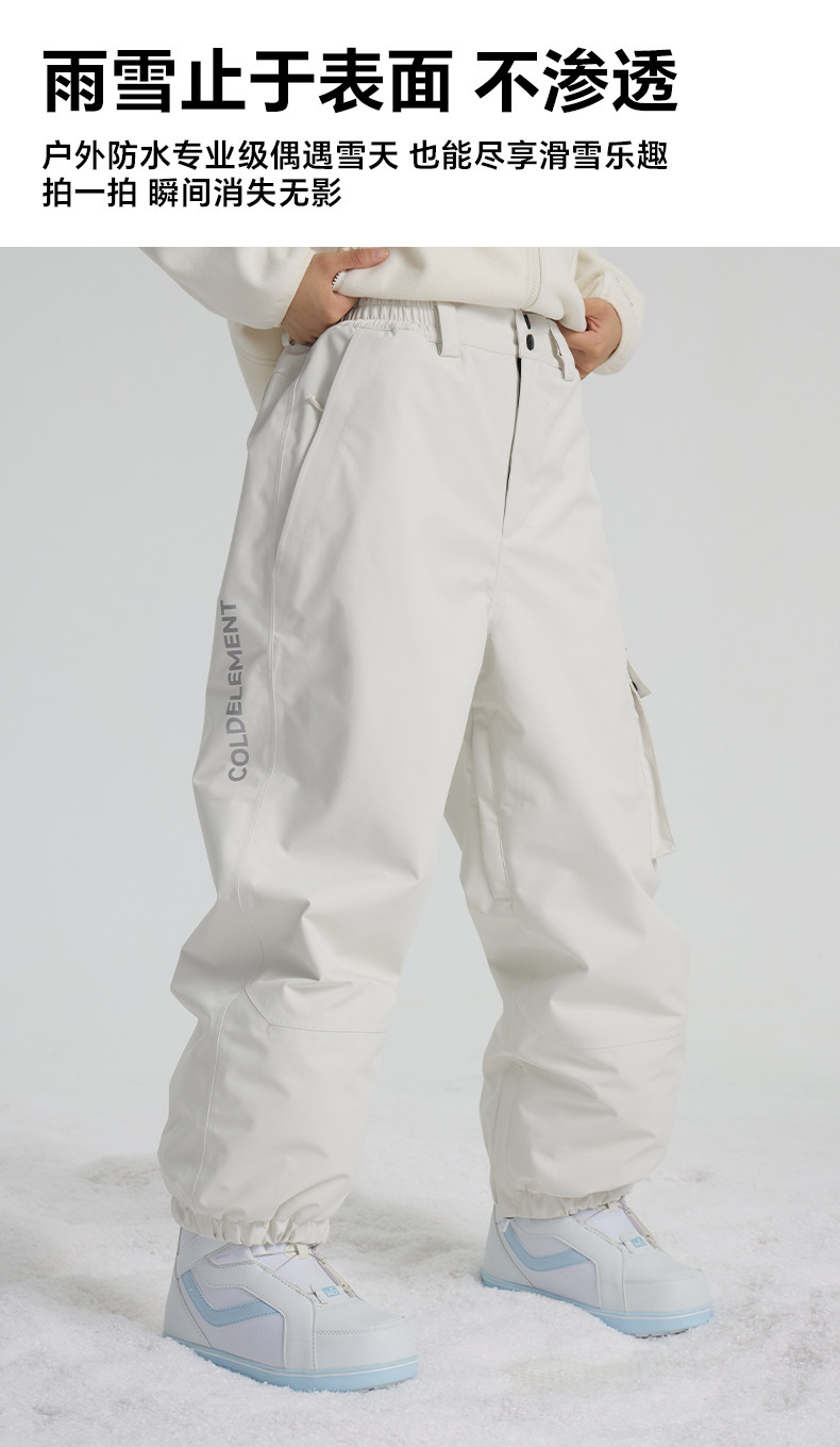 Coldelement Ski Pants for Women and Men, Warm, Snowboard, Waterproof, White, Windproof, Professional 3L Loose Pants, Snow Wear
