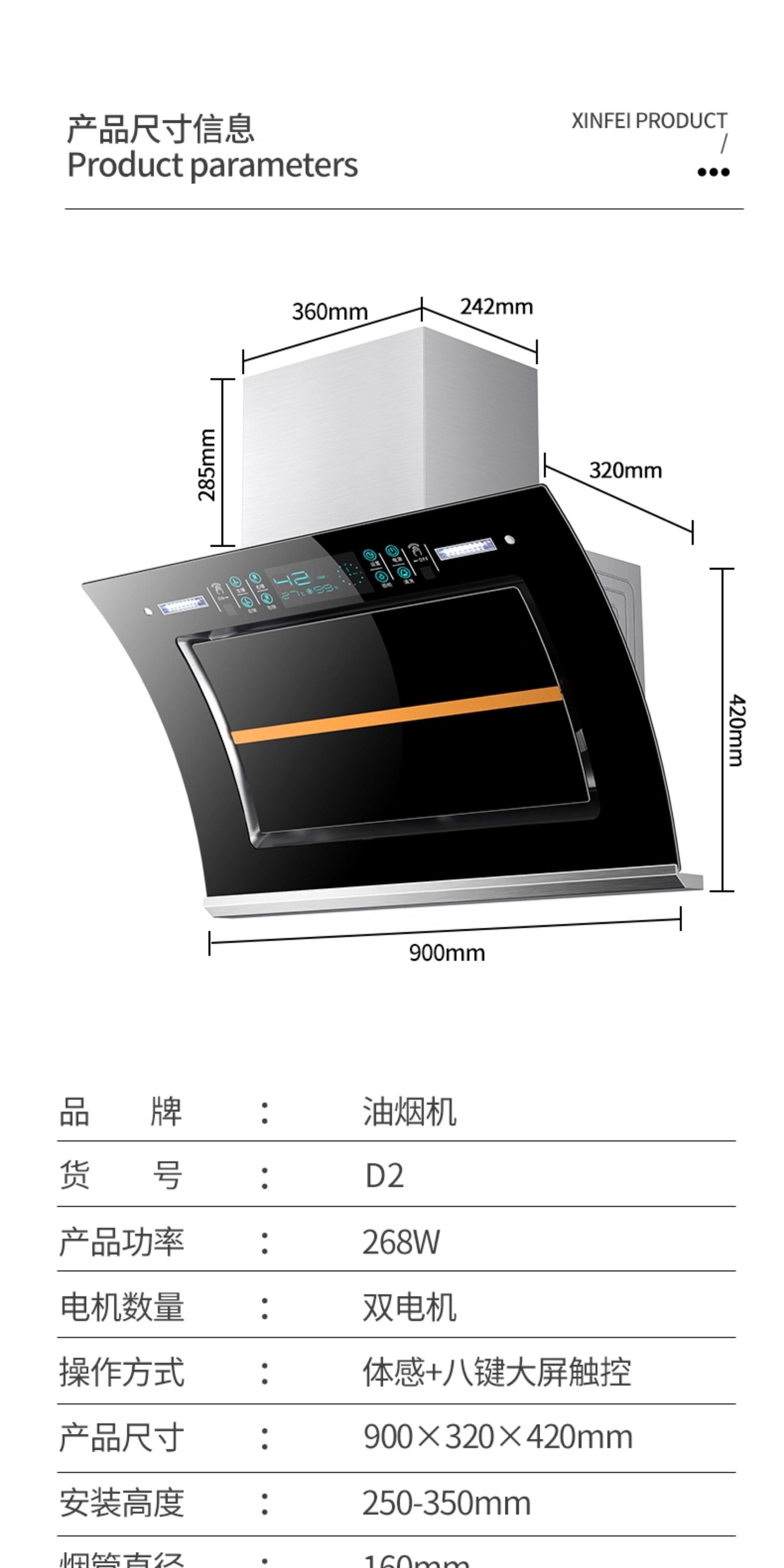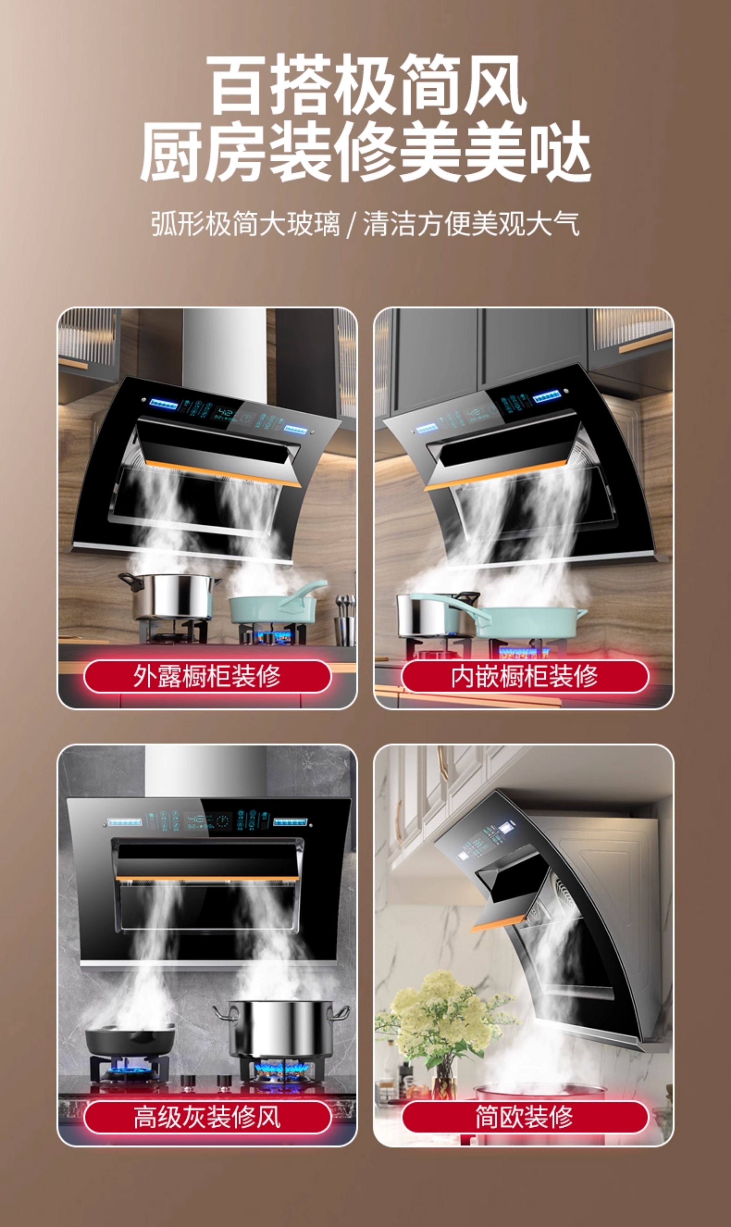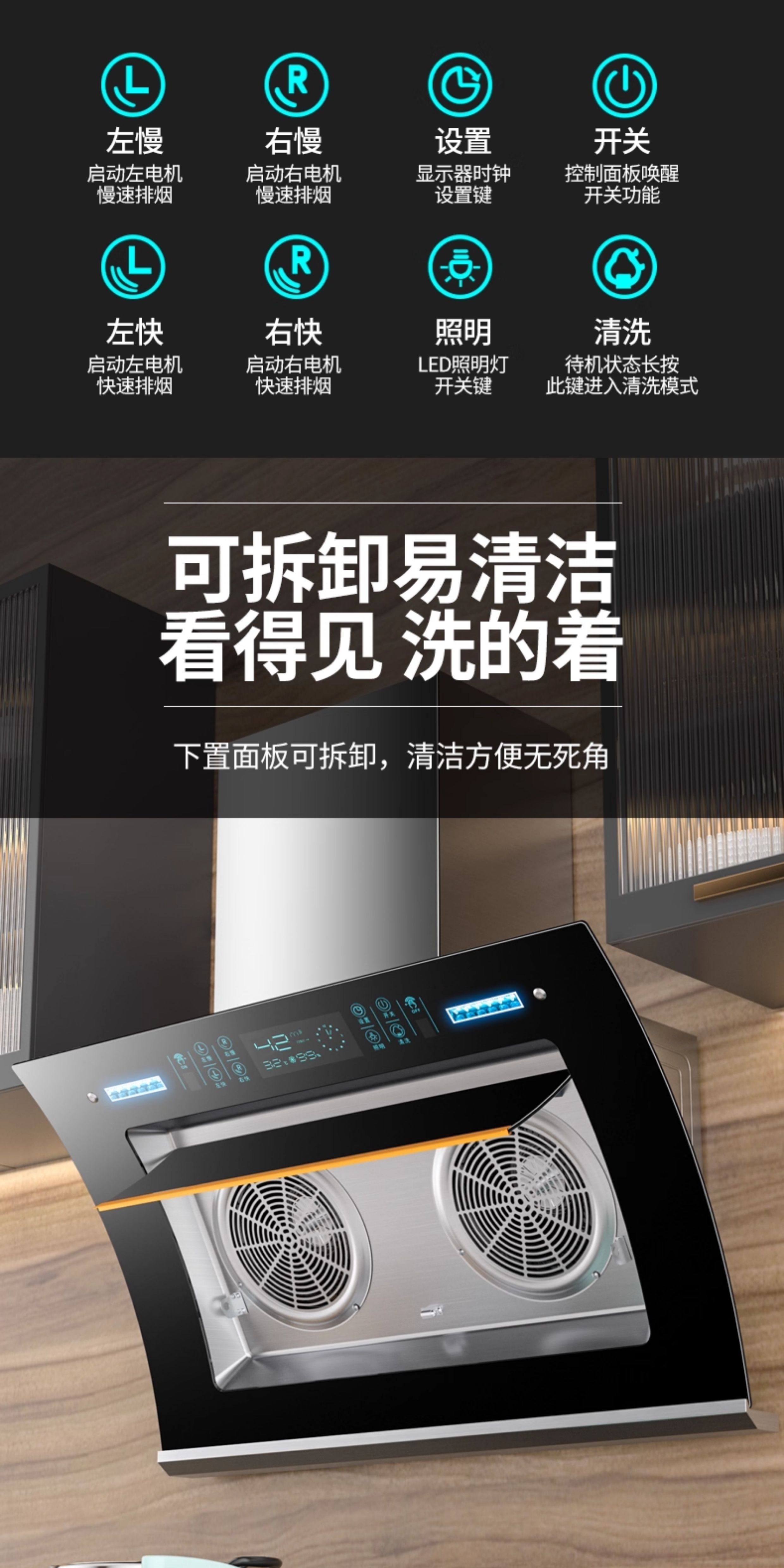 Good Wife High Suction Range Hood for Home Kitchen, Side Suction, No Disassembly or Cleaning Required, Suitable for Dual Motors, Small Range Hood