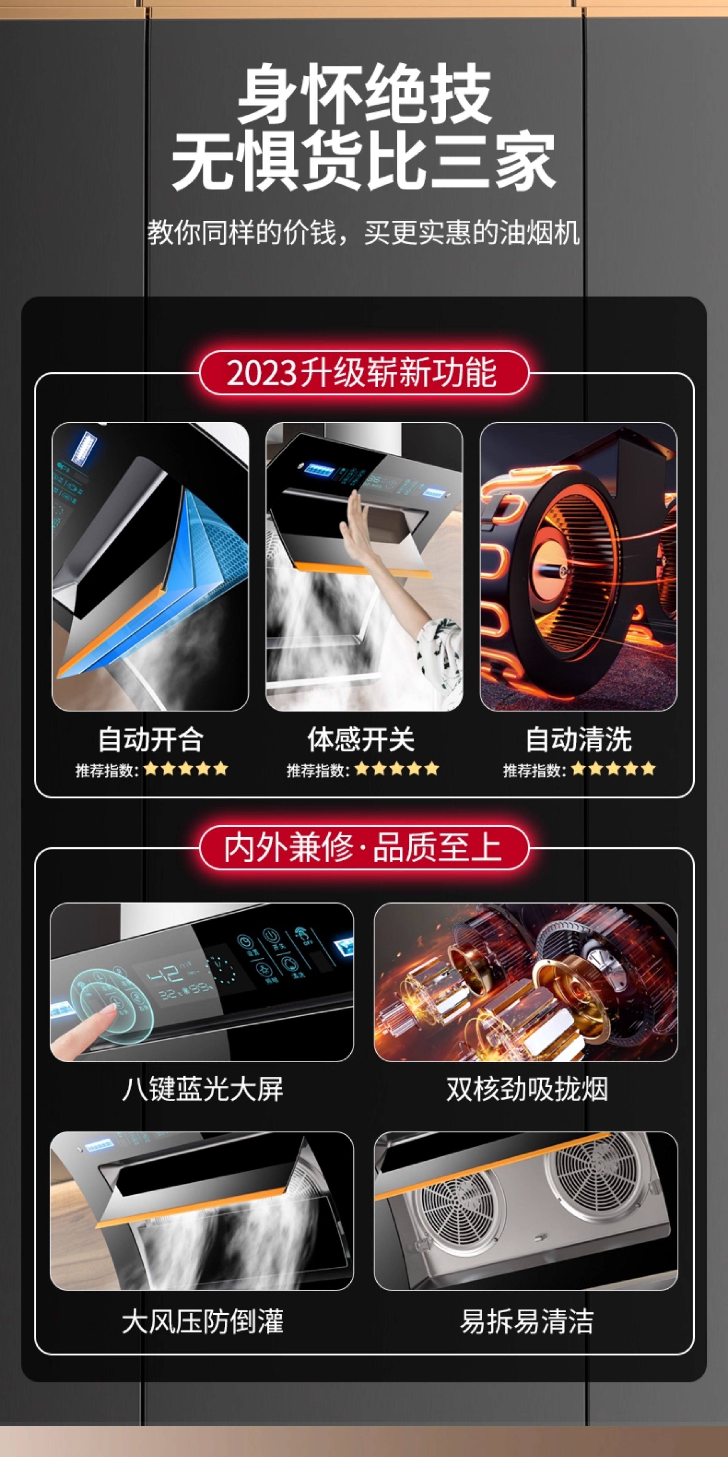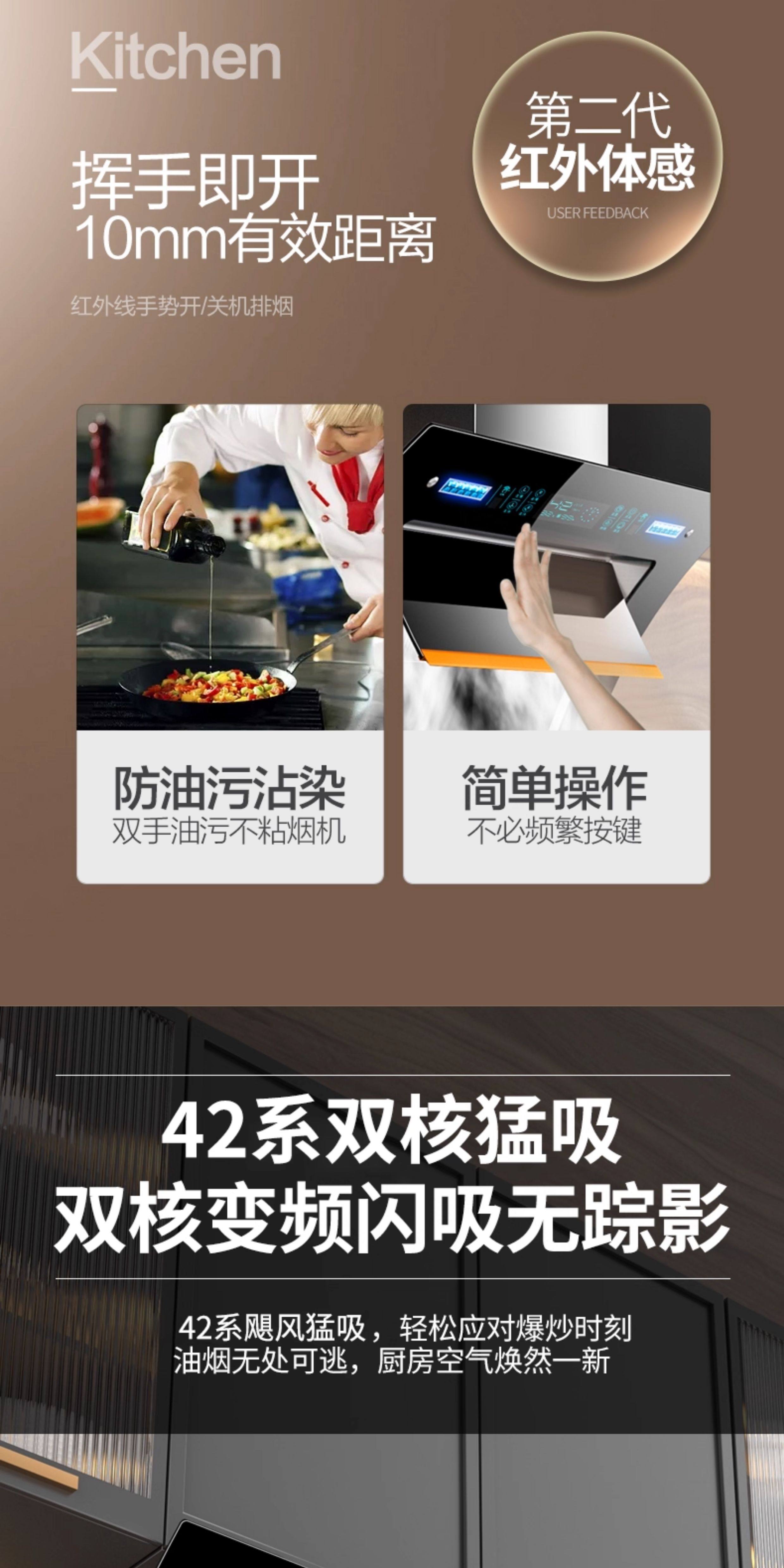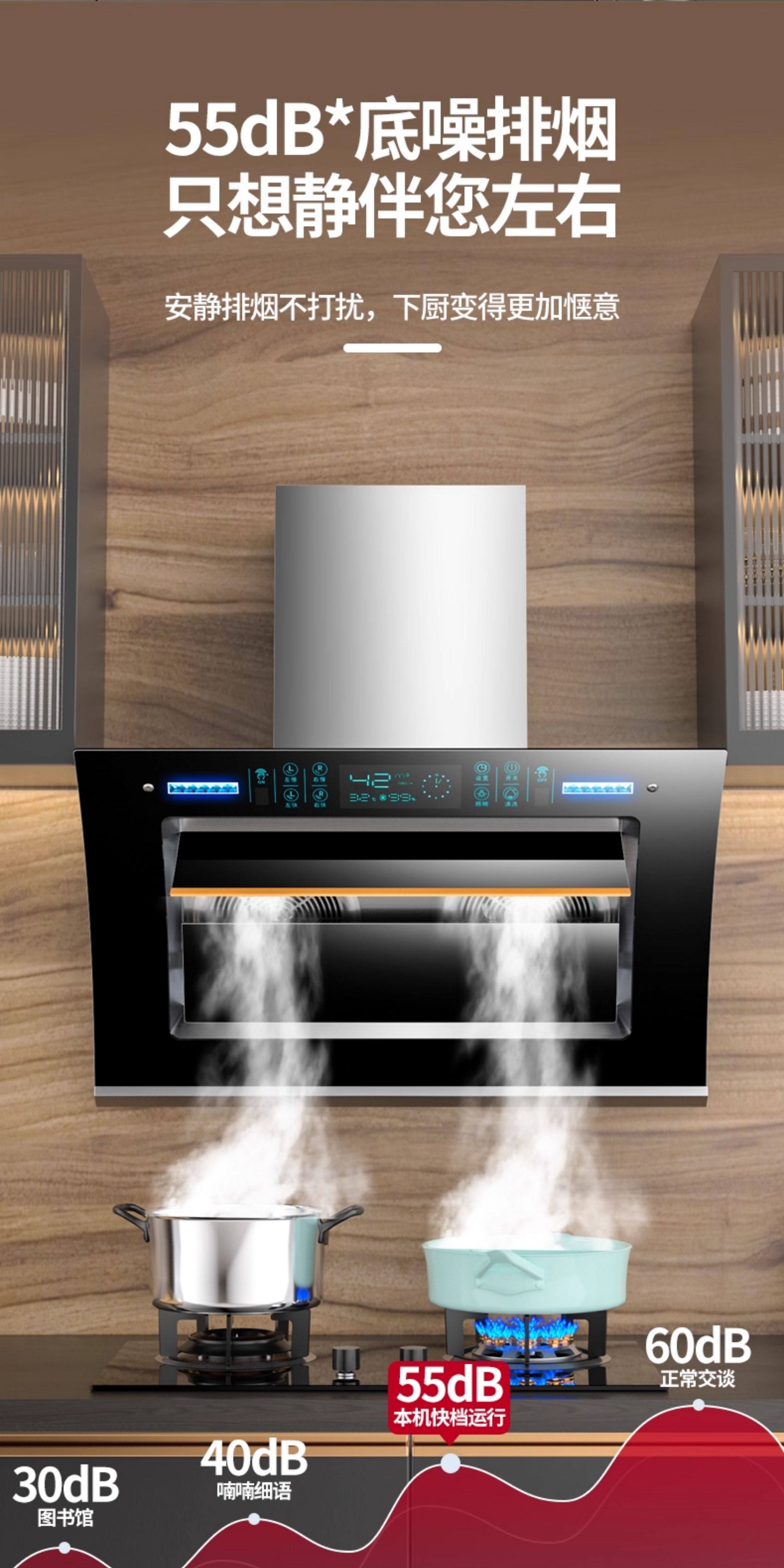 Good Wife High Suction Range Hood for Home Kitchen, Side Suction, No Disassembly or Cleaning Required, Suitable for Dual Motors, Small Range Hood