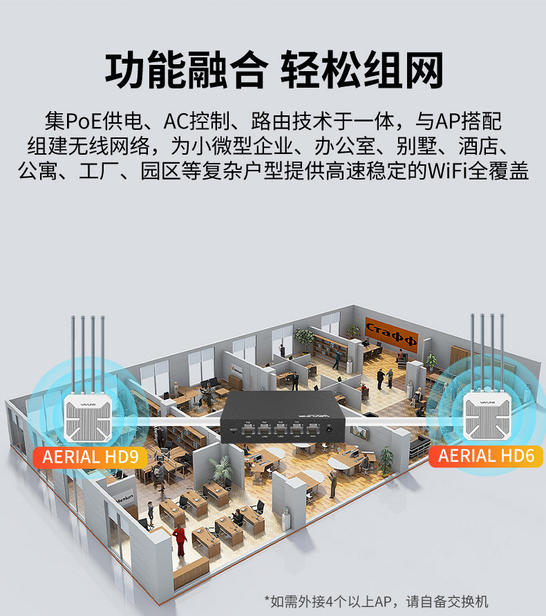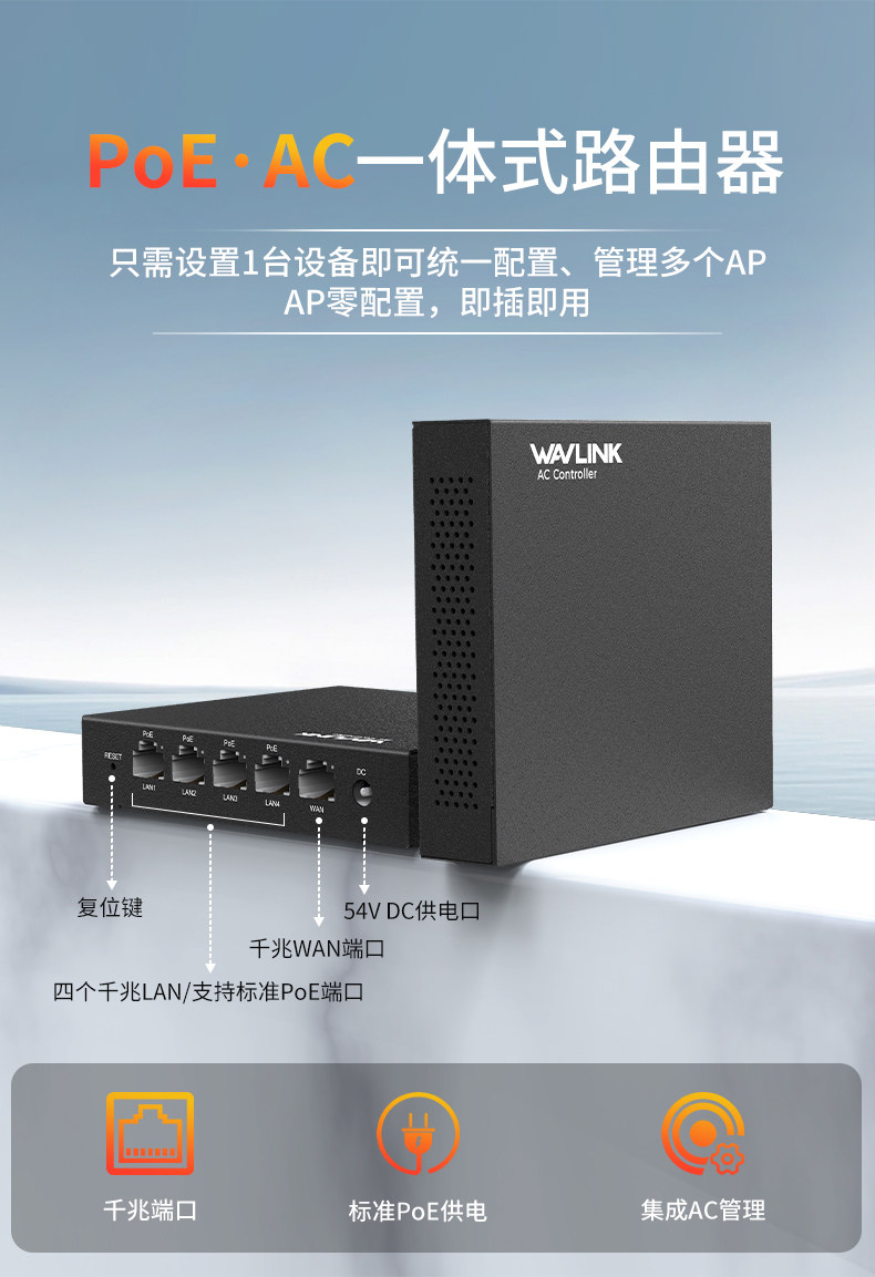 Ruiyin All-In-One Router Ac Control Manager with Full Gigabit Ports, Ap Management, Poe Power Supply Via Network Cable, Convenient Power Supply, Outdoor Routing, Enterprise Large-Scale Unified Networking, Wifi Full Coverage Network