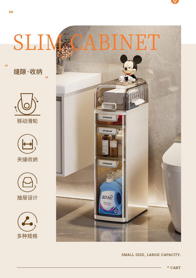 Bathroom Storage Rack Multi-Layer Organizer Bathroom Gap Cabinet Restroom Storage Cabinet Toilet Storage Cabinet Side Cabinet