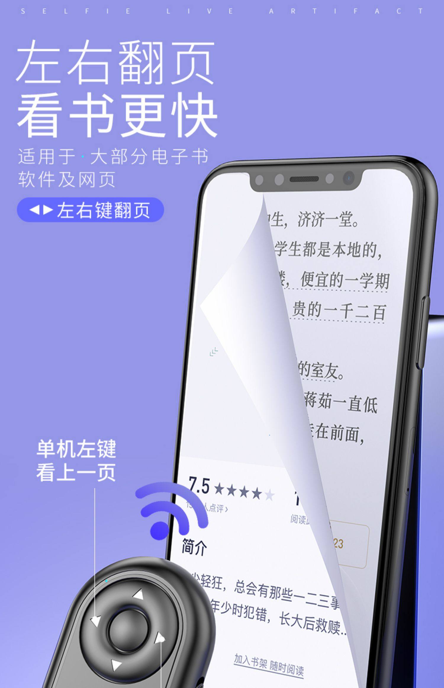 Mobile Phone Bluetooth Remote Control Camera Controller Tiktok Gadget Universal Page-Turner Selfie Stick E-Book Reader Tiktok Novel Reader Selfie Stick Camera Shooting Tiktok Brush Dormitory Lazy Person Universal Tablet