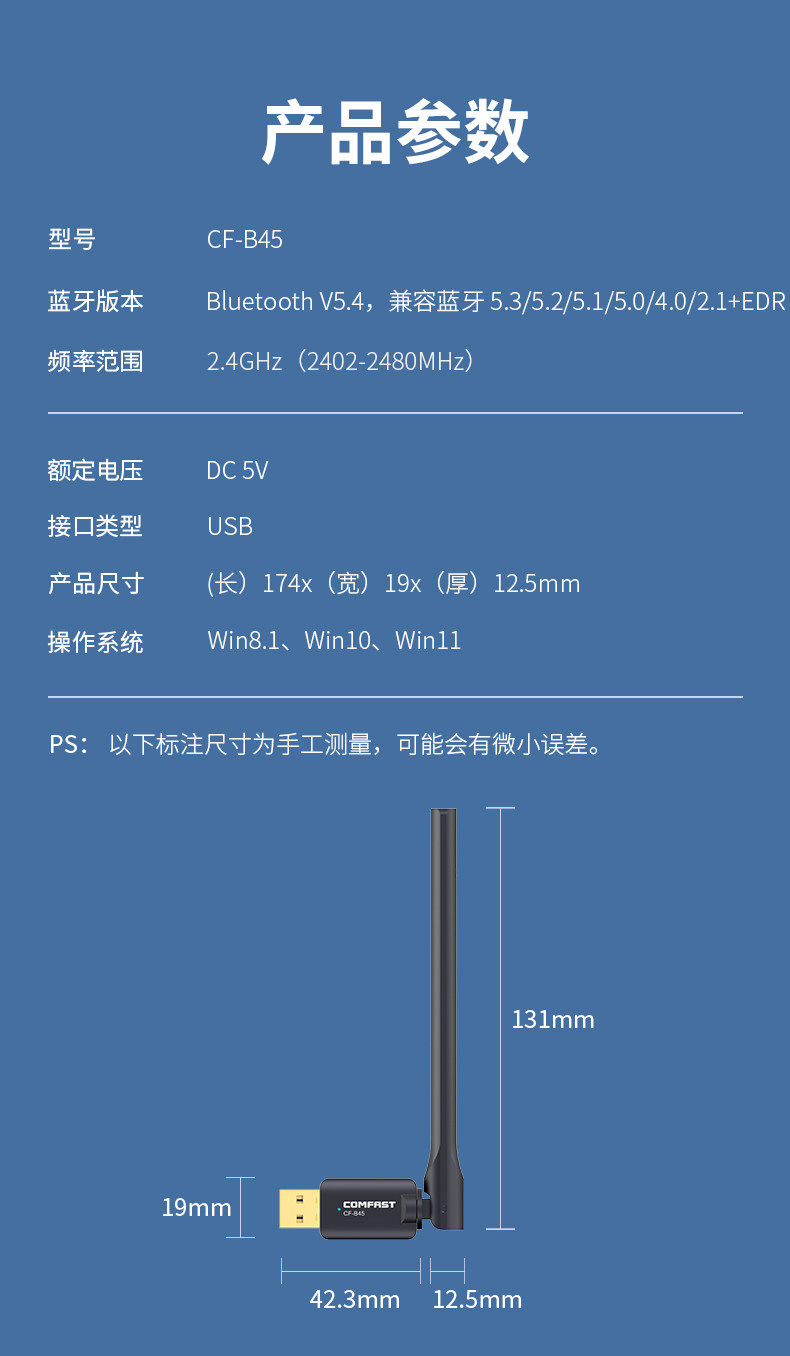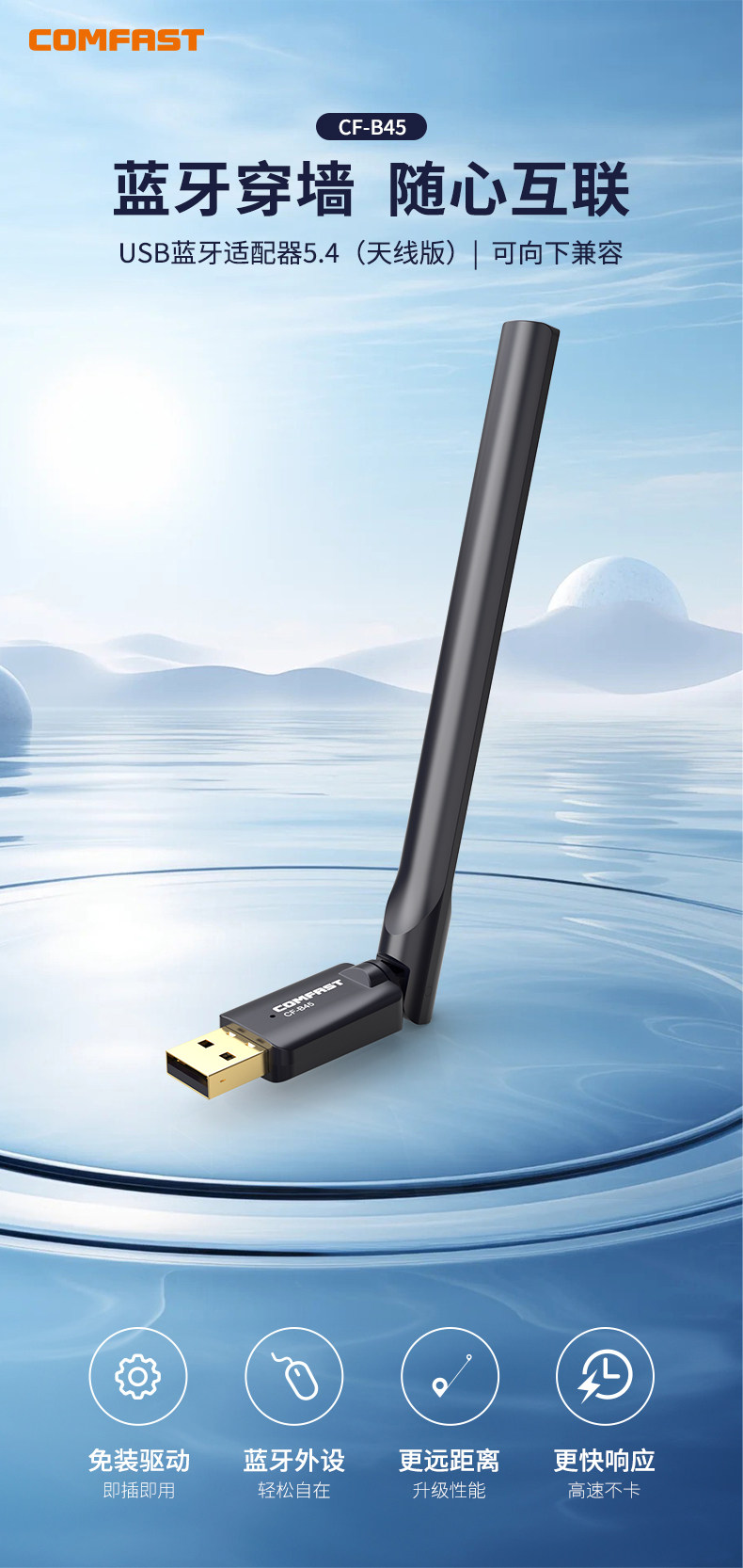 Comfast Bluetooth Adapter 5.4 Desktop Computer USB Bluetooth Module Wireless Device Transmitter Receiver Multi-Device Connection Cf-B45