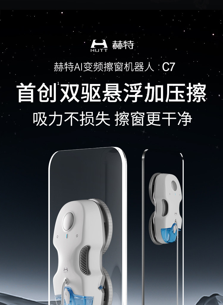 Hutt C7 Intelligent Water Spray Window Cleaning Robot Ai Variable Frequency Water Spray Fully Automatic Household High-Rise Glass Cleaning Tool