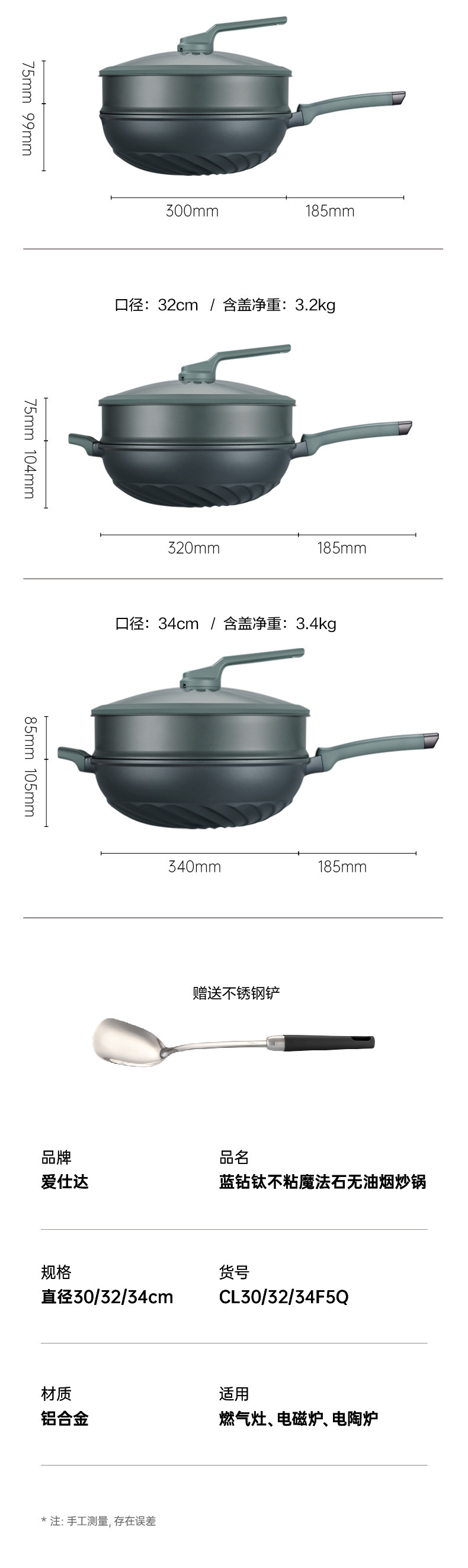 | Color Classification | 30cm Oil-Free Blue Diamond Titanium Non-Stick Wok + Original Steam Grid + Stainless Steel Spatula,32cm Oil-Free Blue Diamond Titanium Non-Stick Wok + Original Steam Grid + Stainless Steel Spatula,34cm Oil-Free Blue Diamond Titanium Non-Stick Wok + Original Steam Grid + Stainless Steel Spatula |
