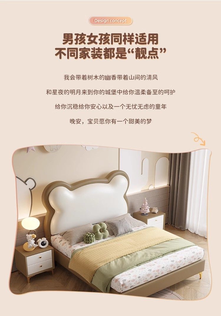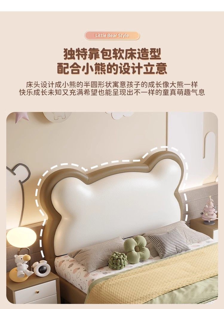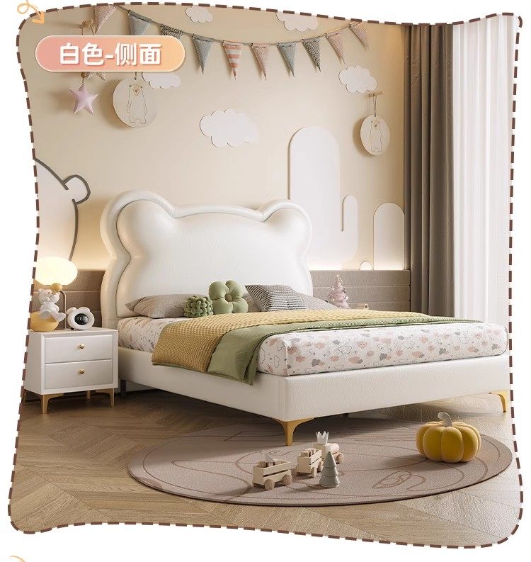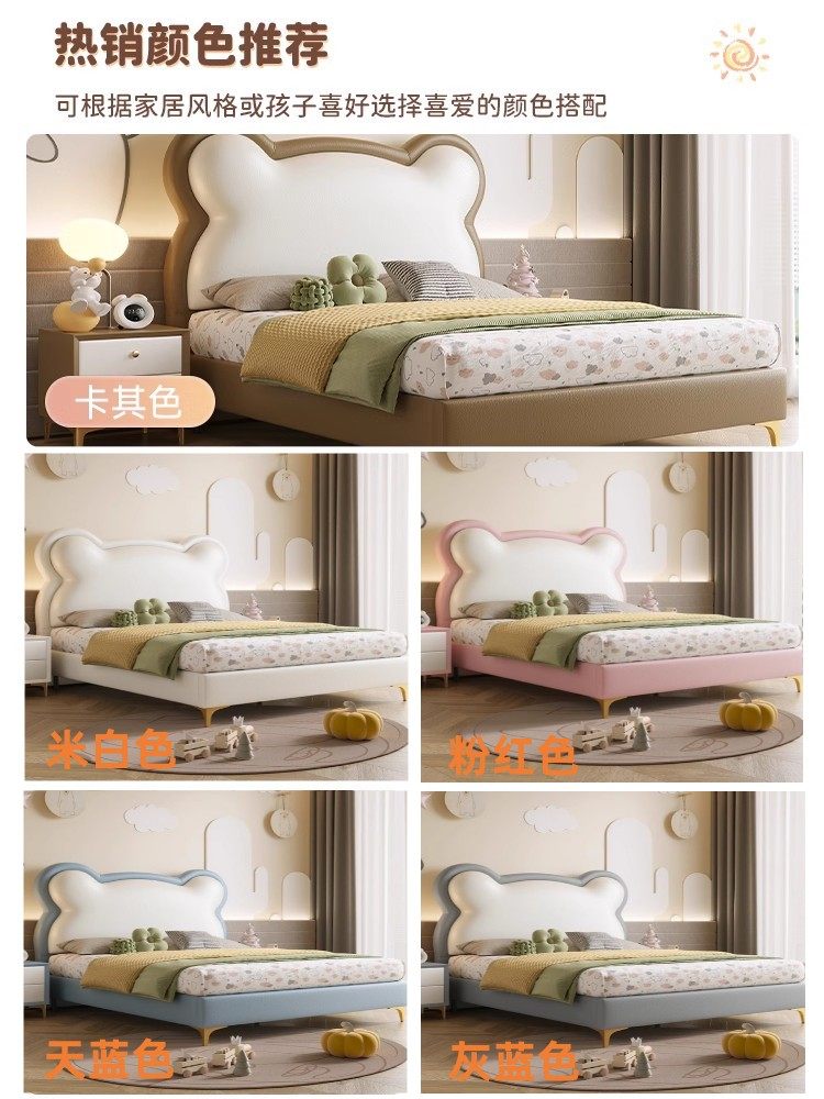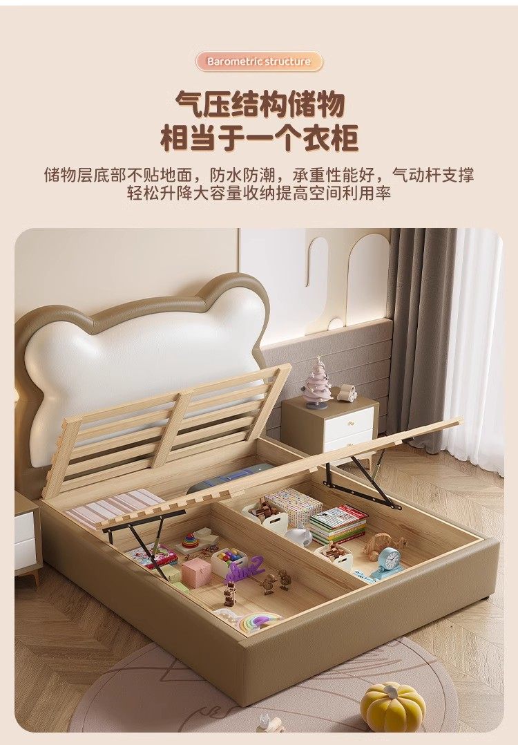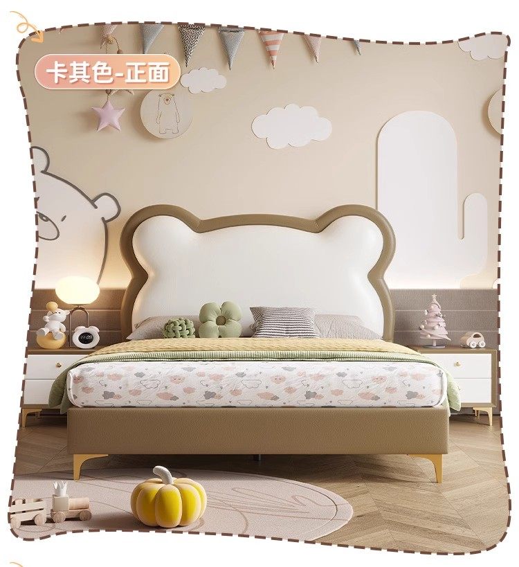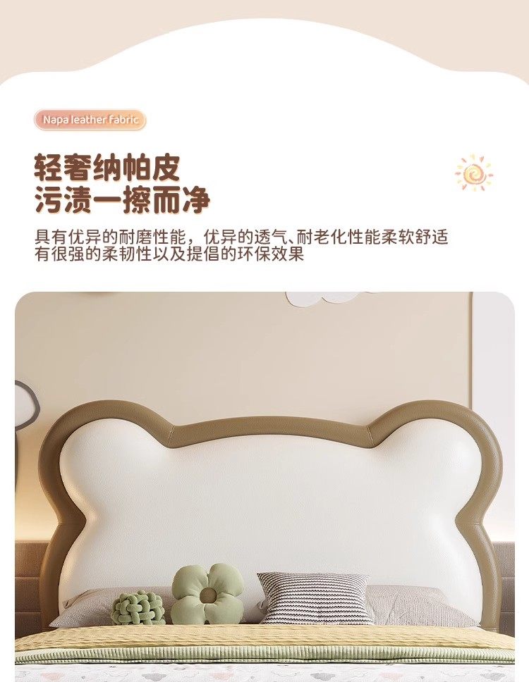 French-Style Cream-Colored 1.5m Cartoon Simple Children's Bed for Boys and Girls, Master and Secondary Bedrooms, Storage Leather Bed, Panda Upholstered Bed
