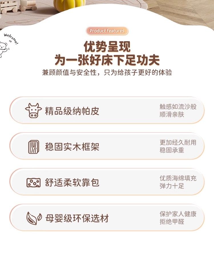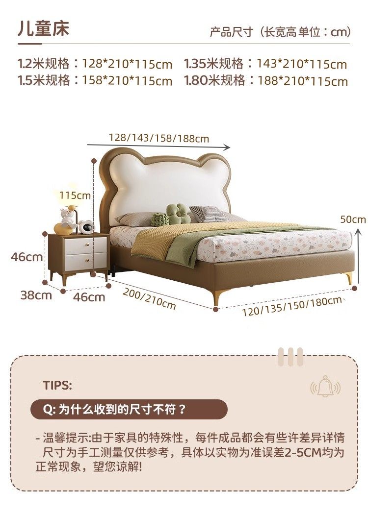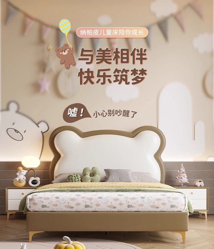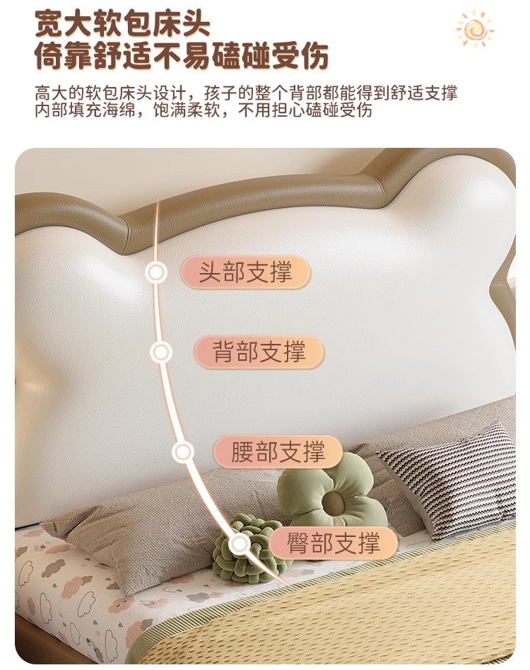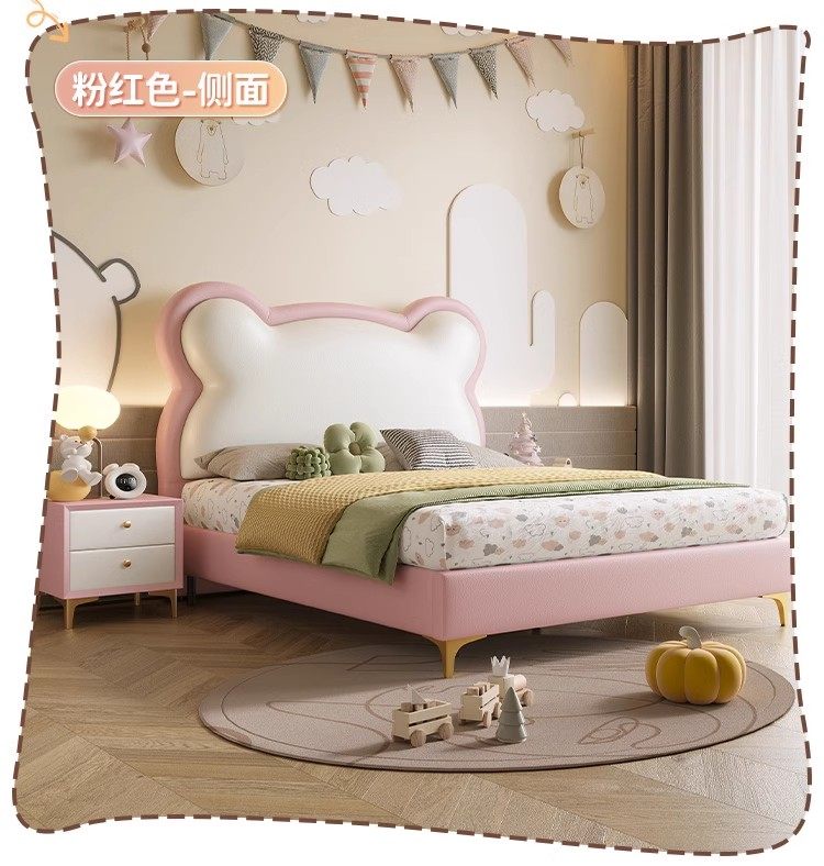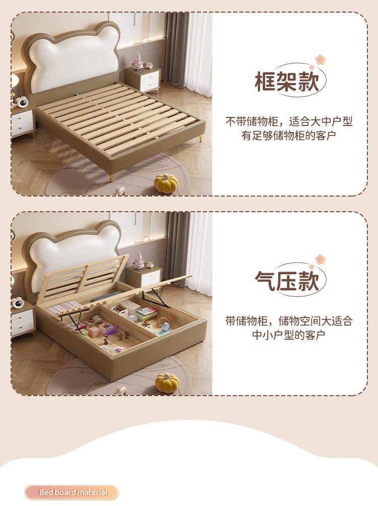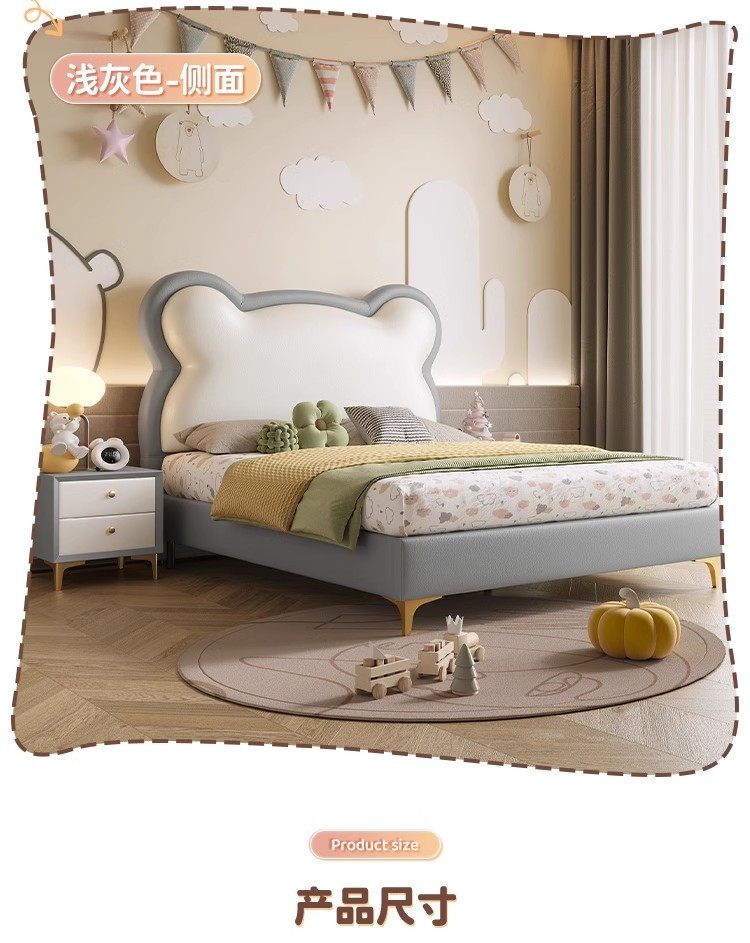 French-Style Cream-Colored 1.5m Cartoon Simple Children's Bed for Boys and Girls, Master and Secondary Bedrooms, Storage Leather Bed, Panda Upholstered Bed