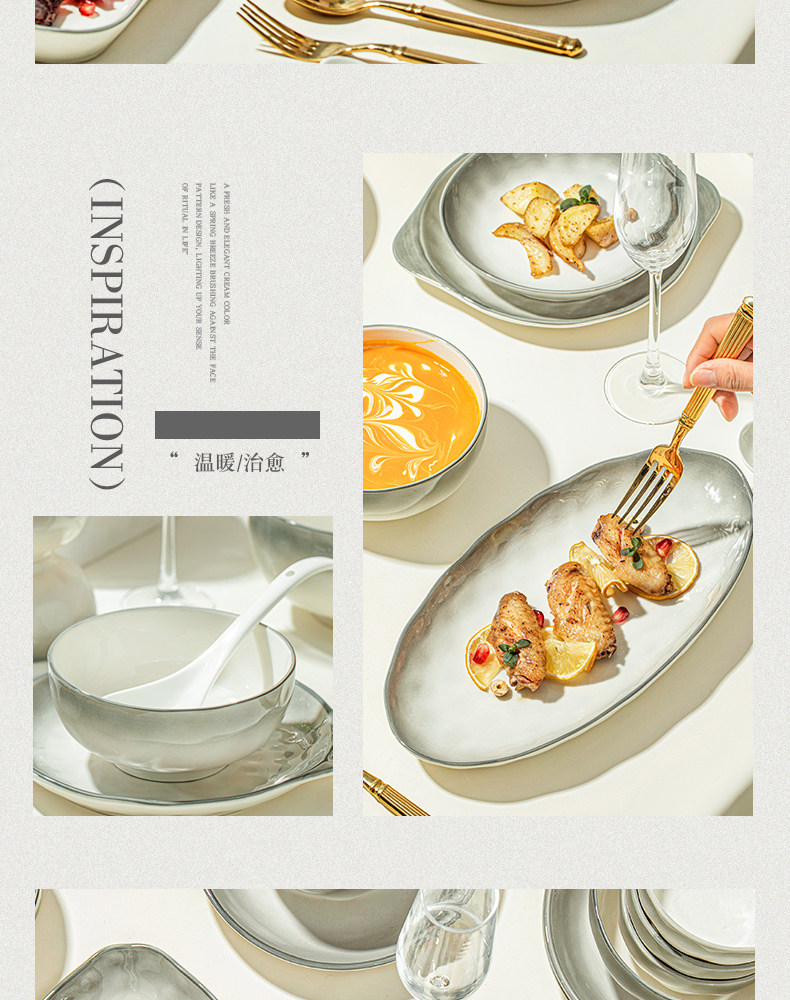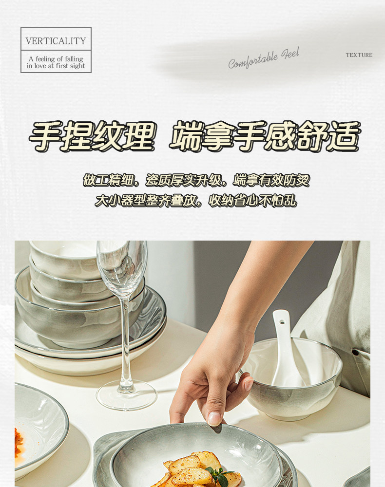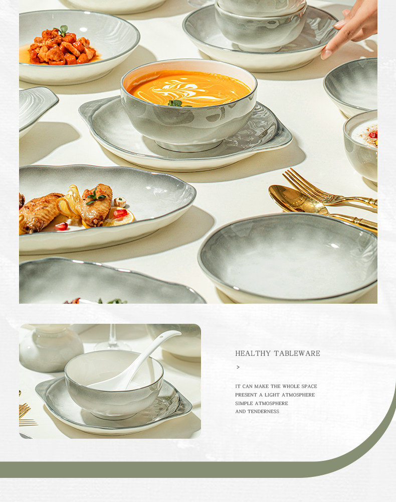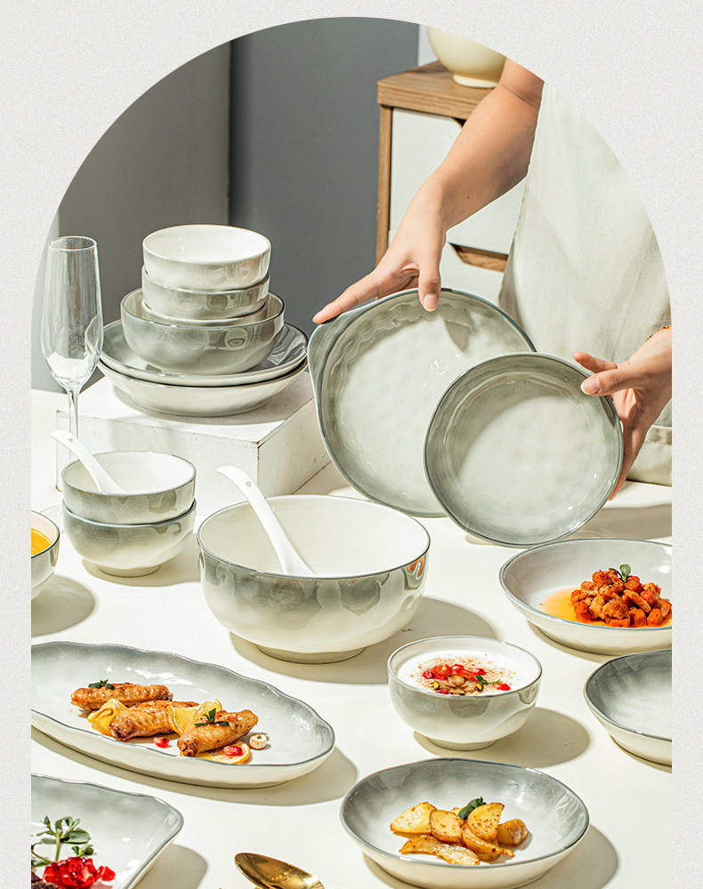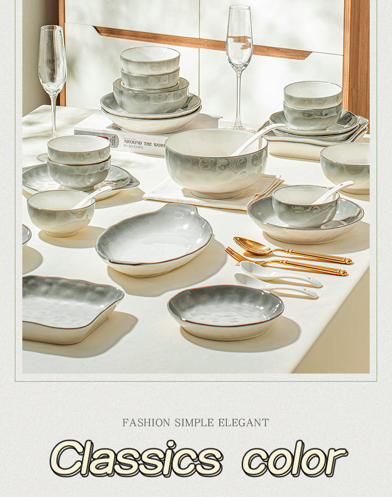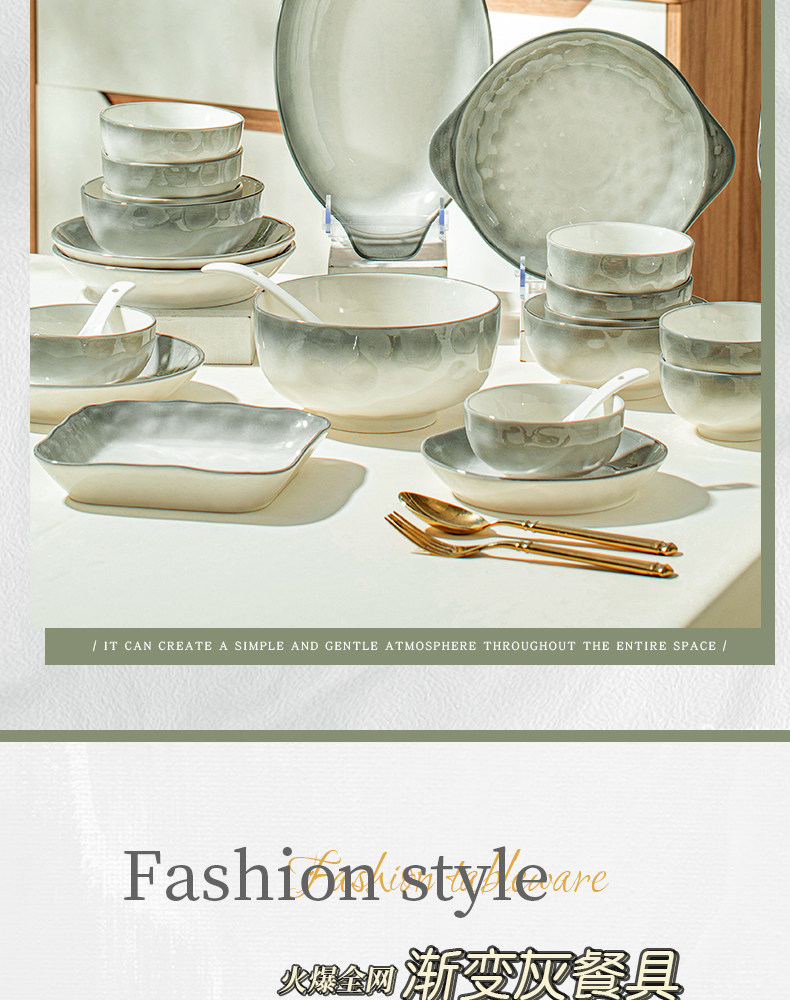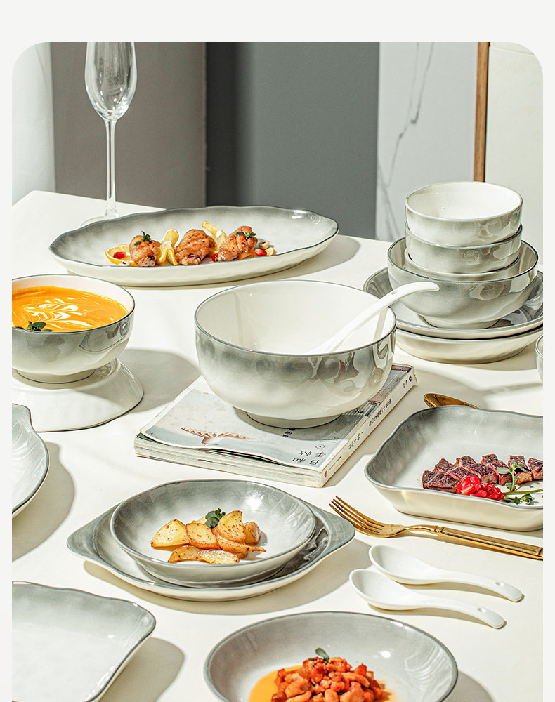 Underglaze Color Bowl and Plate Set for Home Use 2026 High-Value Gradient Minimalist Tableware Set Simple Ceramic Bowls and Plates Housewarming