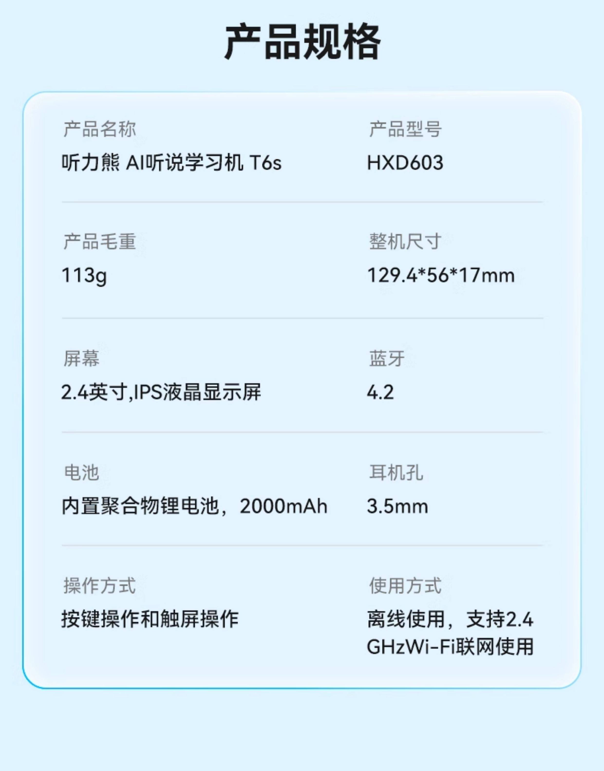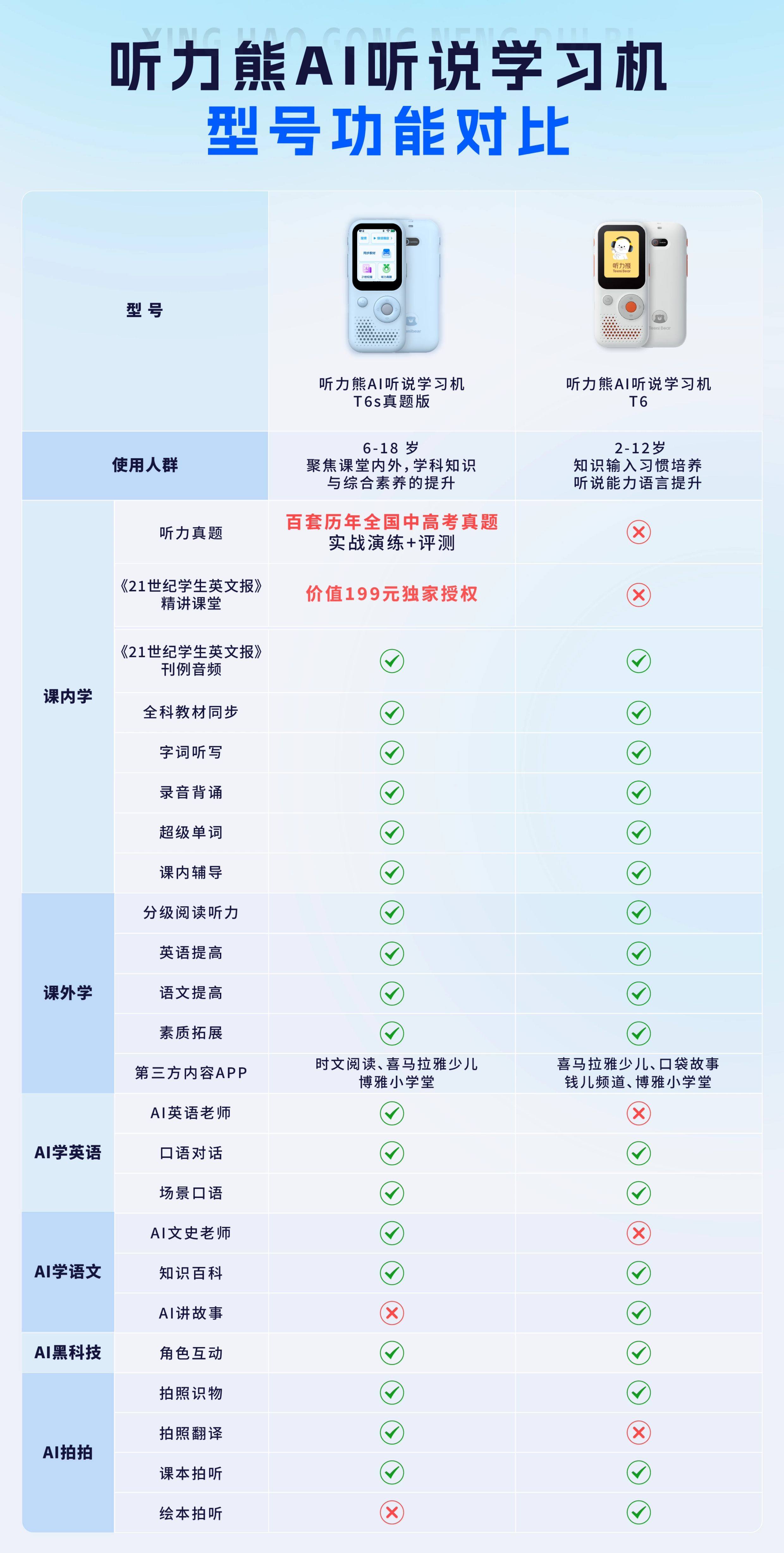 Hearing Bear T6S Listening and Speaking Learning Machine, English Listening Machine, Ai Intelligent Student-Specific Listening Learning Machine, Portable Listening and Repeating Device, Ear-Training Listening Treasure, Synchronized with the New Curriculum Standards for High School and College Entrance Exams