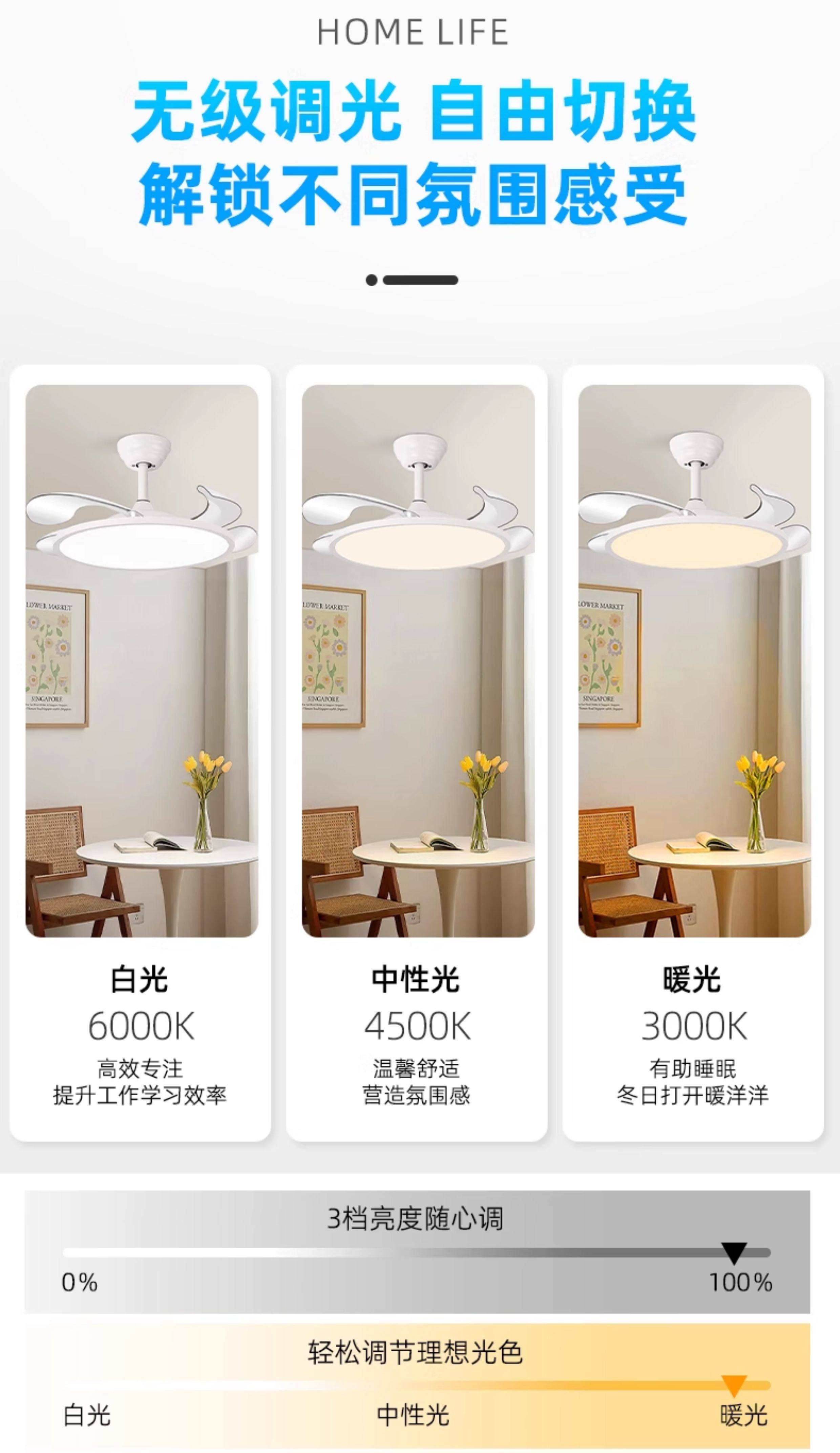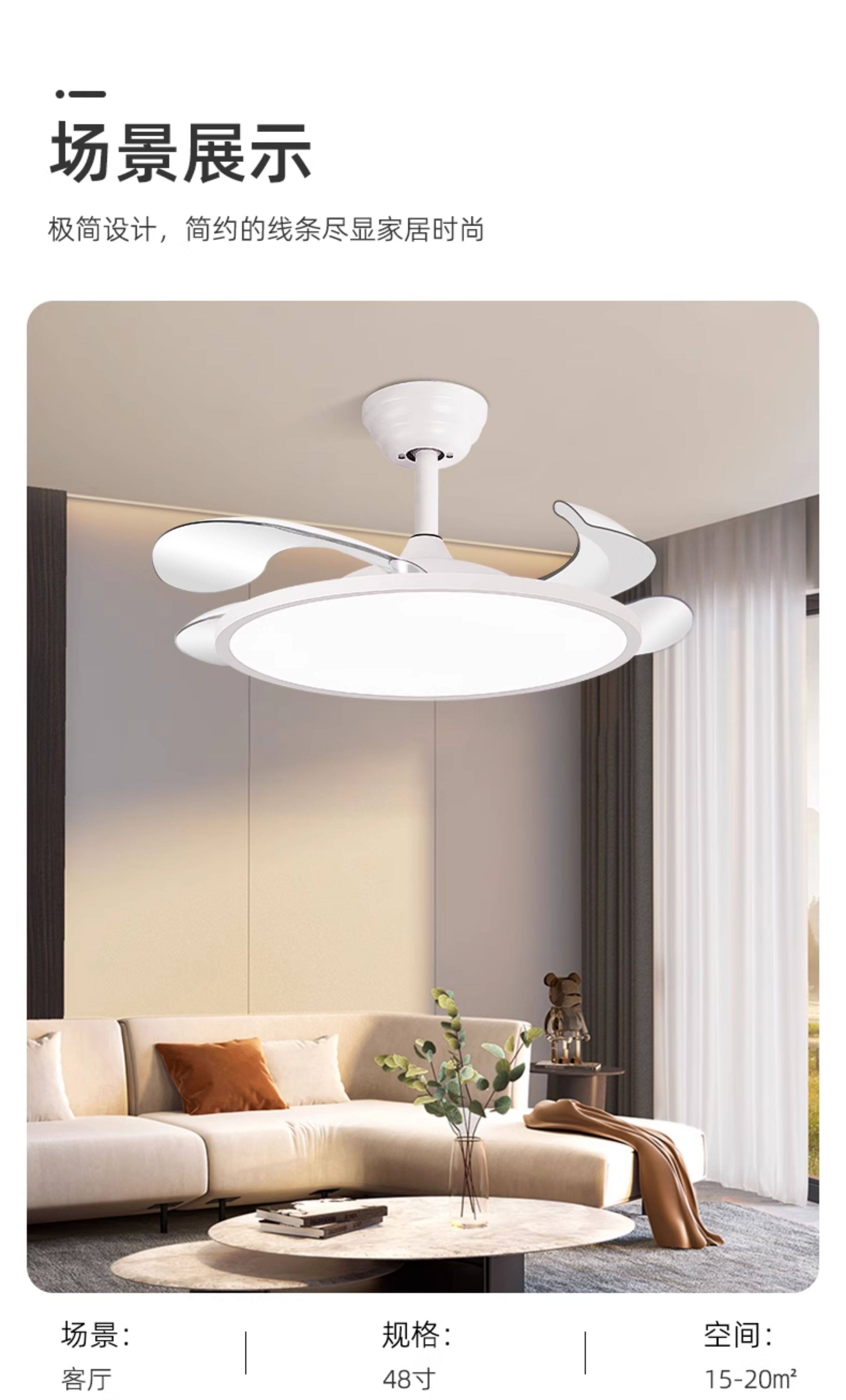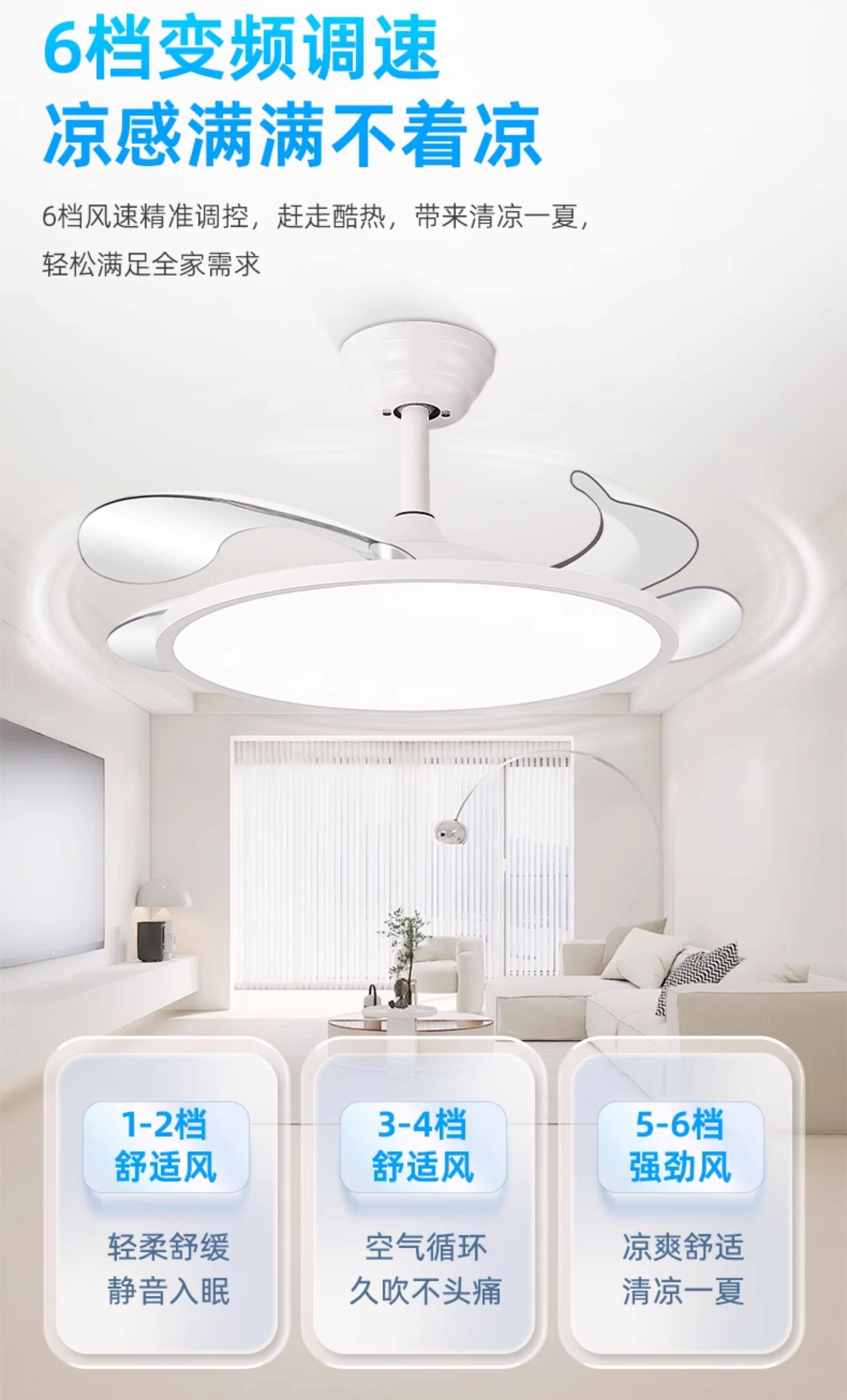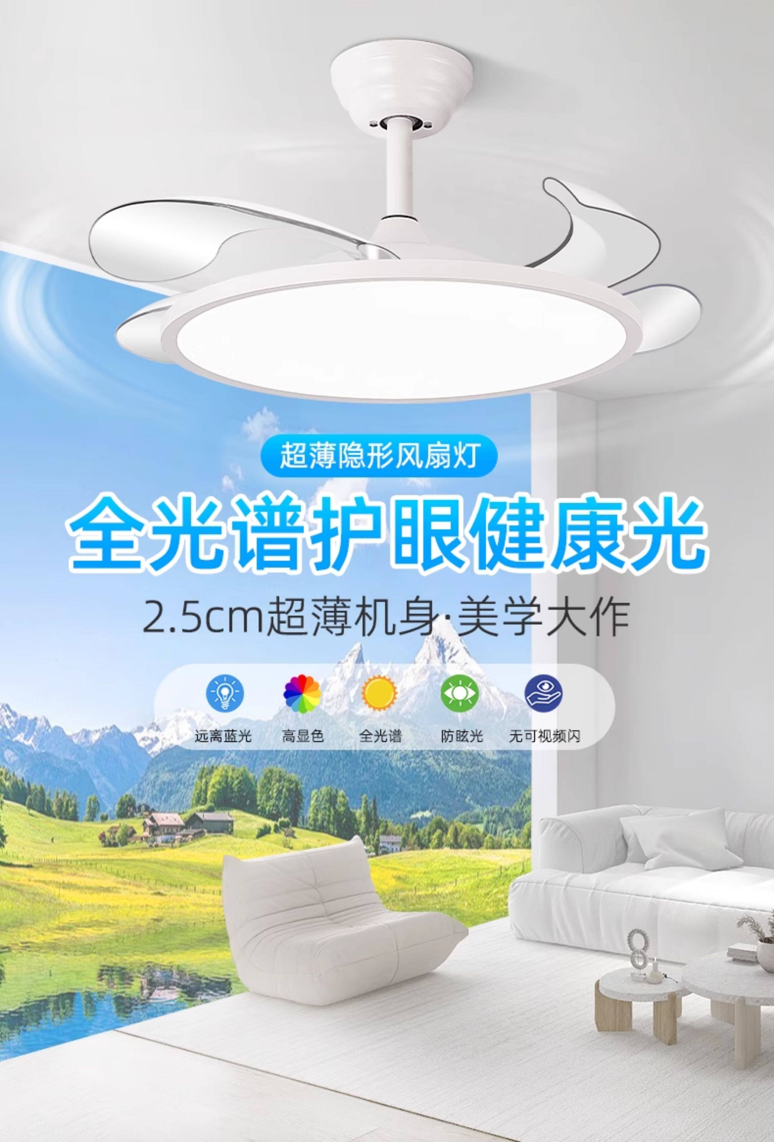 Chigo Ultra-Thin Fan Light, Eye-Protecting, for Living Room, Dining Room, Master Bedroom, 2026 New Model, Simple Invisible Ceiling Fan Integrated Light