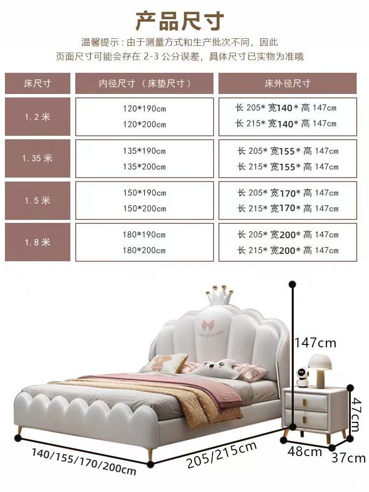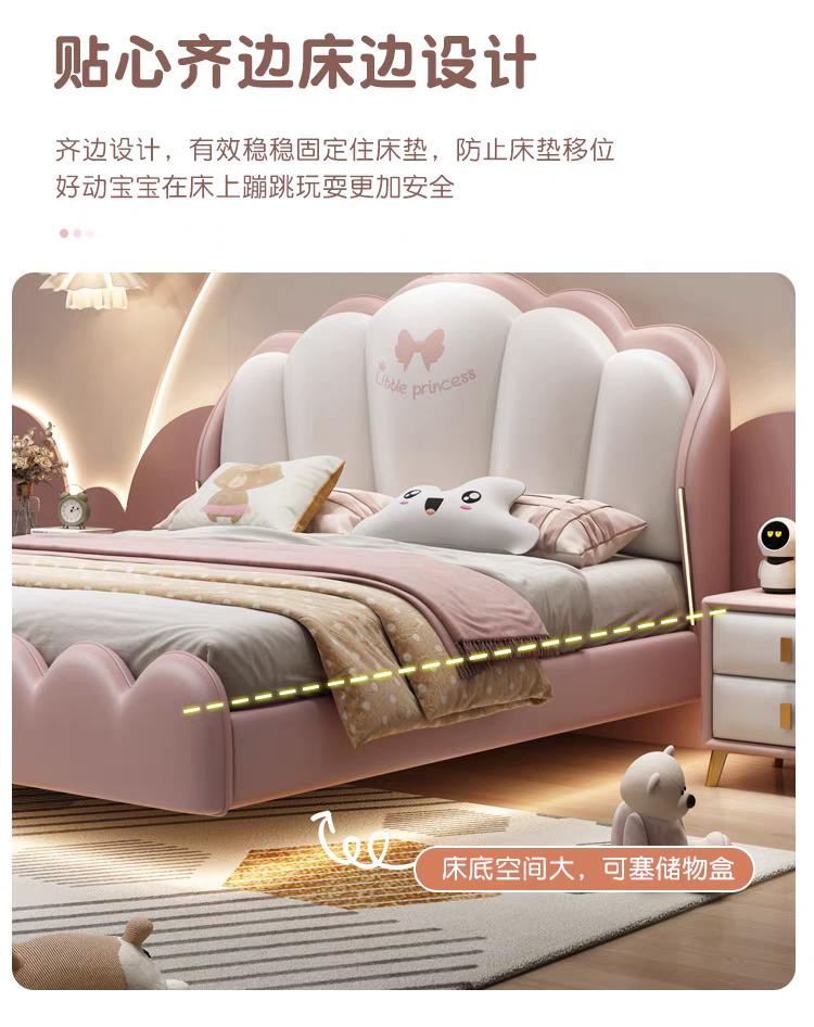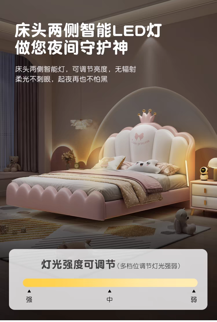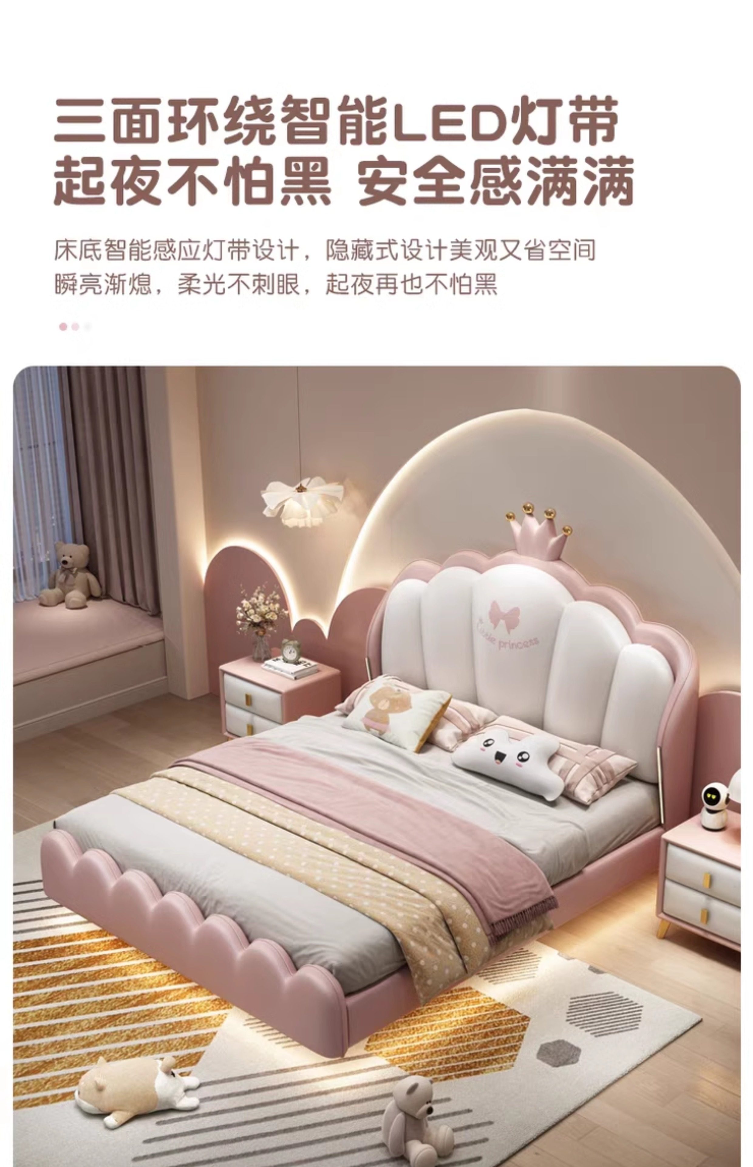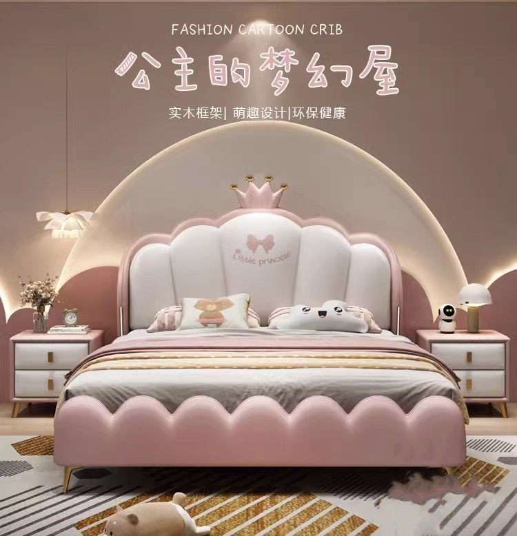 Children's Bed Girl Princess Crib Generation Simple Boy's Bed 1.5m Kidsren's Room Kids Storage Bed Bedroom Leather Bed