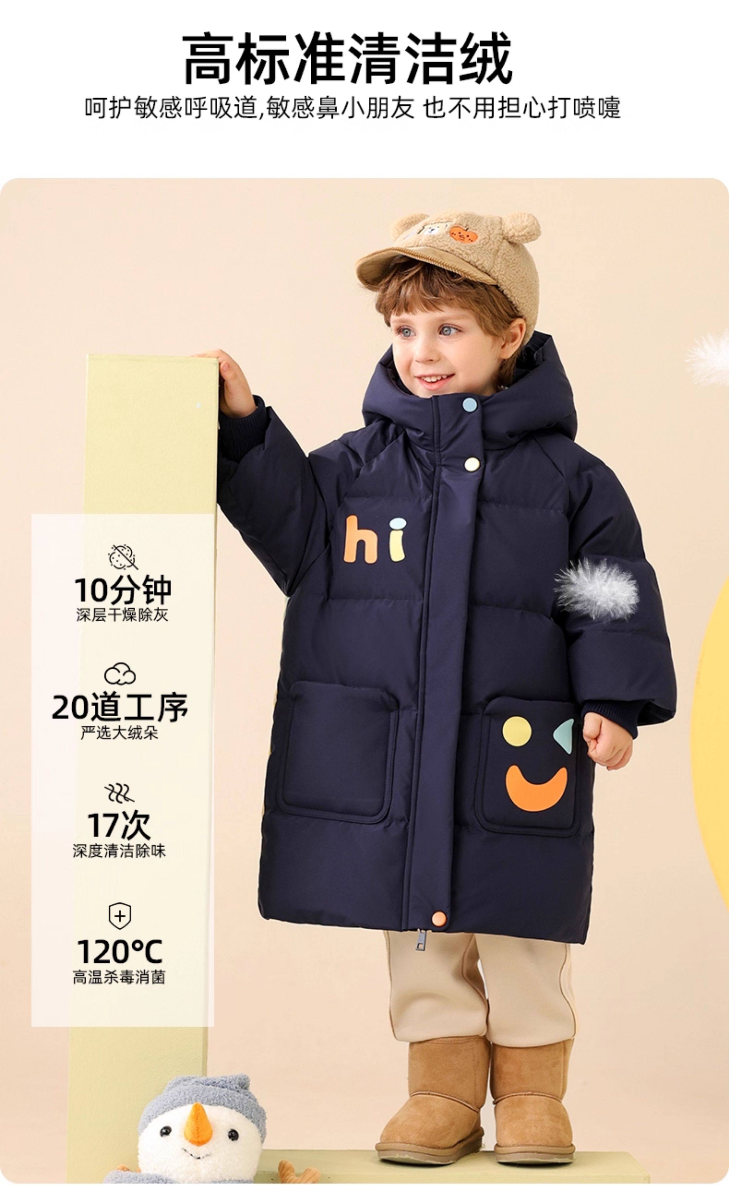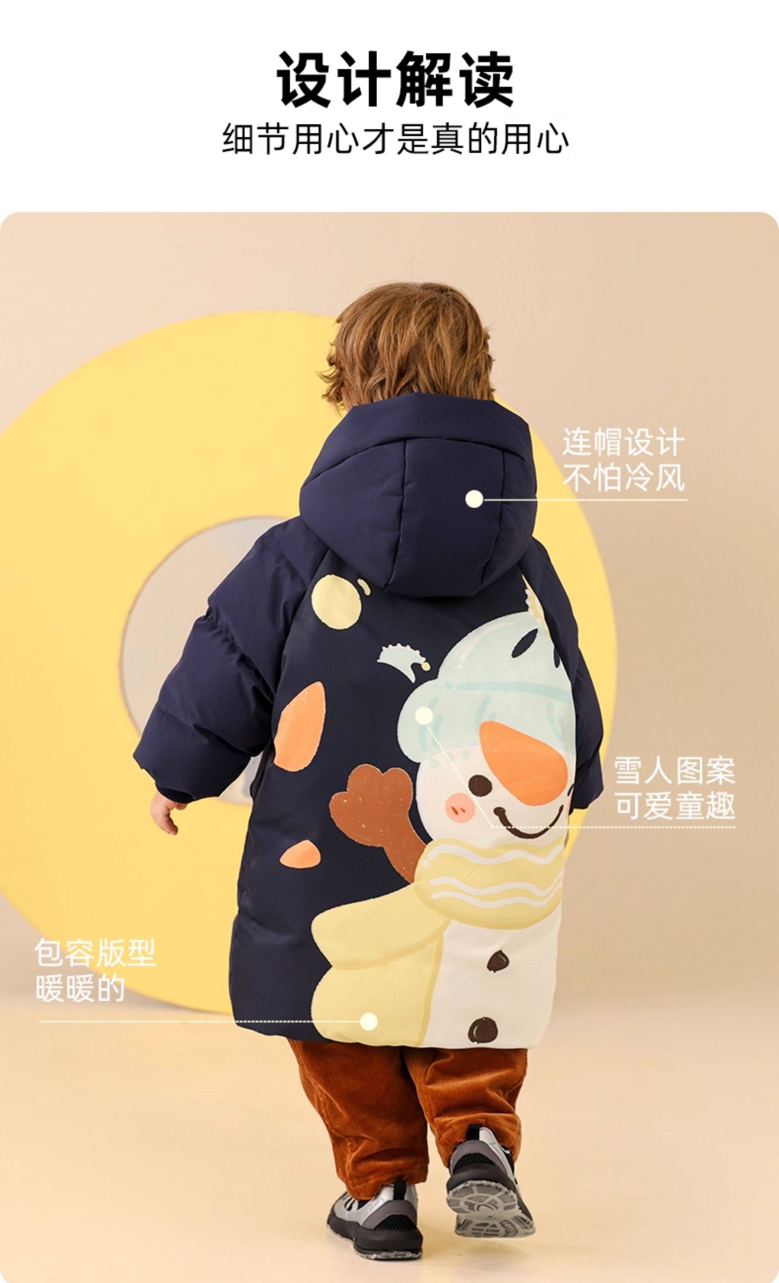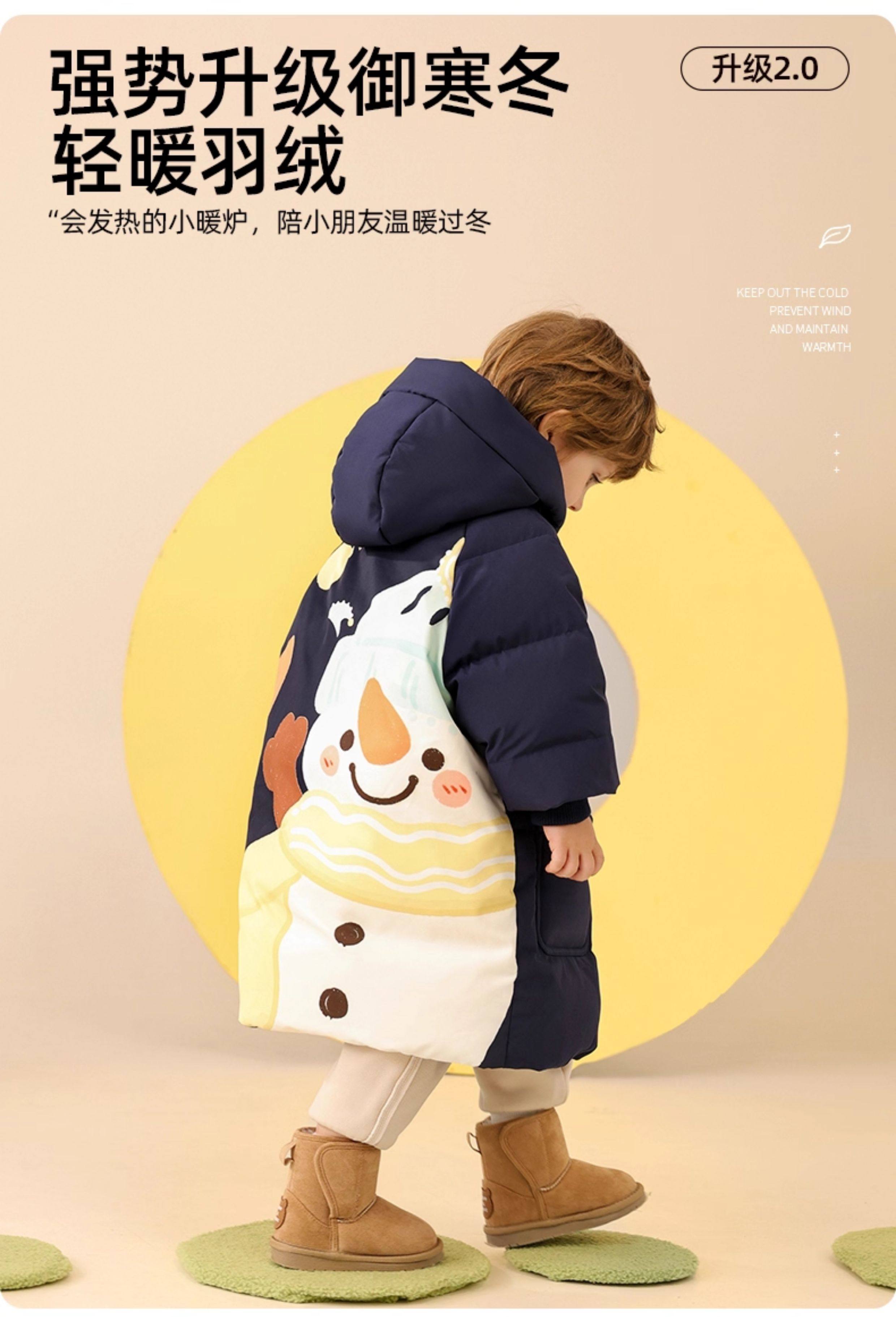 Ducky Children's down Jacket for Boys, Winter 2025 New Model, Mid-Length, Extra Thick for Extreme Cold, Toddler Clothing, Baby Coat