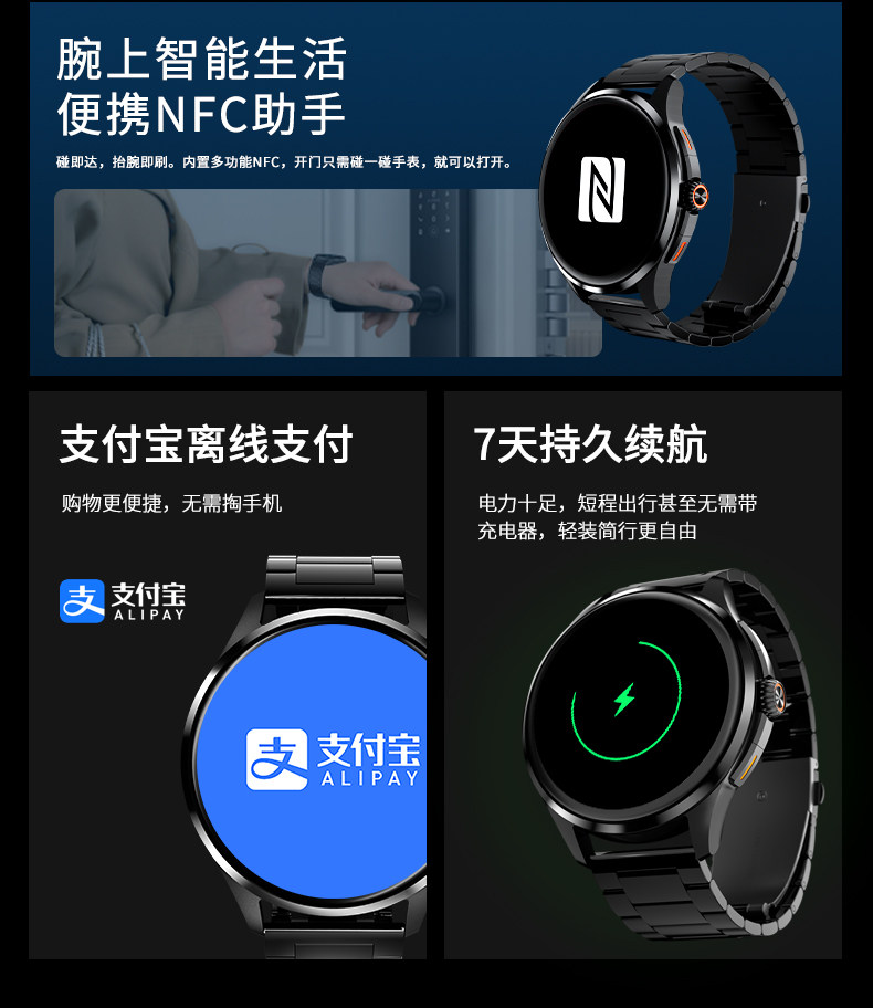 | Appearance Color | Black Tape[Long Standby + Offline Payment + Payment Collection + Nfc Access Control + Music Playback + Message Reminder],Black Belt[Long Standby + Offline Payment + Payment Collection + Nfc Access Control + Music Playback + Message Reminder],Black Milanese Steel Belt[Long Standby + Offline Payment + Payment Collection + Nfc Access Control + Music Playback + Message Reminder],Black Three-Baht Steel Belt[Long Standby + Offline Payment + Payment Collection + Nfc Access Control + Music Playback + Message Reminder],Black Bamboo Steel Band[Long Standby + Offline Payment + Payment Collection + Nfc Access Control + Music Playback + Message Reminder],Silver Brown Leather[Long Standby + Offline Payment + Payment Collection + Nfc Access Control + Music Playback + Message Reminder],Silver Milanese Steel Belt[Long Standby + Offline Payment + Payment Collection + Nfc Access Control + Music Playback + Message Reminder],Silver Three-Baht Steel Belt[Long Standby + Offline Payment + Payment Collection + Nfc Access Control + Music Playback + Message Reminder],Silver Bamboo Steel Band[Long Standby + Offline Payment + Payment Collection + Nfc Access Control + Music Playback + Message Reminder] |