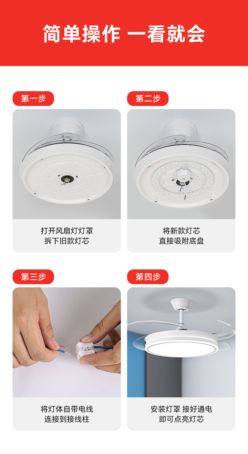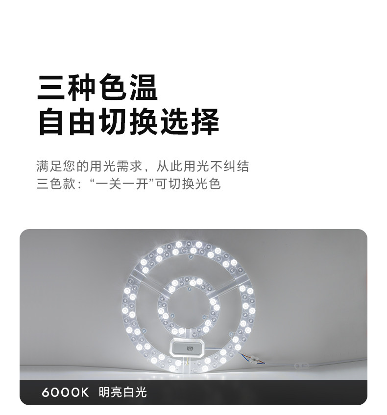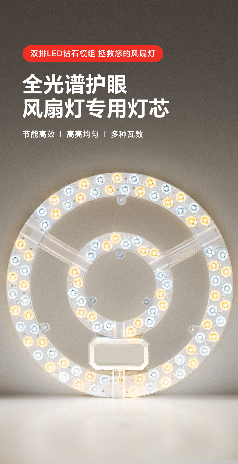 Fan Light Led Lamp Core for Dining Room and Living Room Ceiling Fan, Replacement Light Source, Magnetic Universal Three-Color Dimming Lamp Panel