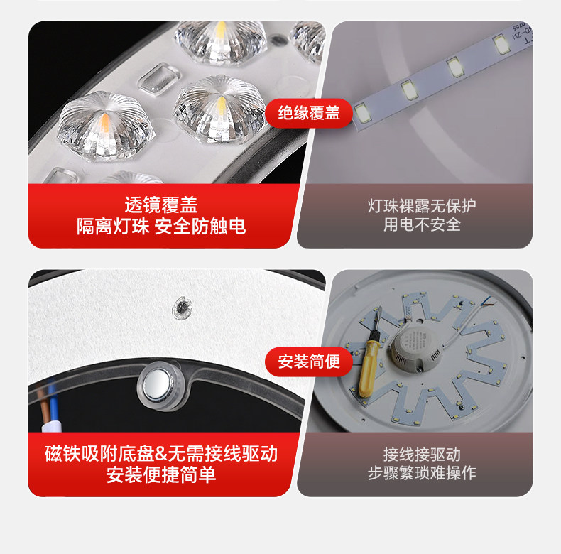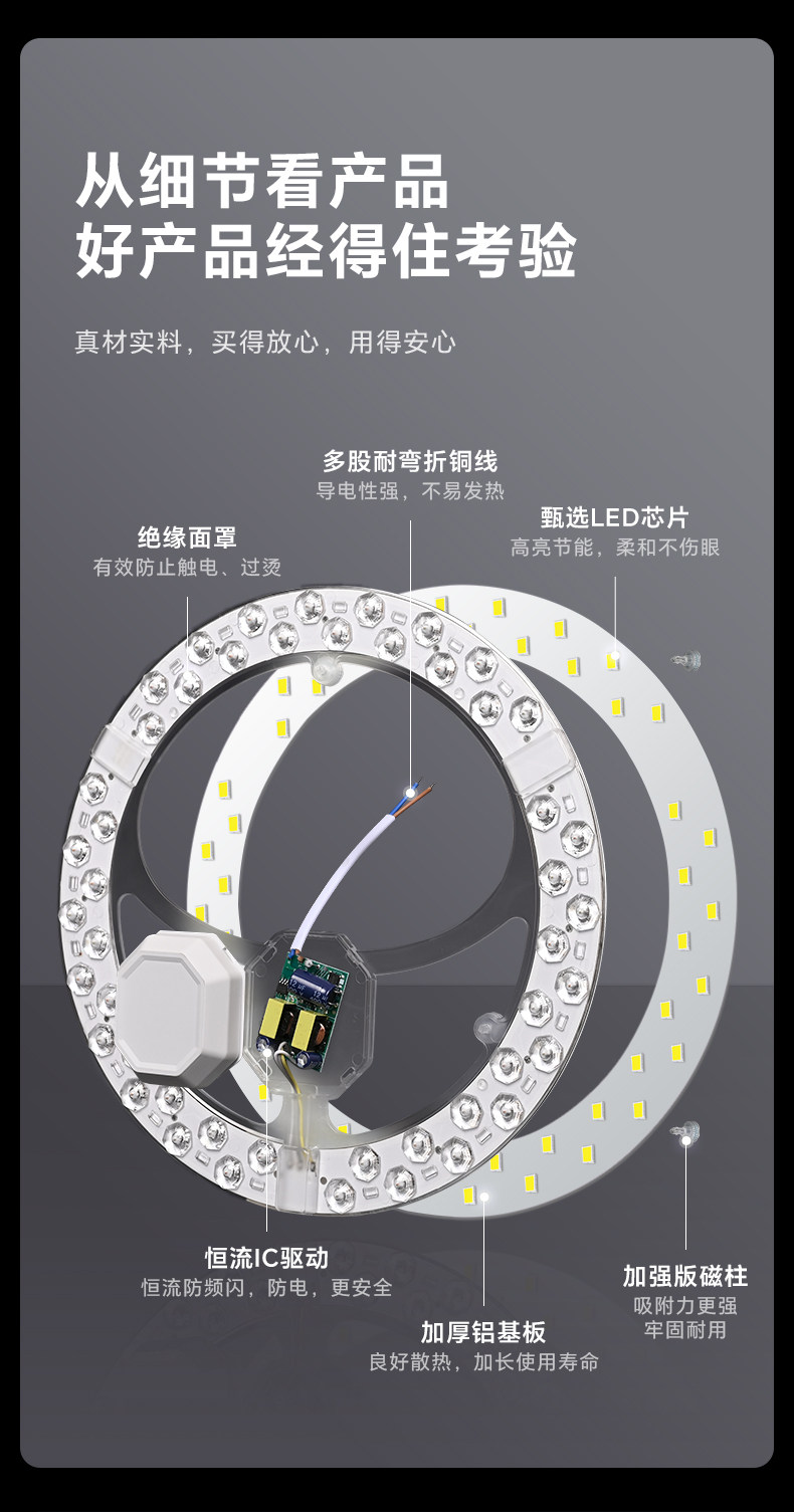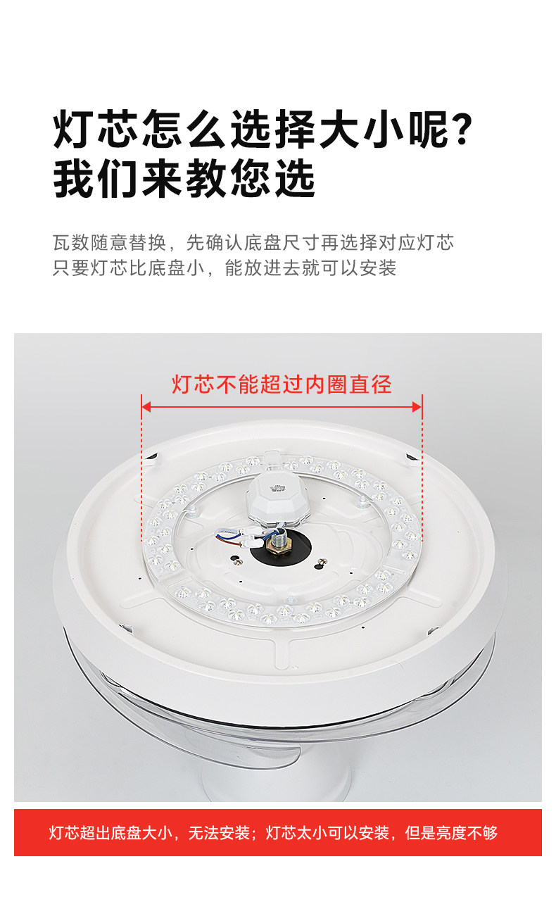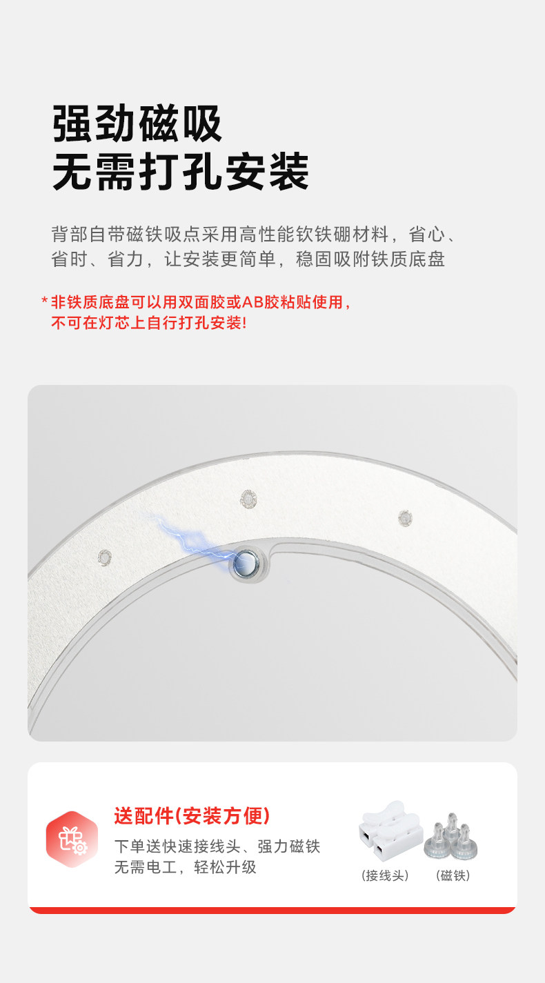 Fan Light Led Lamp Core for Dining Room and Living Room Ceiling Fan, Replacement Light Source, Magnetic Universal Three-Color Dimming Lamp Panel