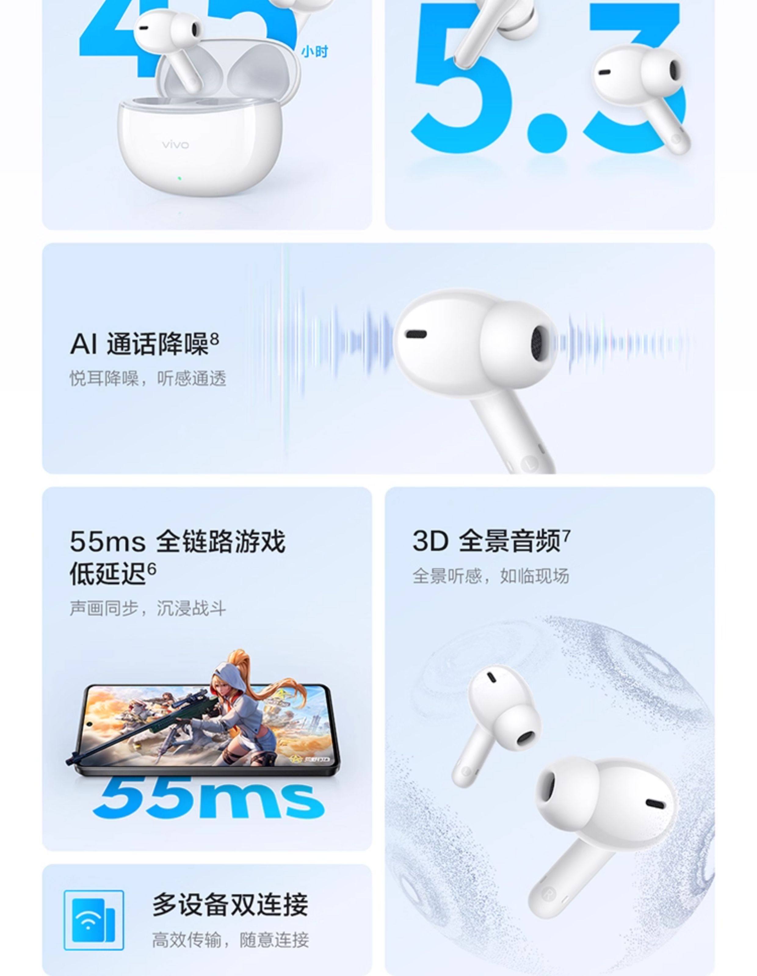 Vivo Tws 3I Wireless Bluetooth Earphones Iqootw3 Tws3Pro Tws2 Tws4 Twsair3