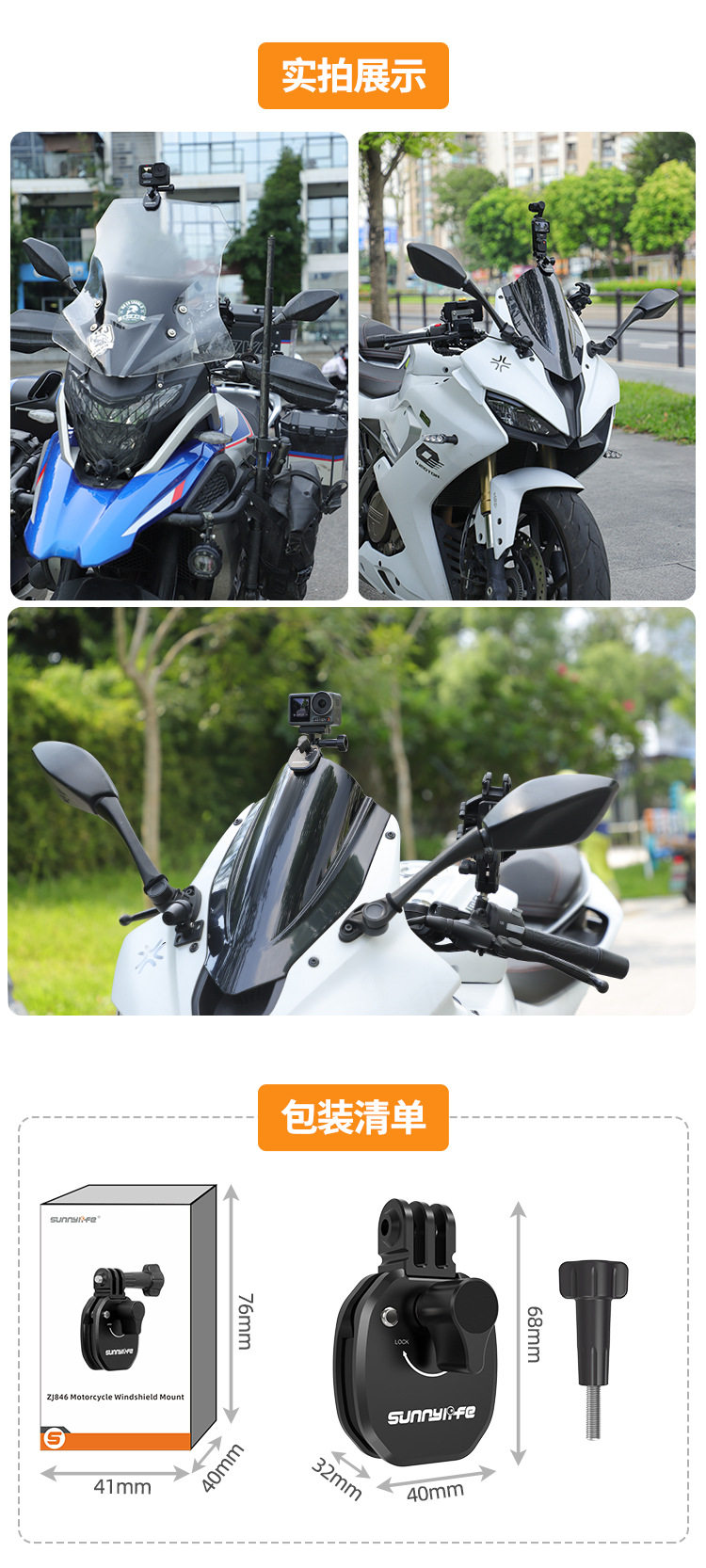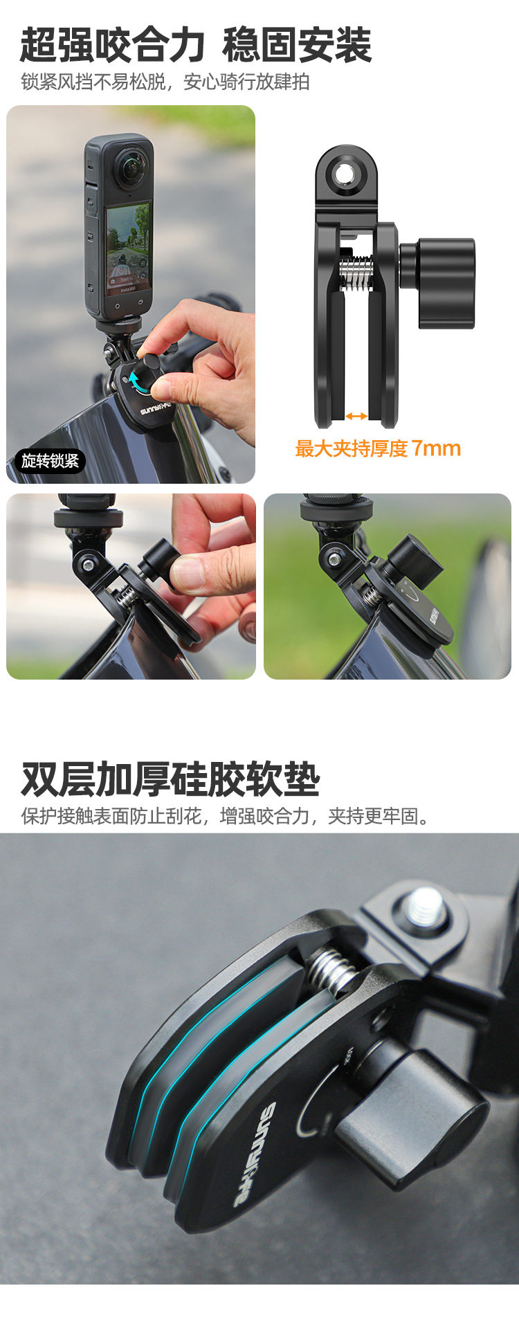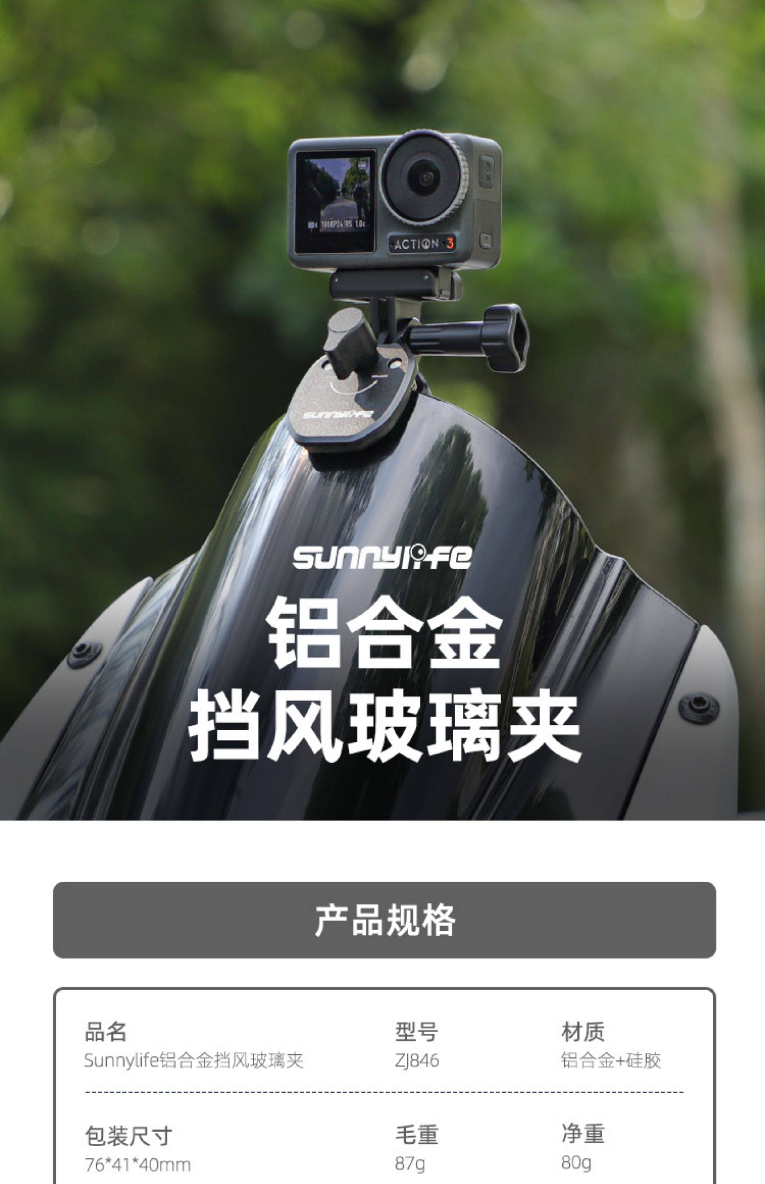 Sunnylife Windshield Clip Insta360X5/X4/X3/Ac Pro2/Go3S Motorcycle Windshield Clip