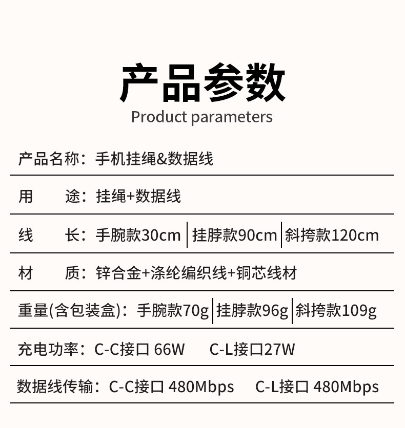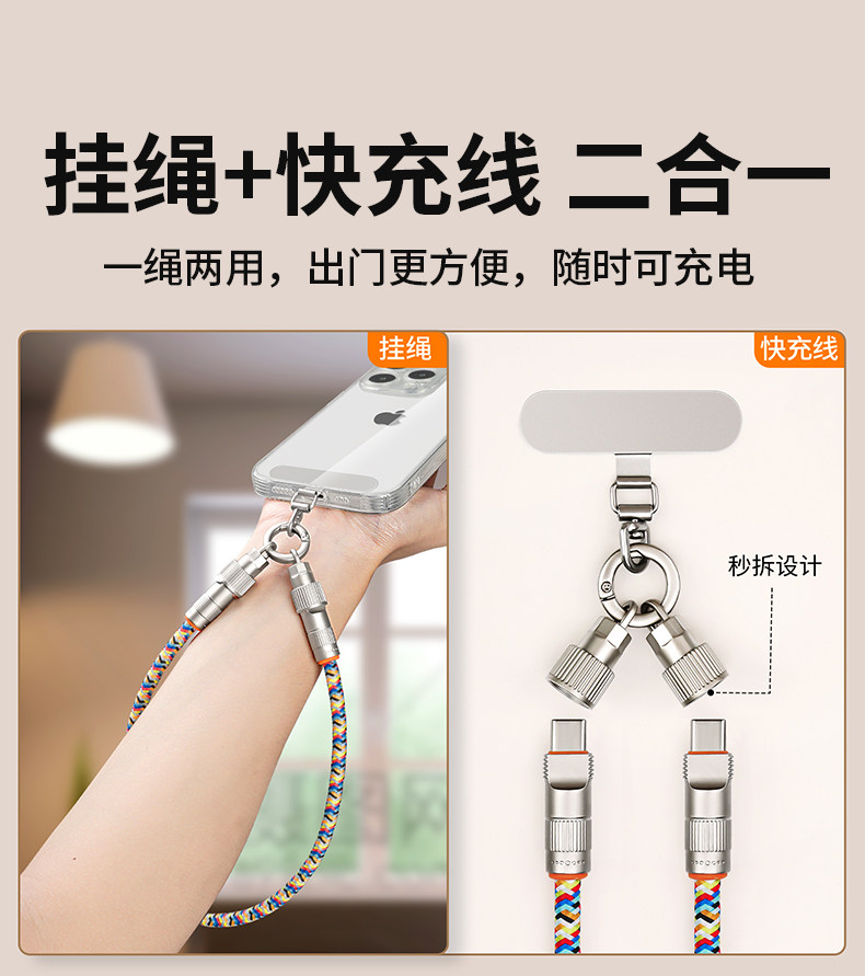 | Item Number | Mobile Phone Lanyard, Cross-Body, Back-Hanging Neck Charging Cable, Data Cable, Suitable for iPhone 15 Pro Max Apple Huawei Dual-Typec Fast Charging Pd Wrist Short Hanging Chain Female High-End Anti-Lost Clip |