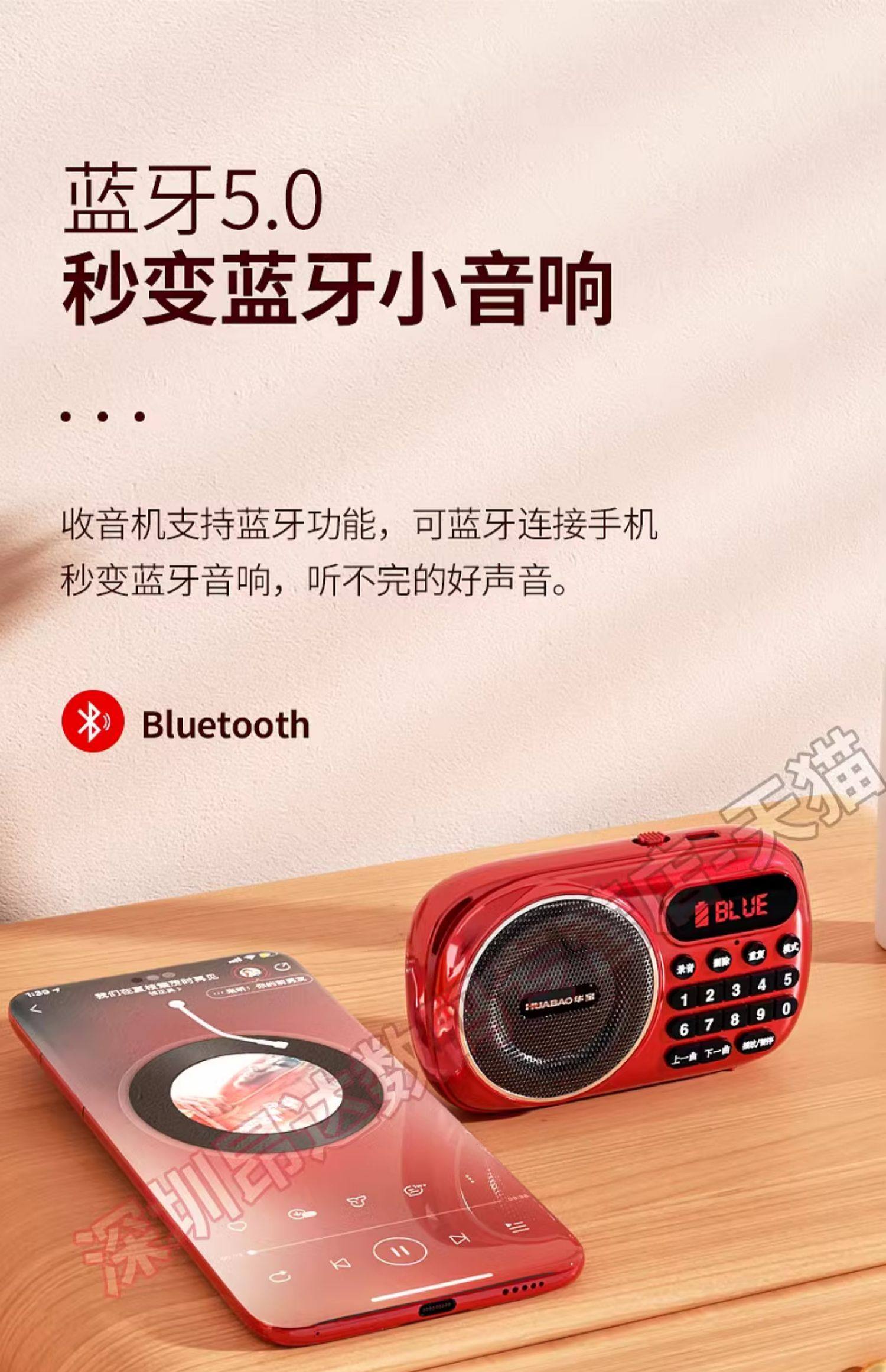 Huabao 2024 New Model Radio for the Elderly, Portable Music Player for Seniors, Card-Insertable Mini Small Semiconductor Player
