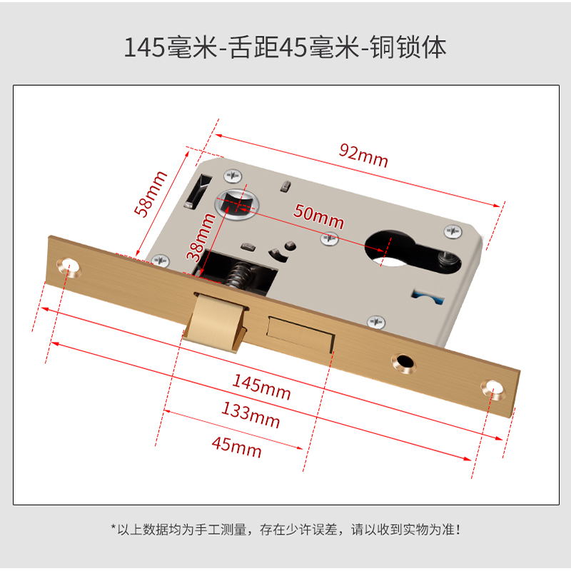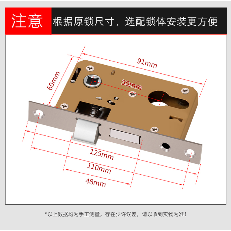 | Color Classification | Two Handles Do Not Include Key Lock Cylinder Lock Body,Type a Complete Set of Locks with Small 50 Iron Lock Body Length 125,Type B Complete Set of Locks with Small 50 Copper Tongue Lock Body Length 125,Type C Complete Set of Locks with Small 50 Bearings Lock Body Length 125,Type D Complete Set of Locks with Small 50 Silent Lock Body Length 125,The Complete Set of E Locks Is Equipped with a Large 50 Lock Body Length of 145,The Complete Set of F Locks with Large 50 Silent Lock Body Length 160,The Complete Set of g Locks with Large 50 Bearings Lock Body Length 160,The Complete Set of H Locks Is 50 Large and the Lock Body Is 150 Long,Type I Complete Set of Locks with Large 50 Copper Lock Body Length 145,The Complete Set of J Locks with Large 50 Copper Lock Body Length 145,The Complete Set of K Locks with Large 50 Copper Lock Body Length 145,Manual Measurement Error of about 2 mm Is Normal |