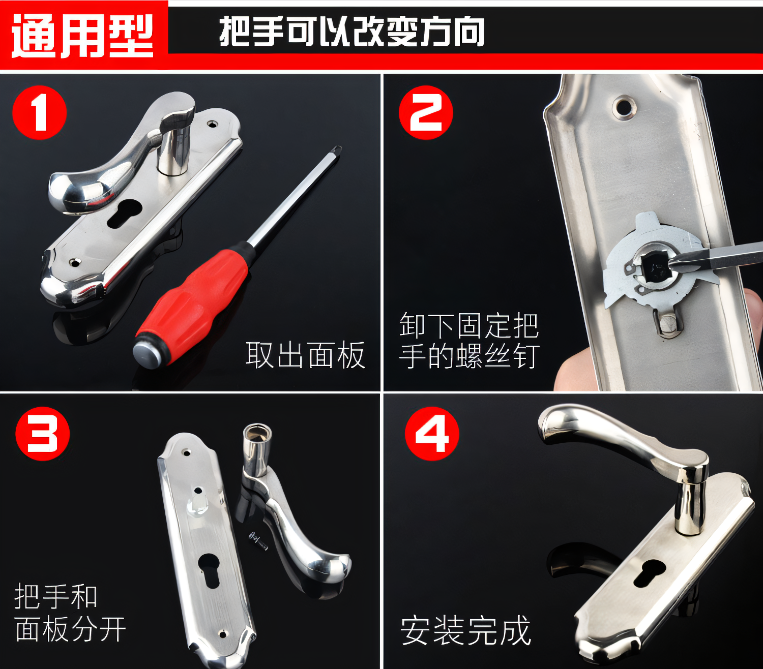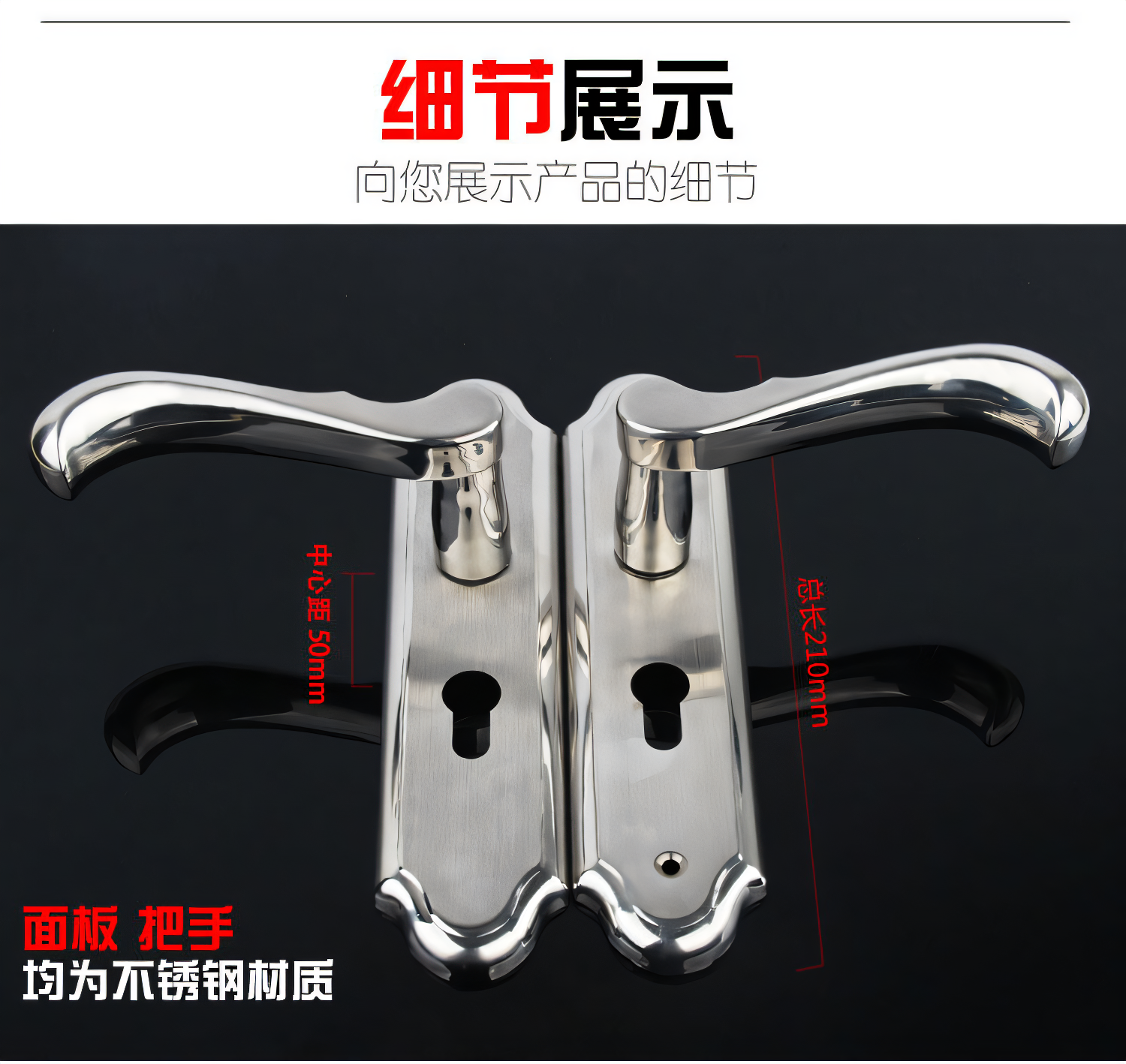 Neutral Door Lock 304 Stainless Steel Material Door Handle Lock Old Door Replacement Lock Indoor Solid Wood Door Room Door Lock