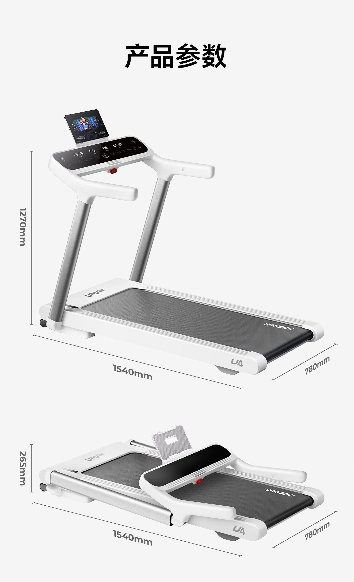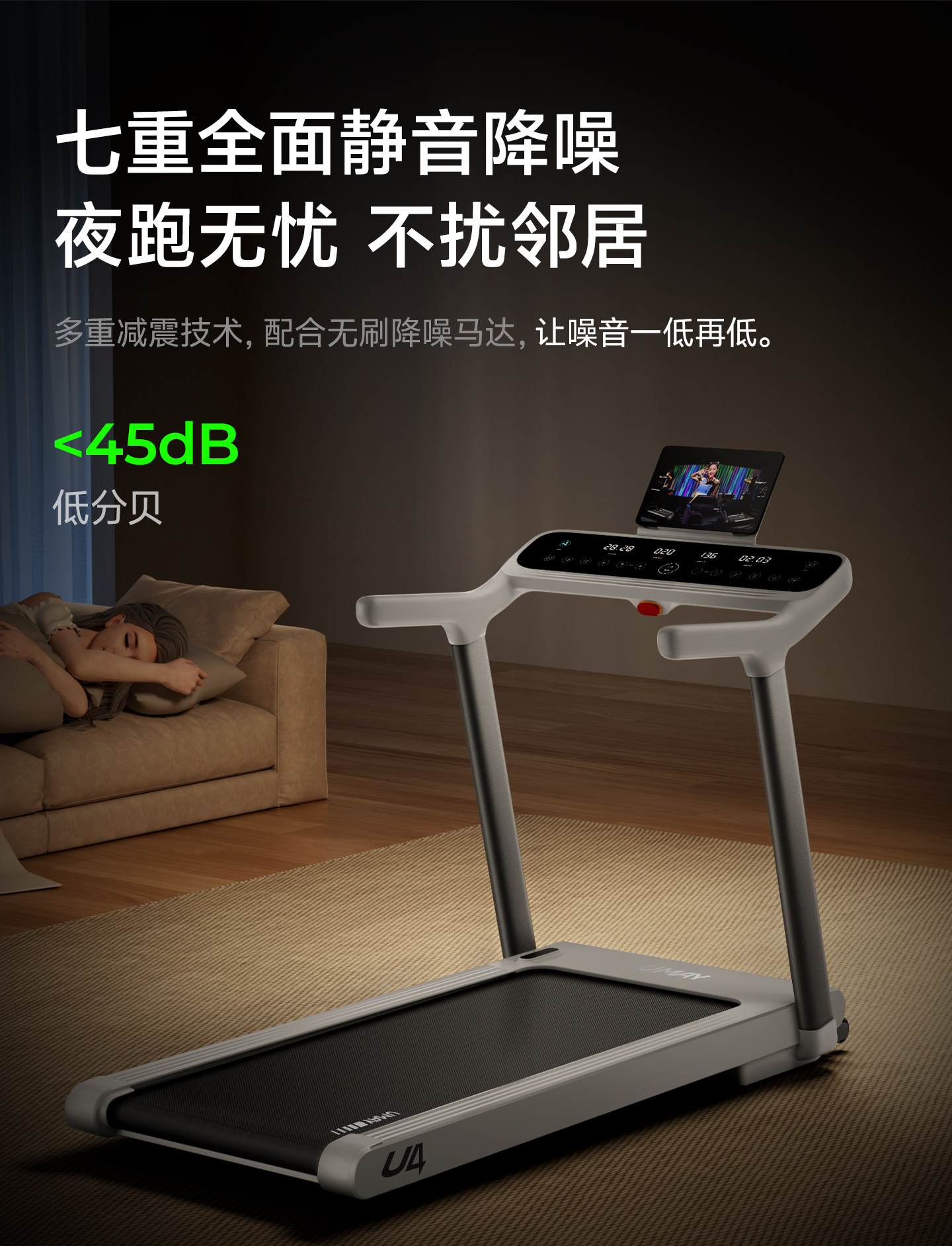 Youmei U4Pro Treadmill Is a Small Foldable Smart Walking Machine for Home Use, Gym Silent Indoor Climbing Machine