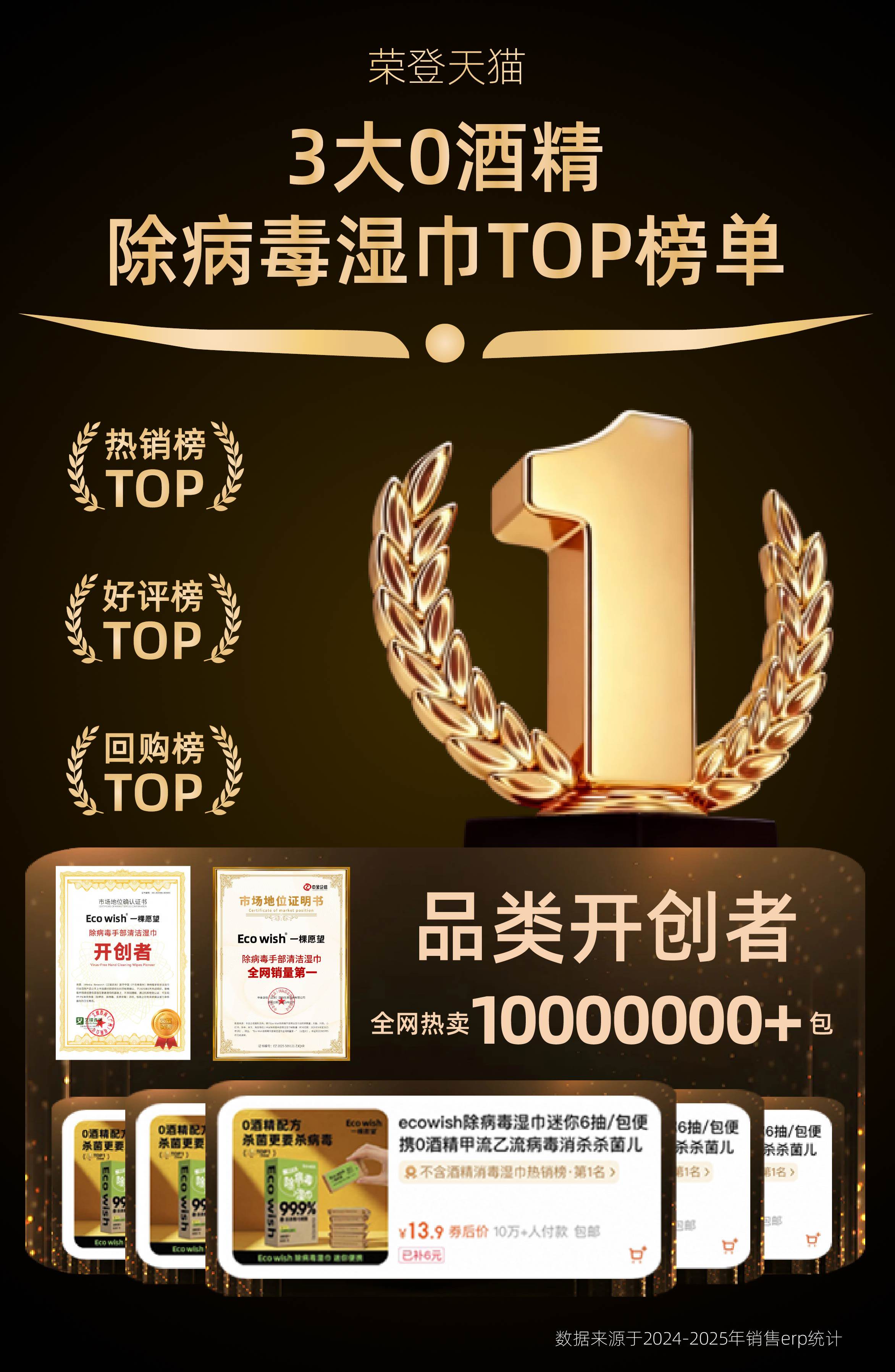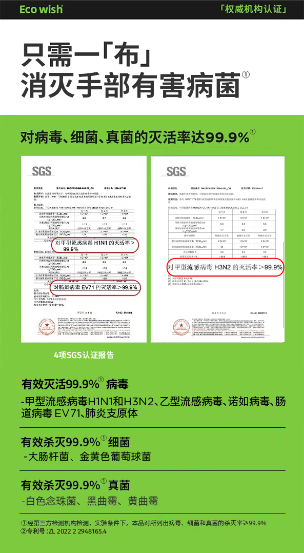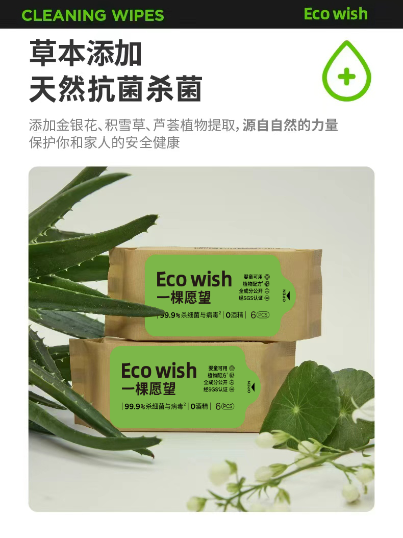 [Influenza a and B H3N2]Ecowish Virus Removal Wipes 6 Sheets/Pack Portable Alcohol-Free Influenza a and B Disinfection