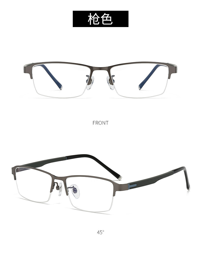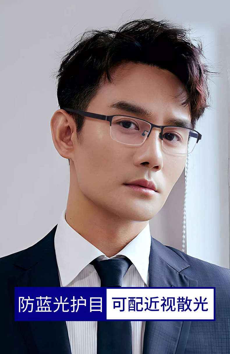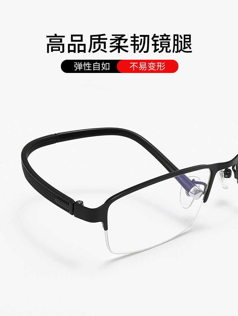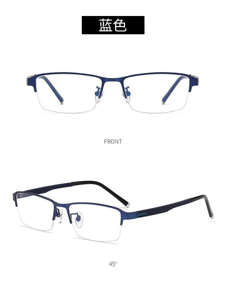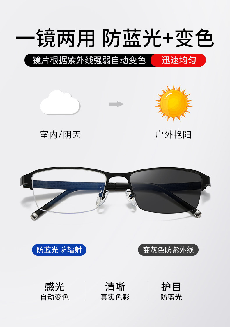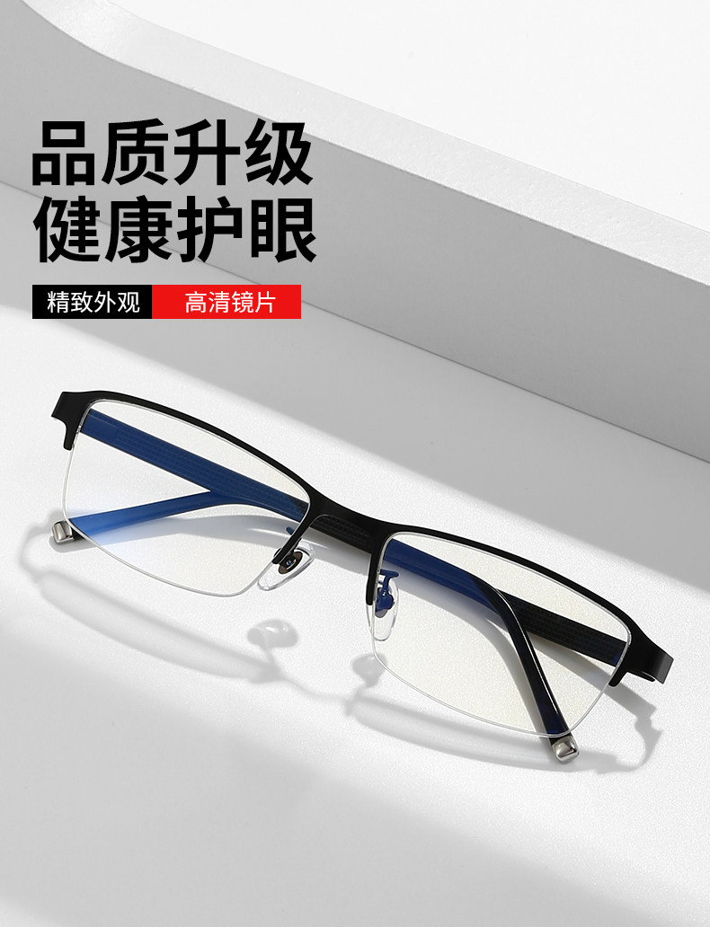 Men's Business Half-Frame Glasses, Anti-Blue Light Radiation, Anti-Fog, Myopia Glasses, Can Be Customized with Prescription, Photochromic, Non-Prescription Glasses for Men