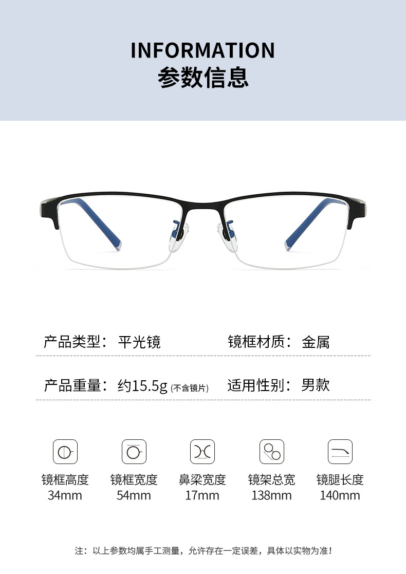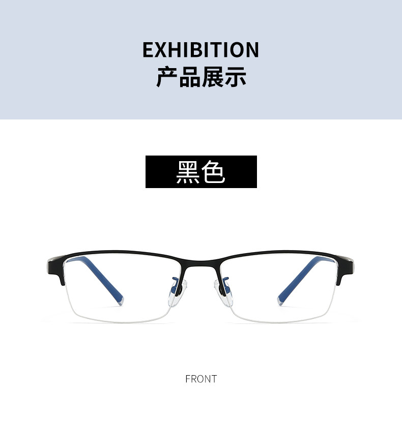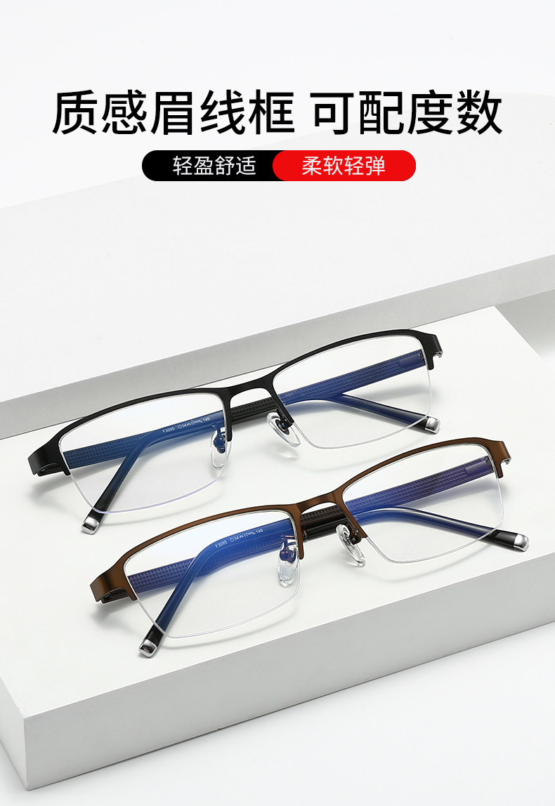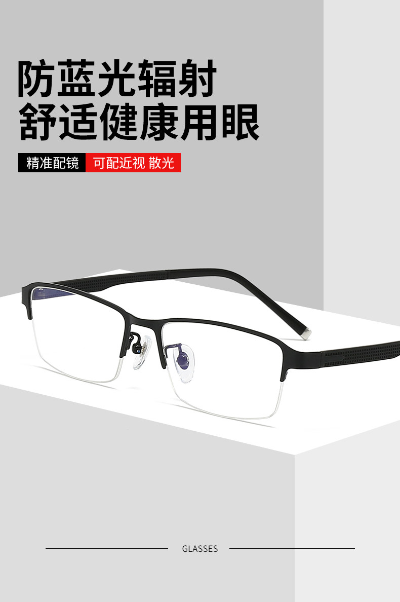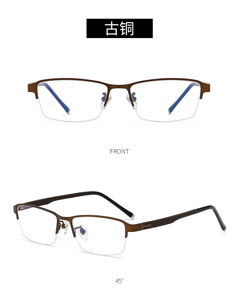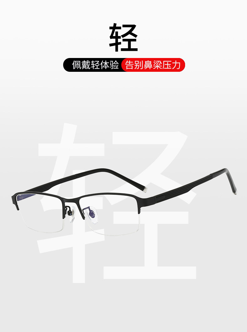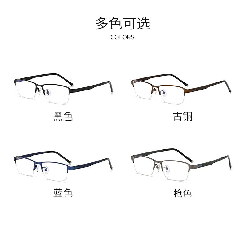 Men's Business Half-Frame Glasses, Anti-Blue Light Radiation, Anti-Fog, Myopia Glasses, Can Be Customized with Prescription, Photochromic, Non-Prescription Glasses for Men