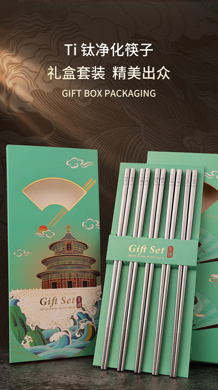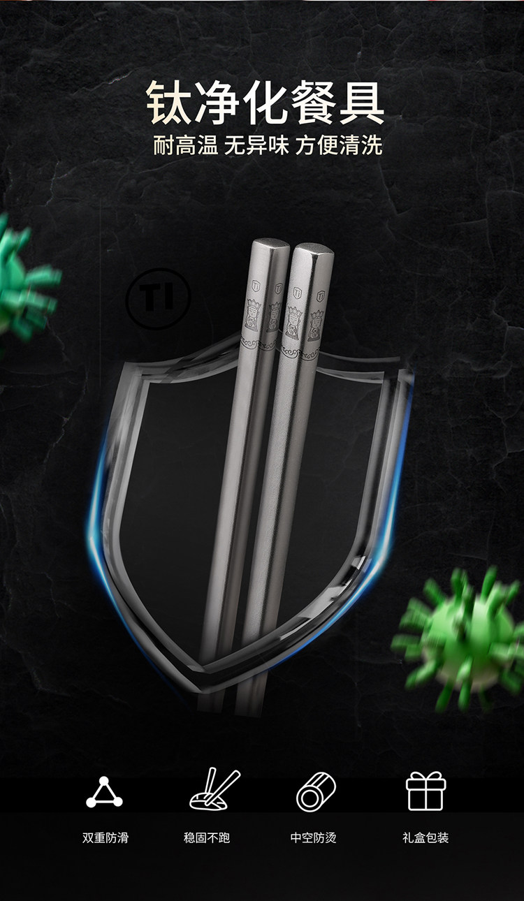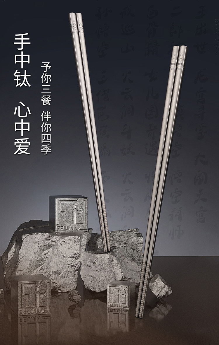 Black Myth Sun Wukong Titanium Alloy Chopsticks for Home Use, Non-Slip, Antibacterial, Anti-Mold, Food-Grade, High-End Outdoor Portable Tableware