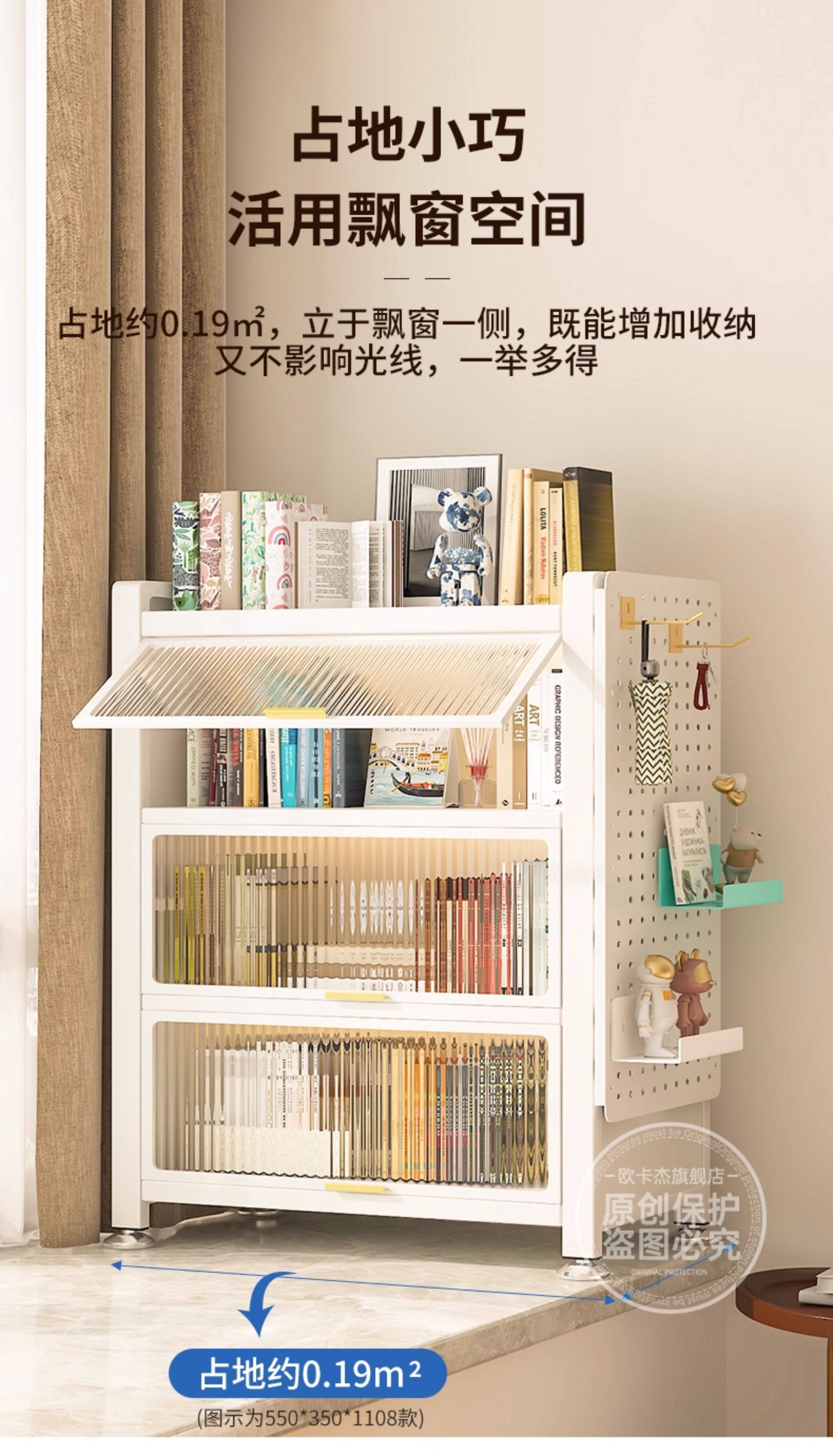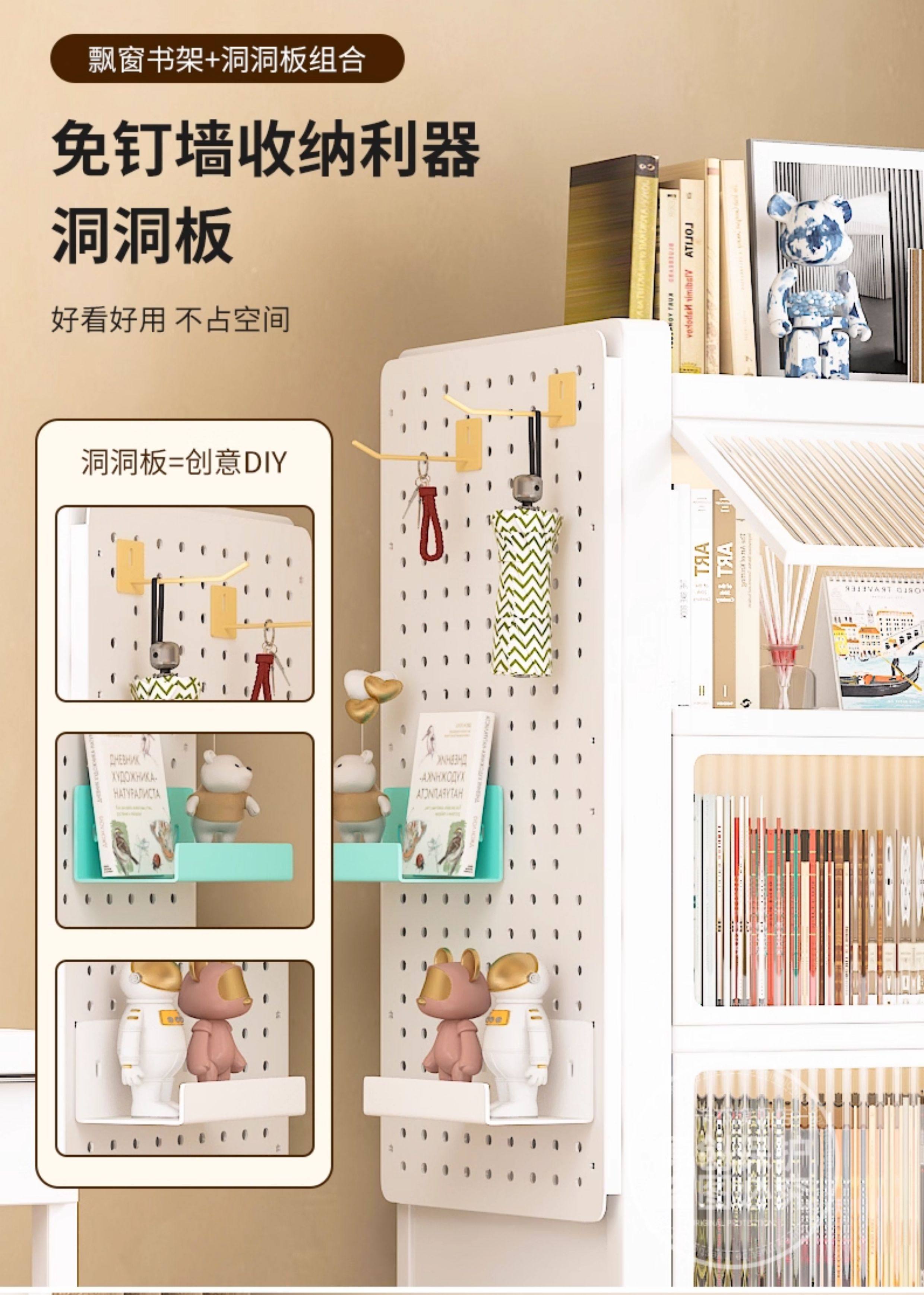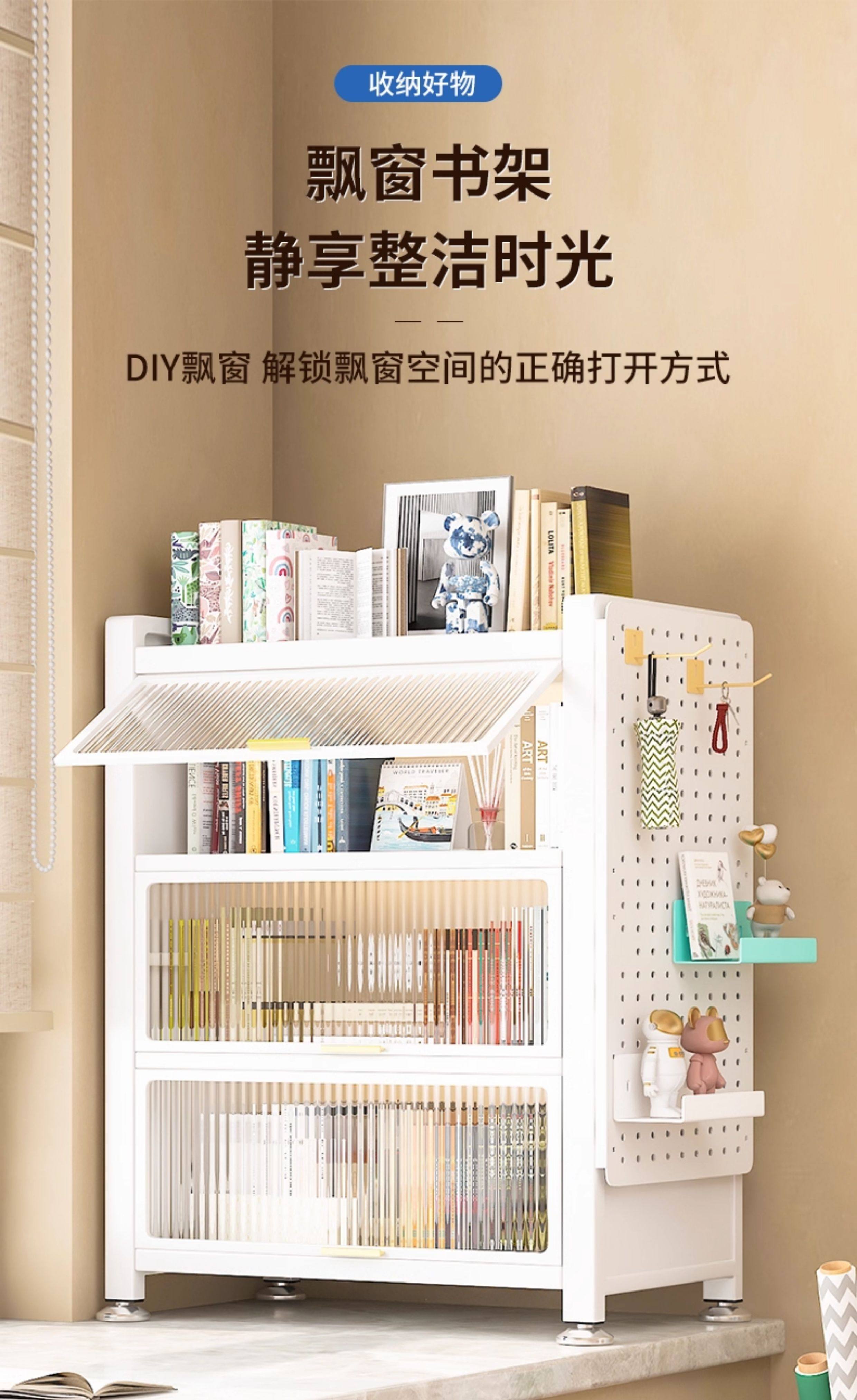 Oukajie Steel Bay Window Bookshelf Home Bookcase Balcony Living Room Storage Cabinet Window Sill Pegboard Shelf