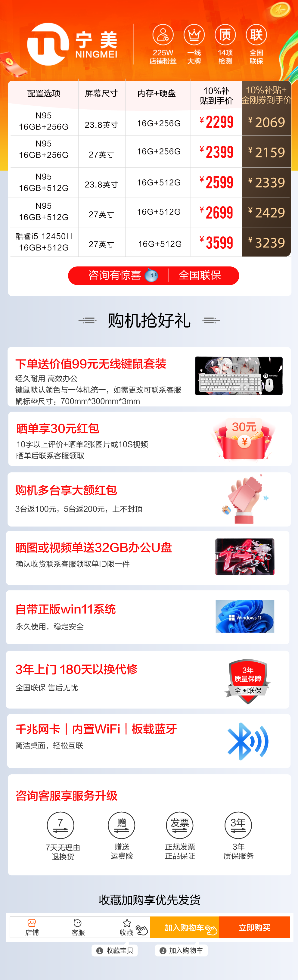 [National Subsidy 10% + Consumer Coupons] Ningguomei 23.8/ 27inch All-In-One Computer N95/I5 12450H for Home Office, Gaming, Cashier, Stock Trading, Adjustable Rotating Desktop Computer