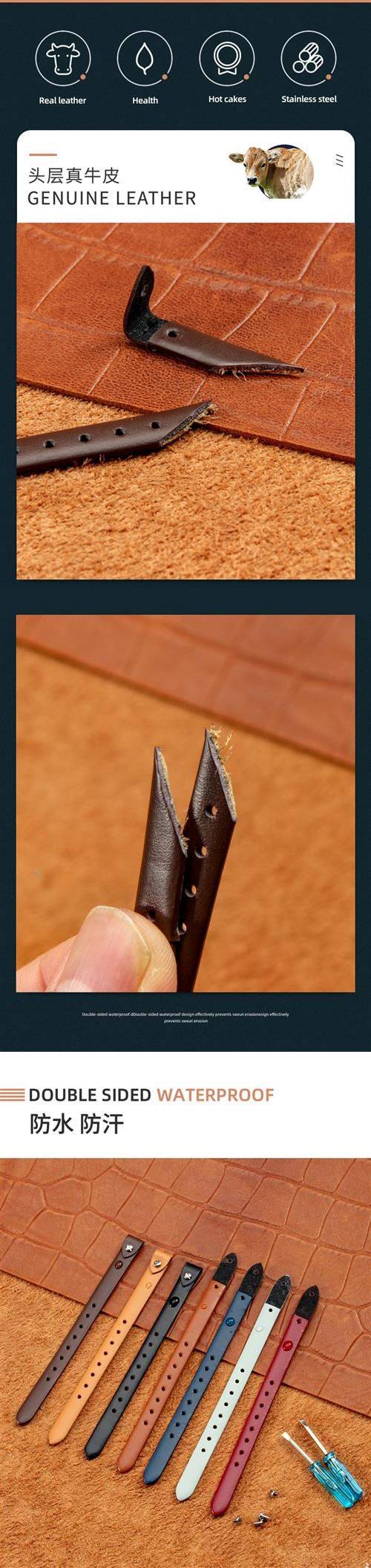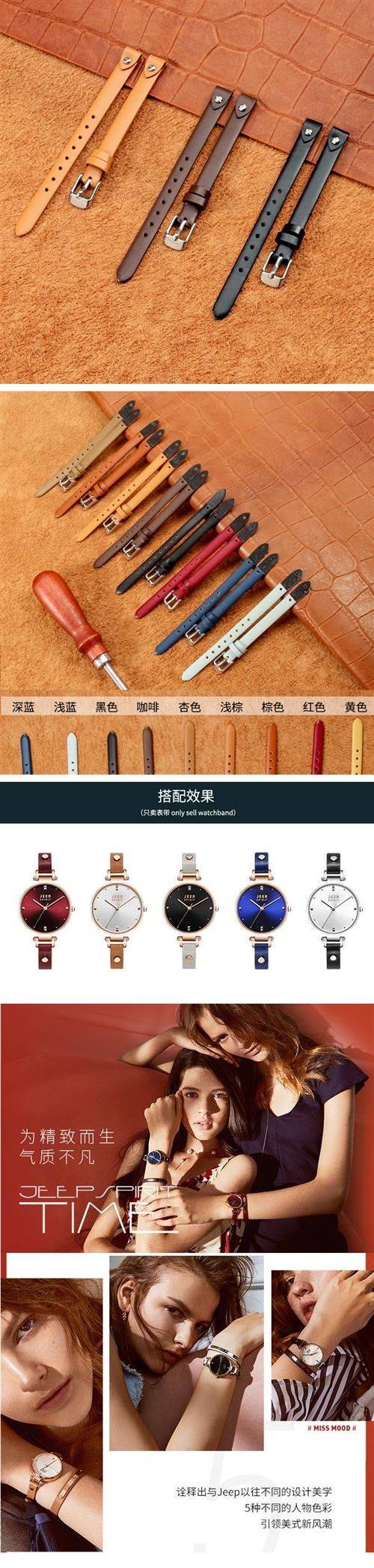 Original Genuine Leather Watch Strap for Women, Suitable for Jeepspirit Jeep Fossil Fossilia, Compact and Thin Strap 8m