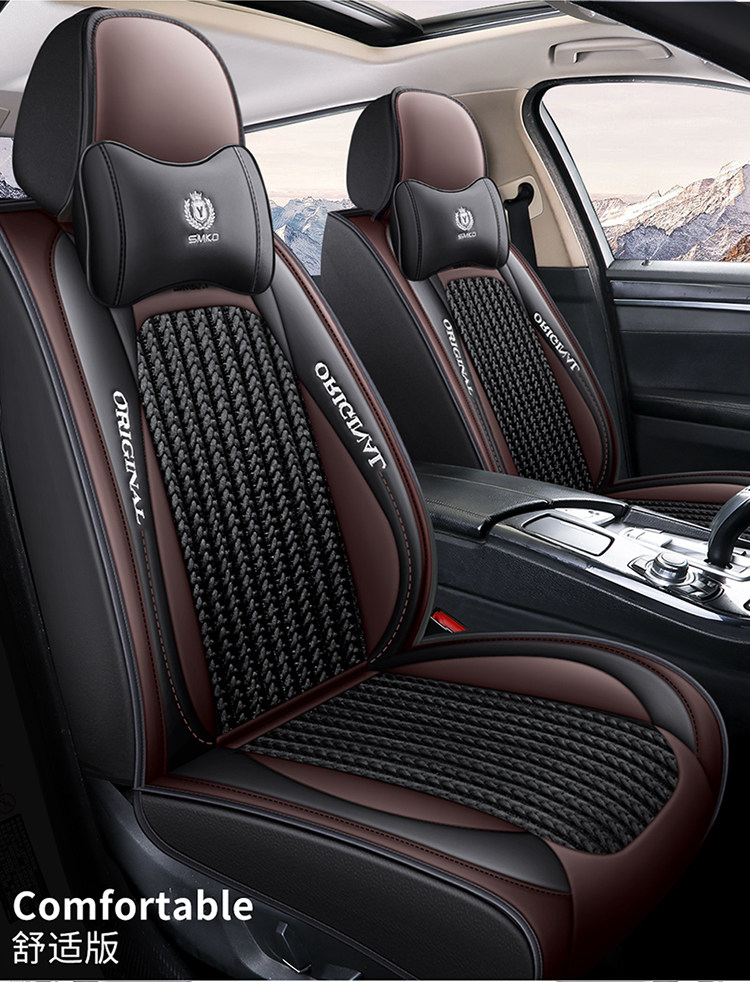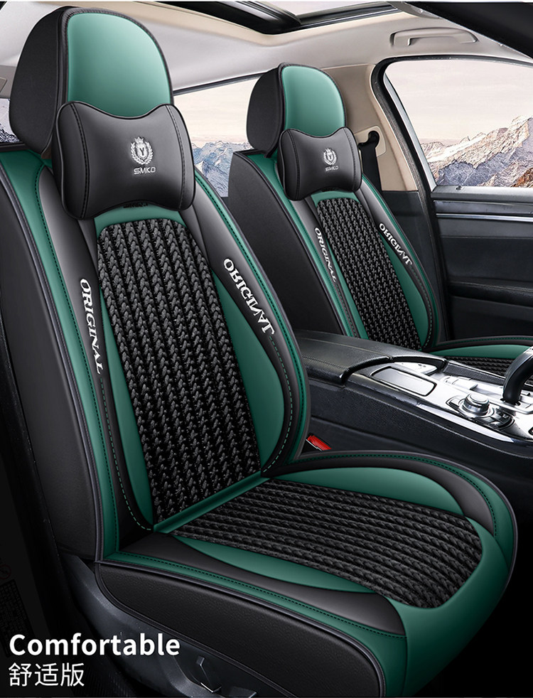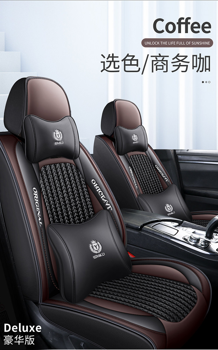 New Full-Coverage Car Seat Cushion, Wear-Resistant Leather, Ice Silk, Breathable, Sweat-Absorbent, Suitable for All Seasons, Popular Online, Unisex Seat Cover