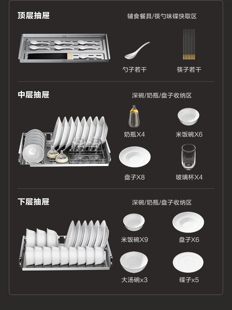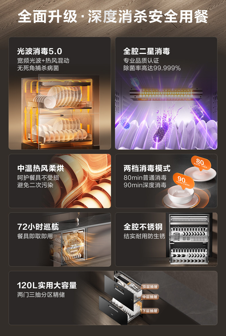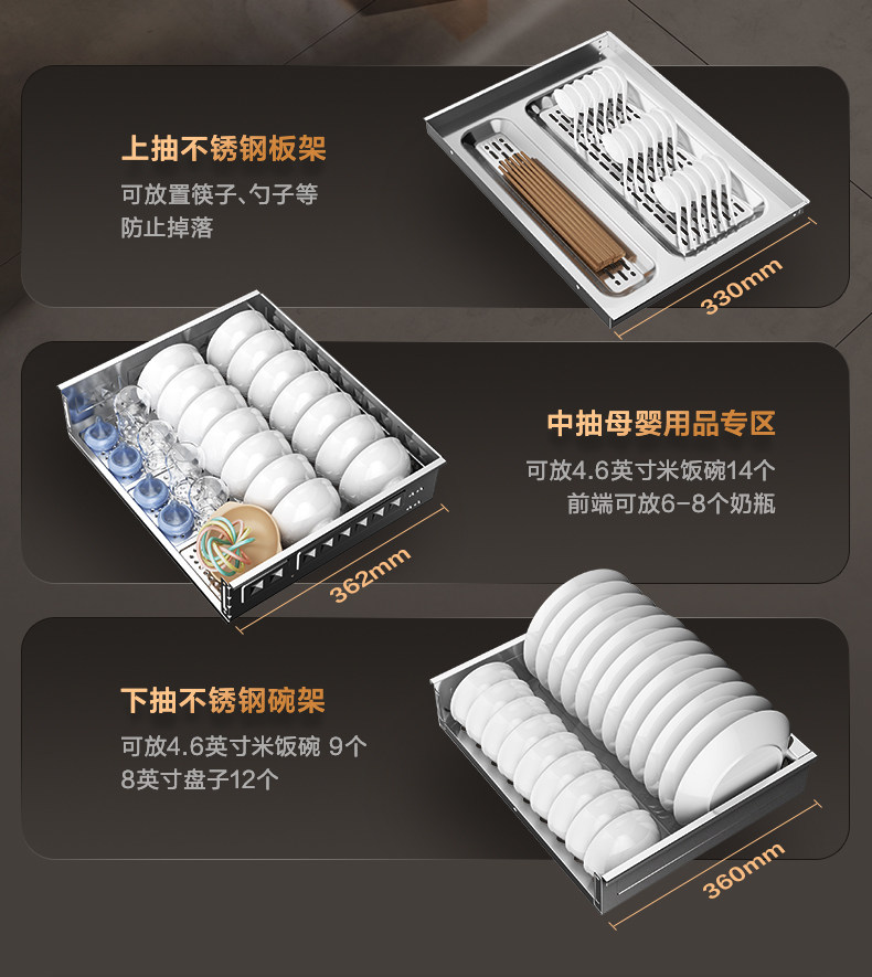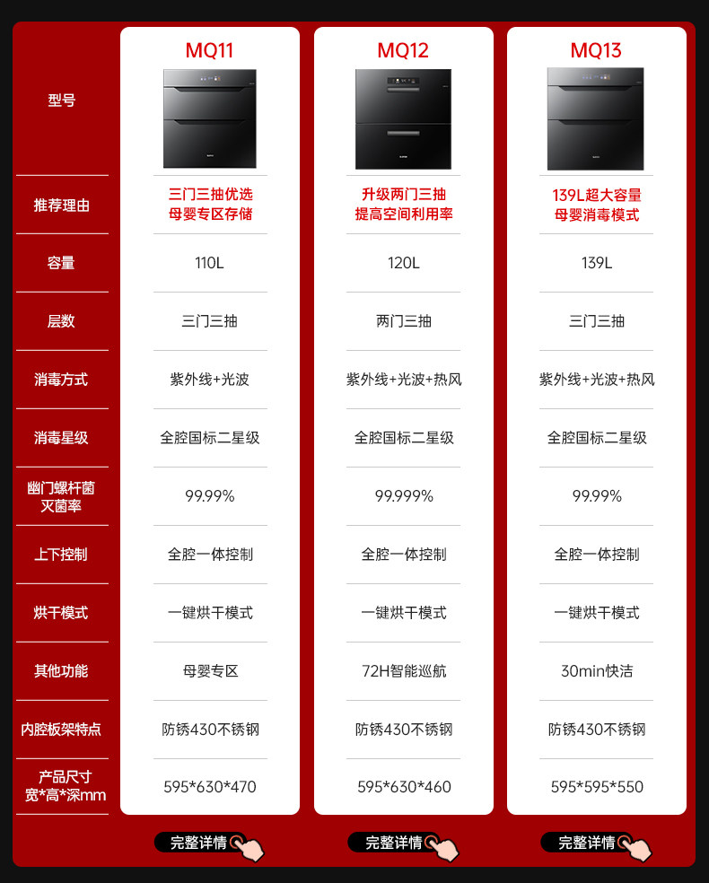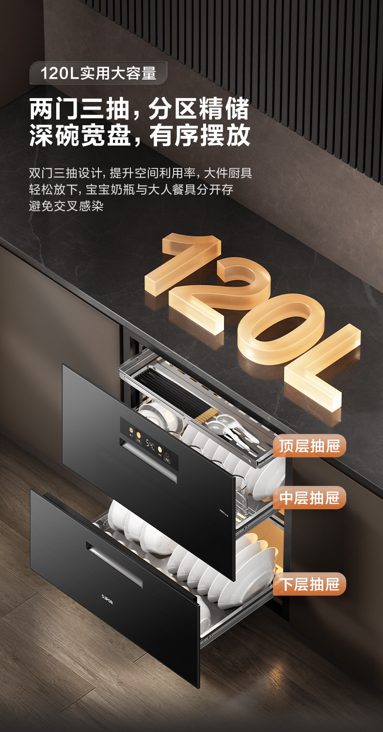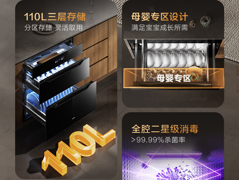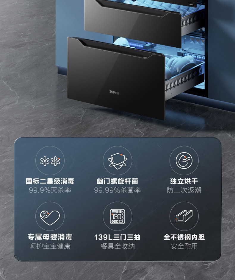[Three Draws] Supor Mq11 Disinfection Cabinet for Home Use, Built-In, Two-Star Disinfection, Mother and Baby Zone Mq12 Mq13