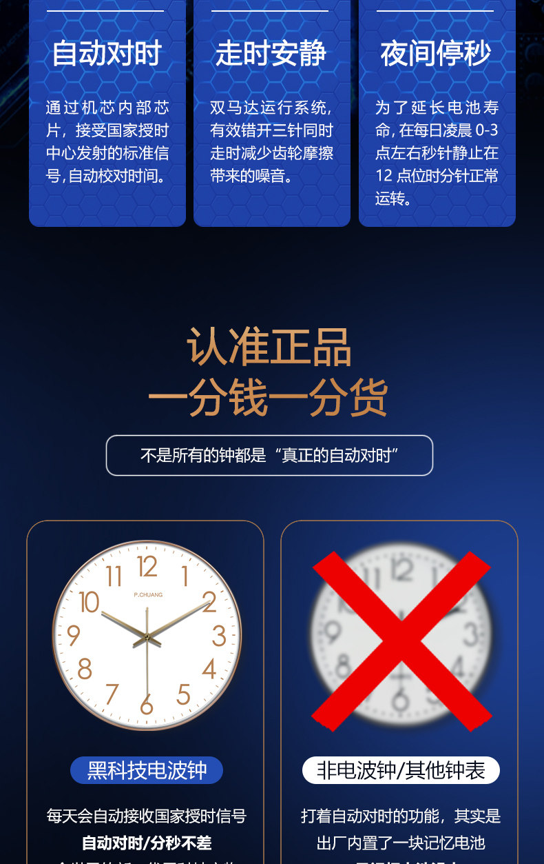 Suning.Com Automatic Time-Setting Wall Clock, Simple Wall Clock, Classroom Clock, Stylish Household Radio-Controlled Quartz Clock 2129