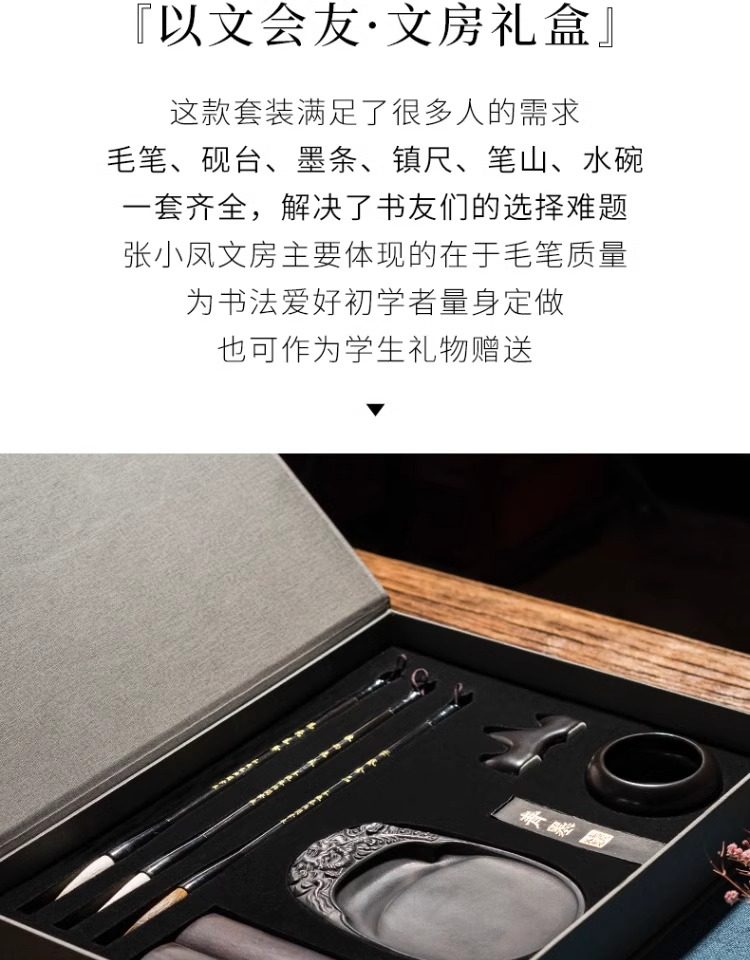 Zifangzhai Zhang Xiaofeng Calligraphy Four Treasures Set: Brush, Ink, Paper, and Inkstone, Complete Beginner Calligraphy Practice Set for Elementary Students, Decorative Items, Brush Holder, Inkstone, Ink Stick, Calligraphy Pen Holder, Pen Hanger, Gift Box, Special Use