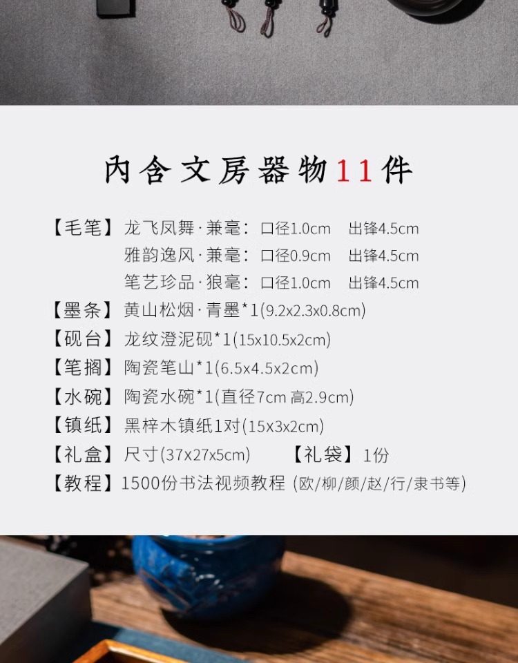 | Color Classification | "Calligraphy & Painting Set - Four Treasures of the Study (Pen Not Included)","Meet Friends through Literature and Calligraphy Set (Pen Hanging Style)",The Ambition of Qingjin[Ouyang Xun Calligraphy Practice Kit],The Ambition of Qingjin[Liu Gongquan Calligraphy Practice Set],The Ambition of Qingjin[Yan Zhenqing Practice Set],Fenghejinqi 9-Piece Entry Set,Fenghejinqi Upgraded 11-Piece Set,Fenghejinqi 13-Piece Entry Set,Lightweight Portable Four Treasures of the Study Set (Gray),Lightweight Stationery Set - Portable Four Treasures Kit (Brown),Lightweight Stationery Set - Portable Four Treasures Kit (White),Lightweight Stationery Set - Portable Four Treasures Kit (Black),Qingqingzi[Stationery Gift Box Set],All Rivers into the Sea[Stationery Gift Box Set],Thousands of Miles of Bright Moon[Stationery Gift Box Set],Auspicious Four Treasures of the Study Set,Xijiang Moon Celadon Stationery Set[With Gift Bag],Thousands of Miles of Mountains and Rivers[Pen Hanging Payment],Ambition to Reach the Clouds[Stationery Gift Box Set],Soaring to New Heights[Stationery Gift Box Set],Listen to the Waves[Small Regular Script Four Treasures Set] |
