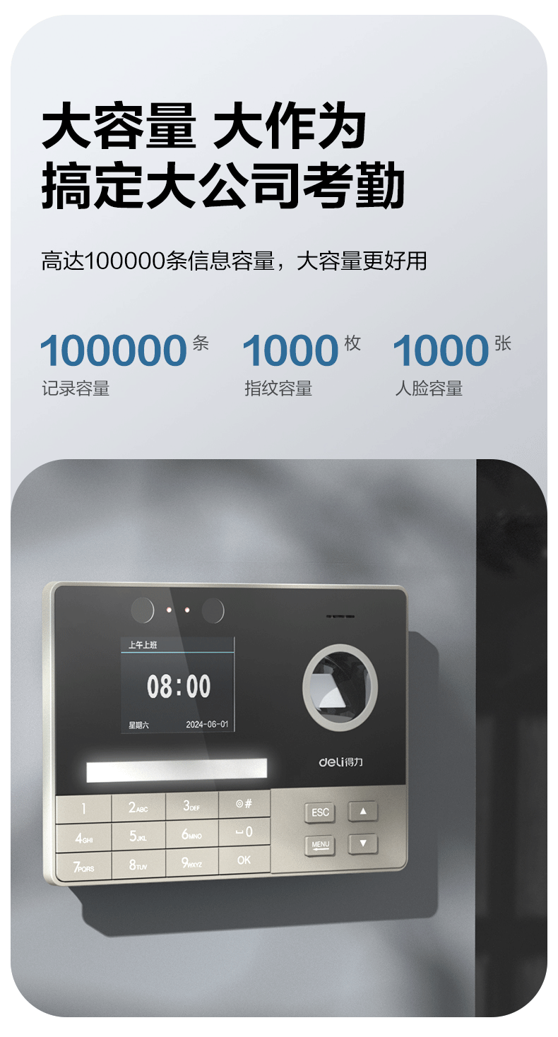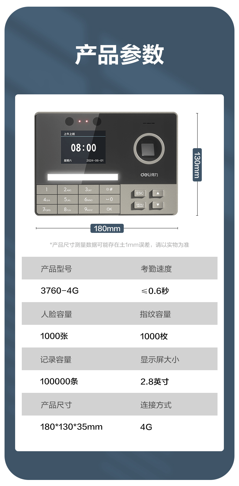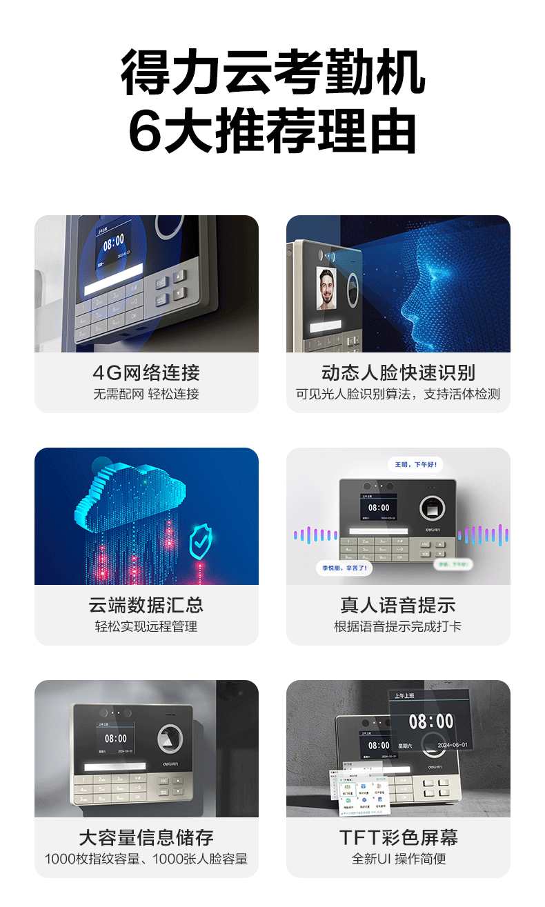 [4G Attendance Machine]Deli Intelligent Fingerprint and Facial Recognition Attendance Machine, No Internet Required, Fingerprint Punch-In Machine, Fingerprint and Facial Recognition Check-In for Multiple Locations and Stores, Attendance Machine for Construction Site and Canteen Employees