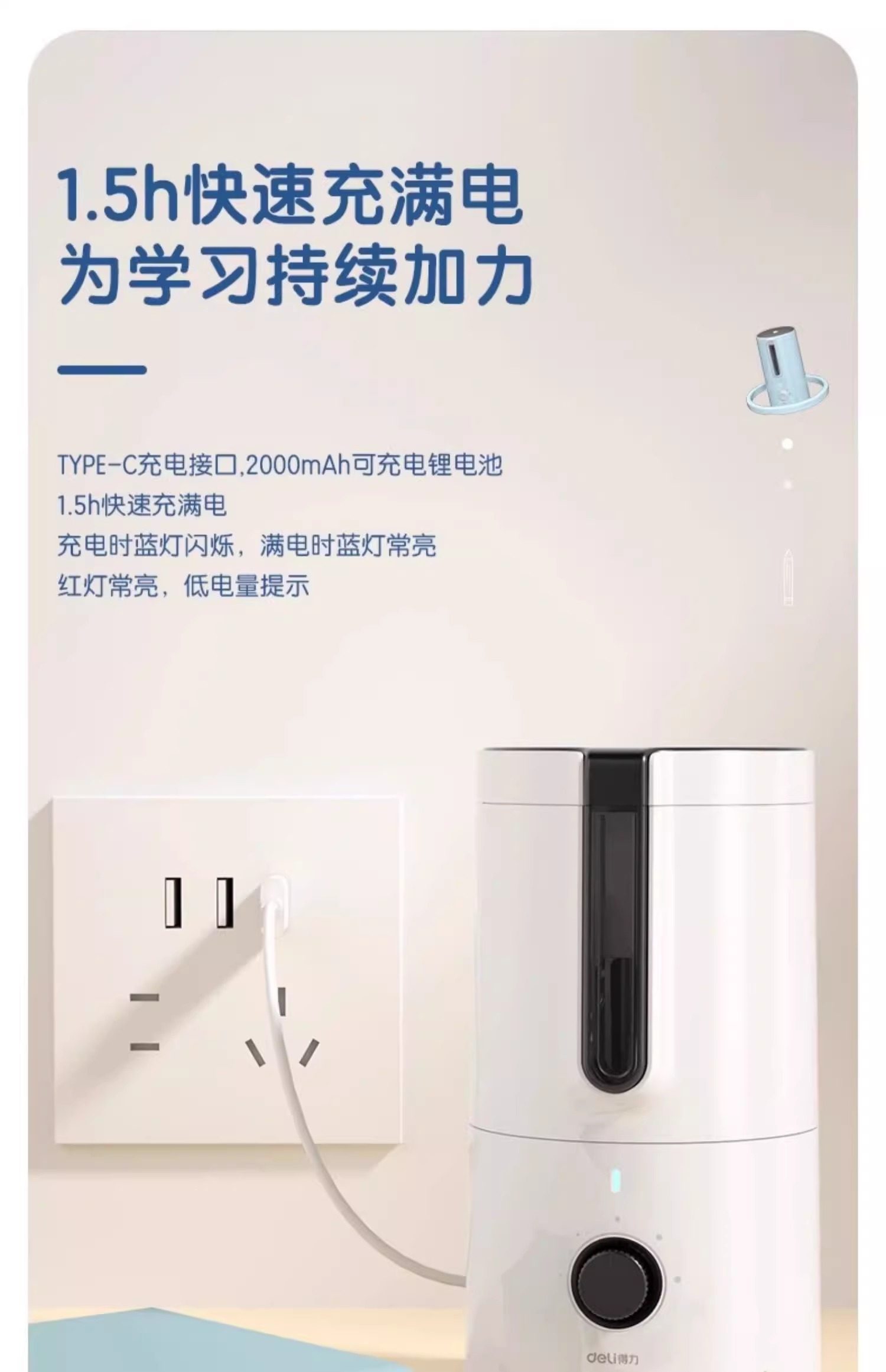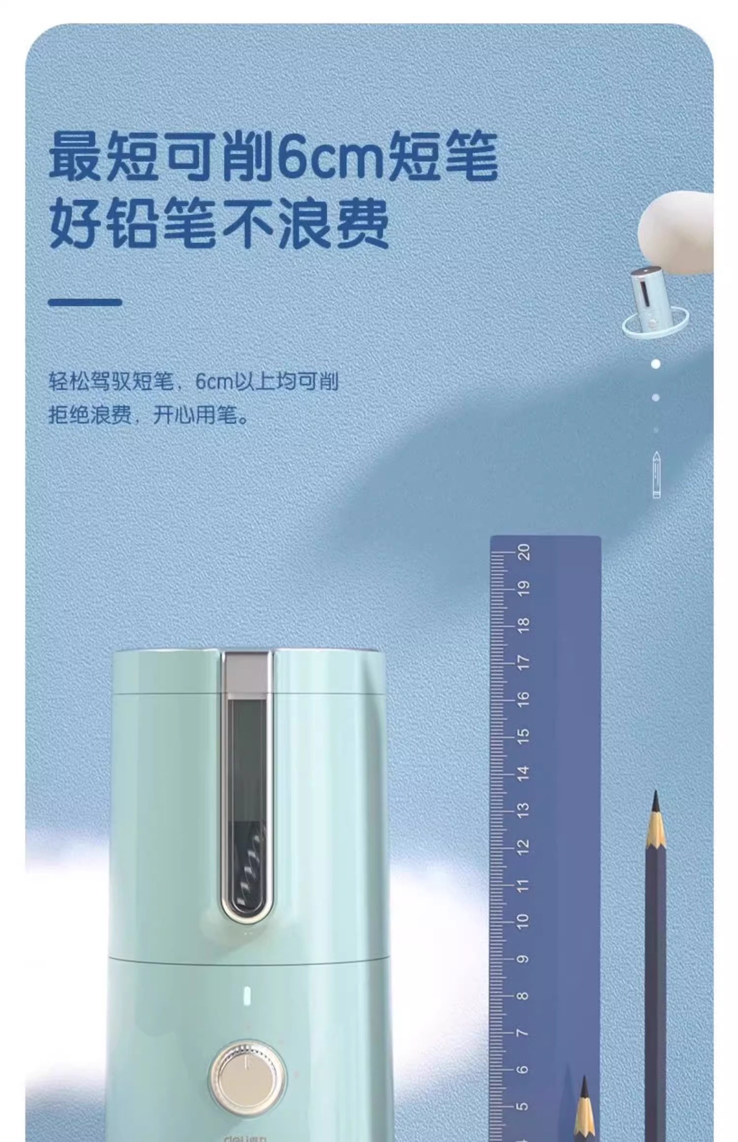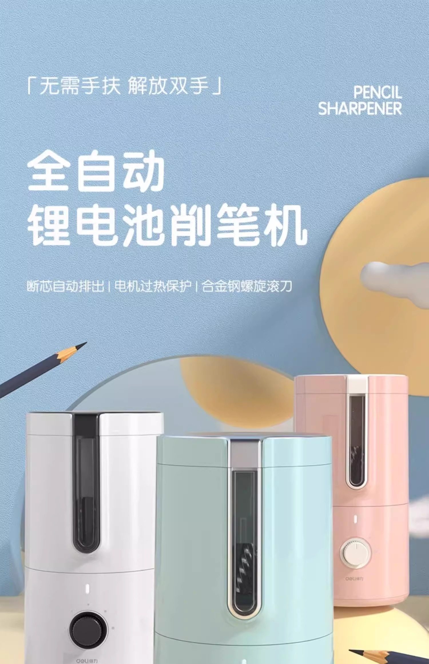 Deli Fully Automatic Pencil Sharpener Electric Pencil Sharpener Automatic Pencil Sharpener Automatic Pencil Sharpener for Elementary School Students Pencil Sharpener Rechargeable Children's Pencil Sharpener