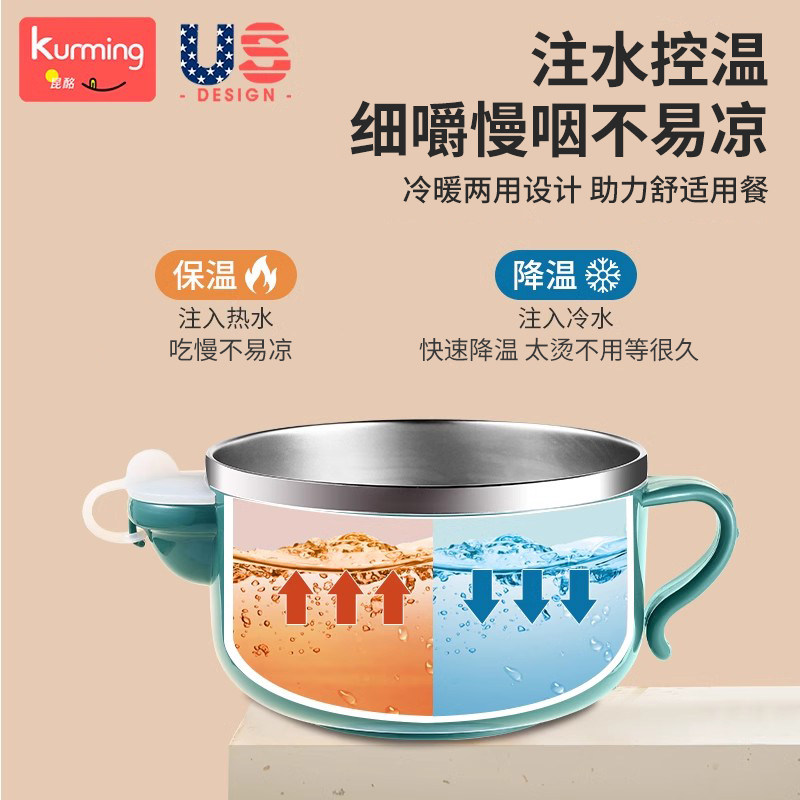 Children's Insulated Bowl 316 Food-Grade Stainless Steel, Anti-Fall, Anti-Scald, Large Capacity, Water-Filled Supplementary Food Bowl for Children over 3 Years Old