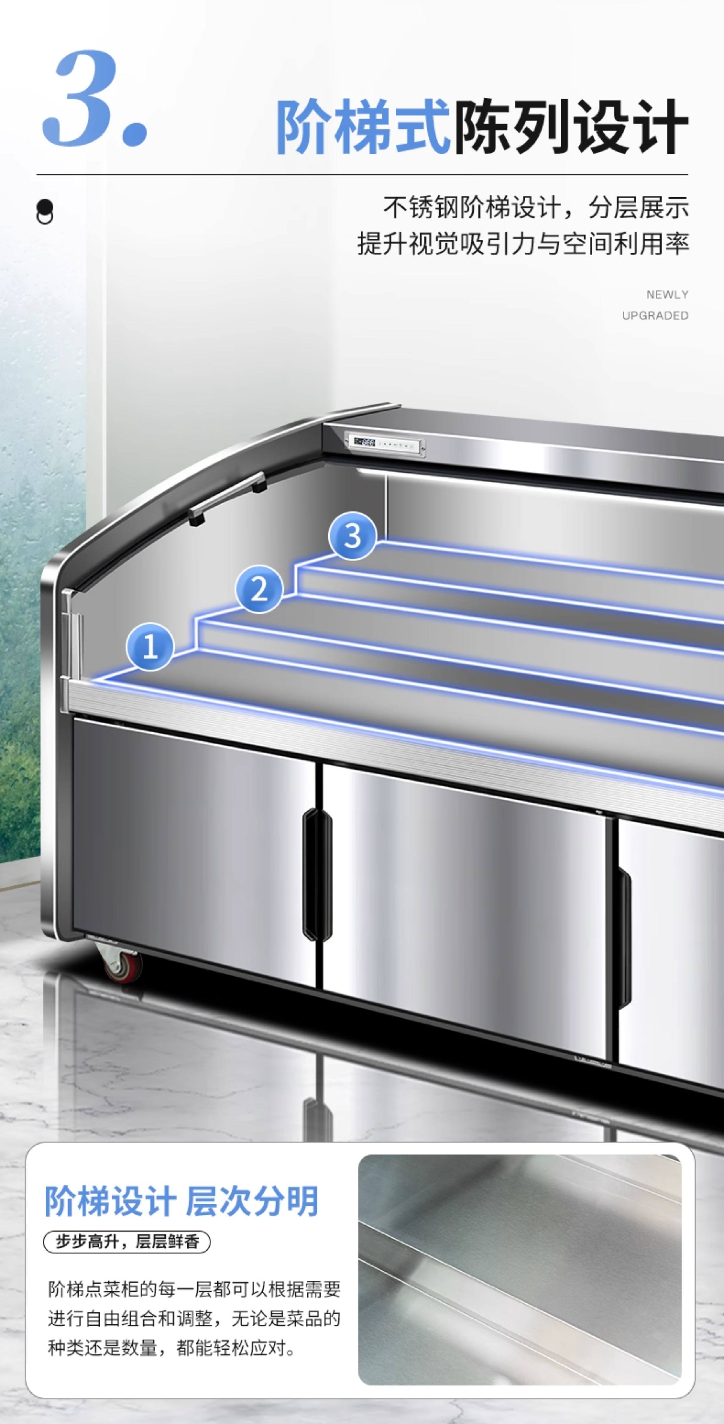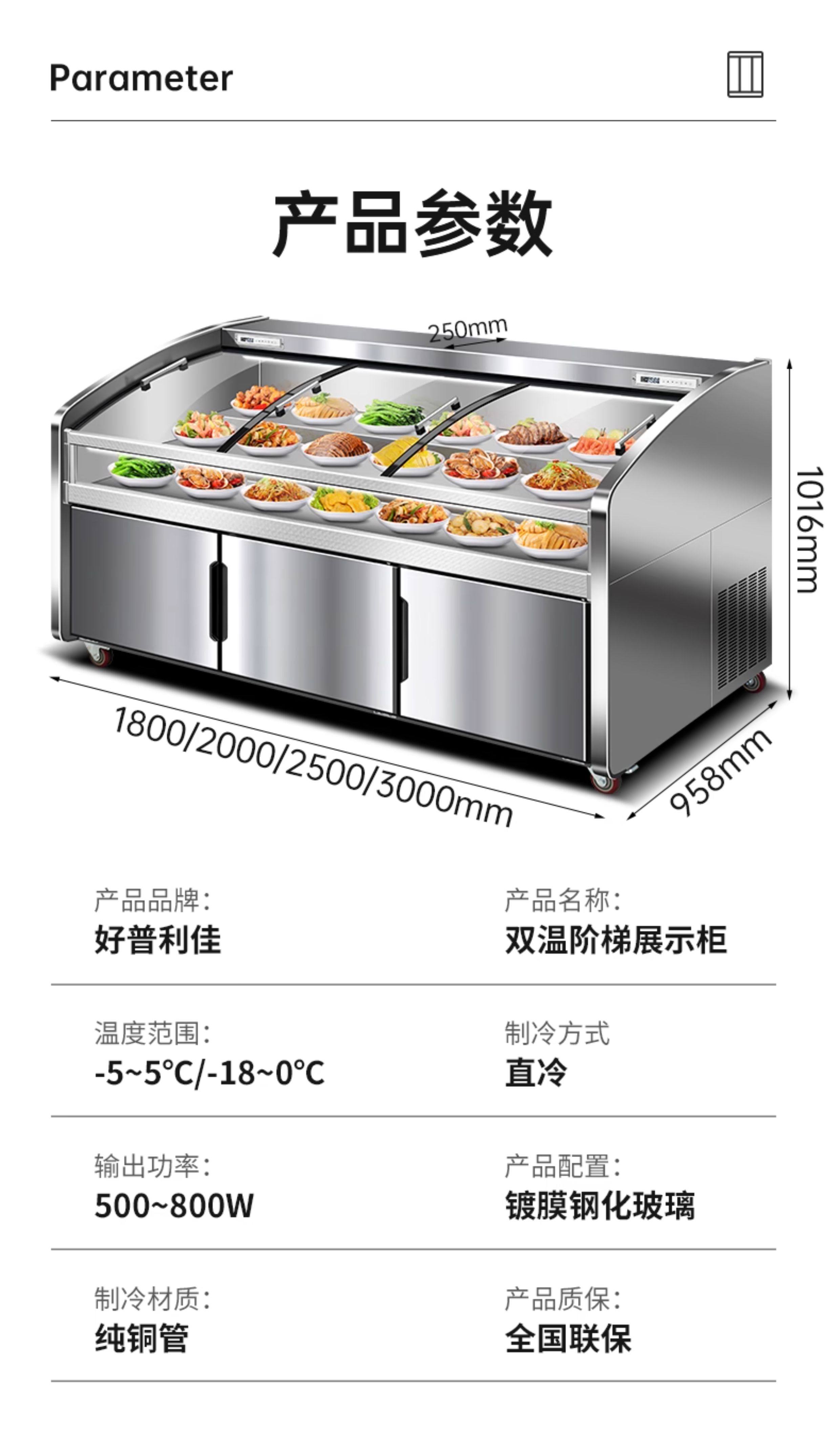 Haopu Lijia Dual-Temperature Three-Level Display Cabinet Refrigerated Freezer Fresh-Keeping Cabinet Commercial Food Restaurant Barbecue Ordering Cabinet