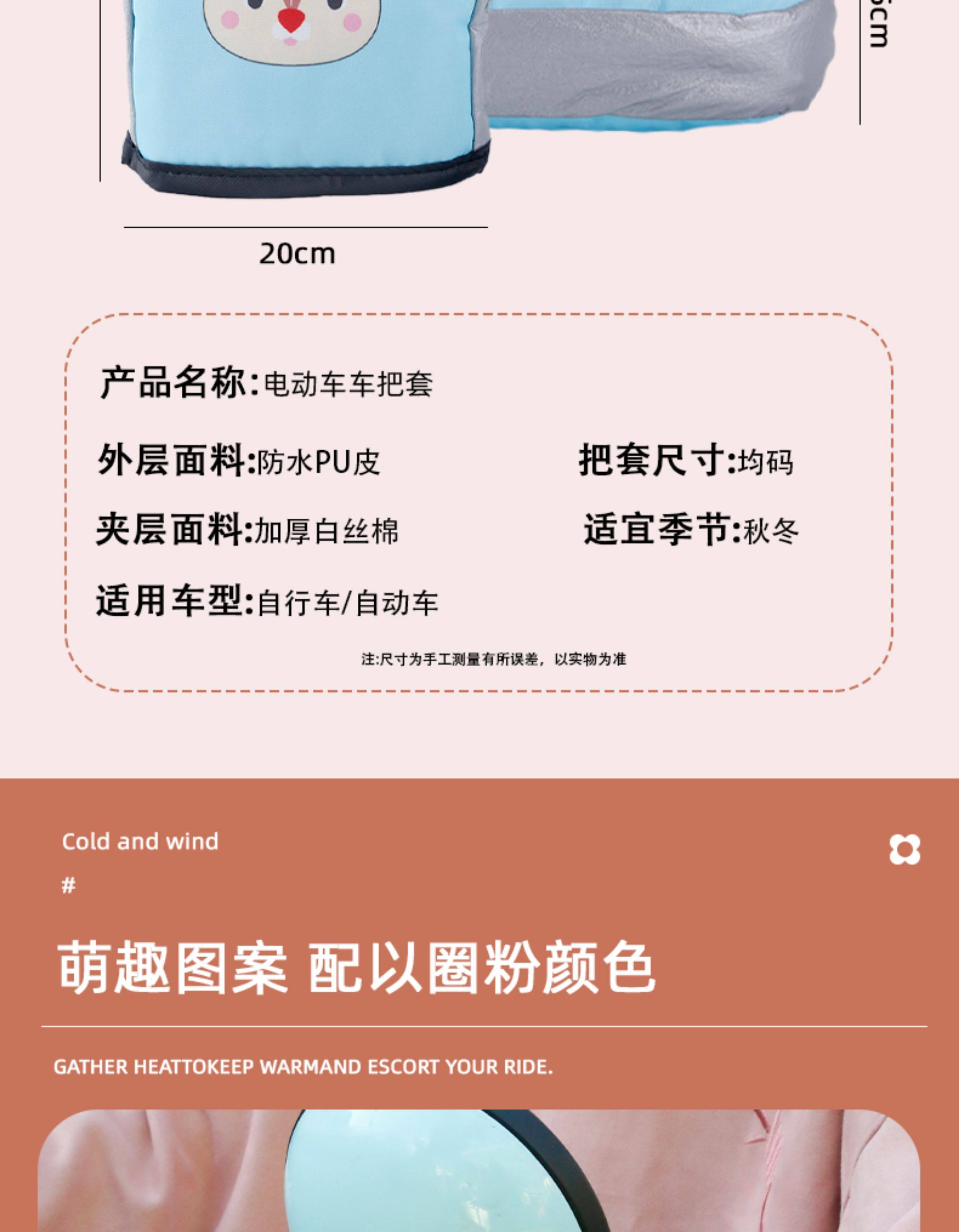Electric Motorcycle Handlebar Covers, Winter Warm Battery Bike Gloves, Waterproof and Windproof Gloves, Fleece-Lined and Thickened Cotton Handlebar Covers