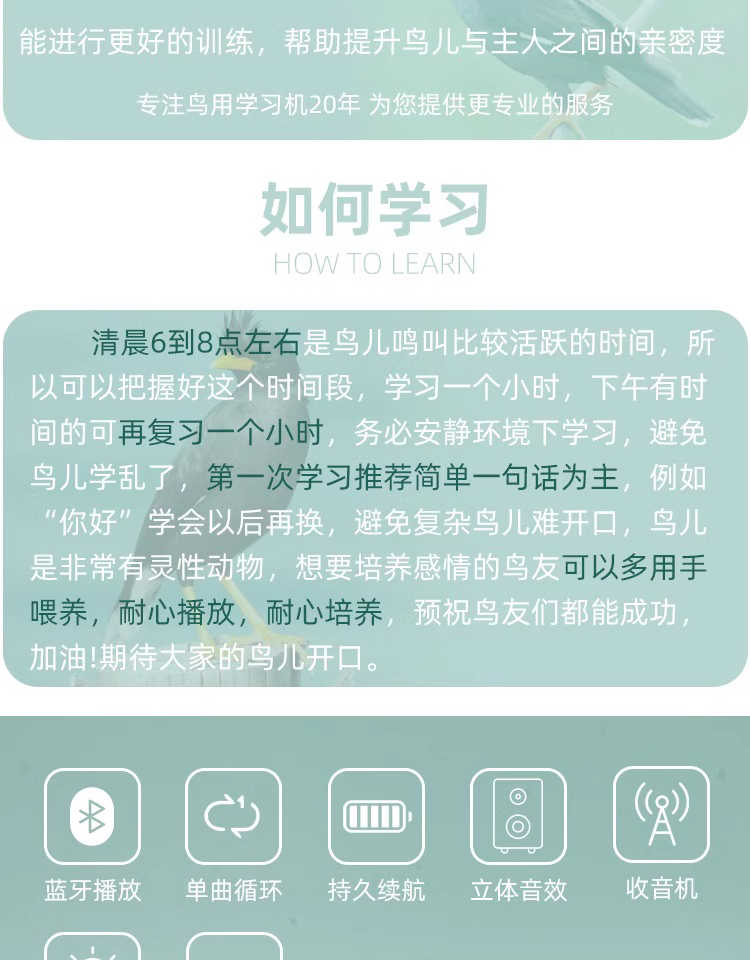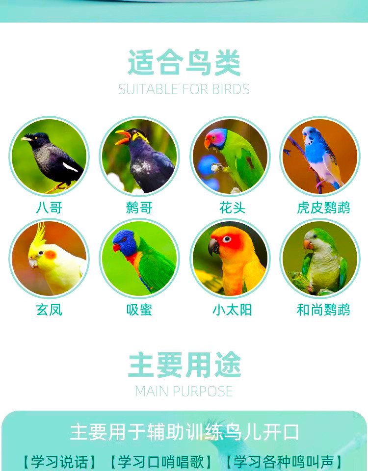 Parrot Talking Learning Device, Bird Recorder, Bird Repeater, Budgie Learning Machine, Player with Timer