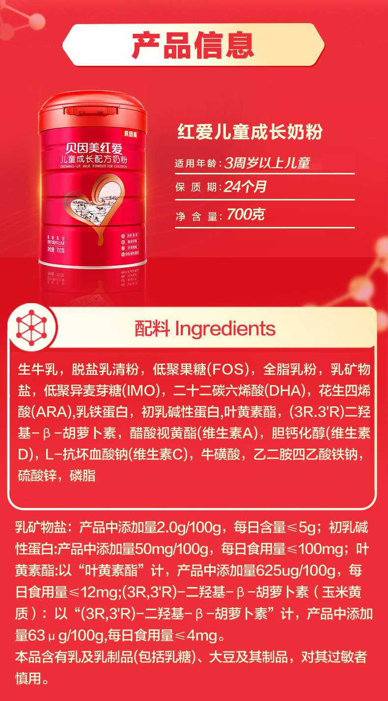 [Ten Billion for 209 Yuan]Beingmate Red Love Stage 4 Children's Growth Nutritional Milk Powder 700g*2 Cans