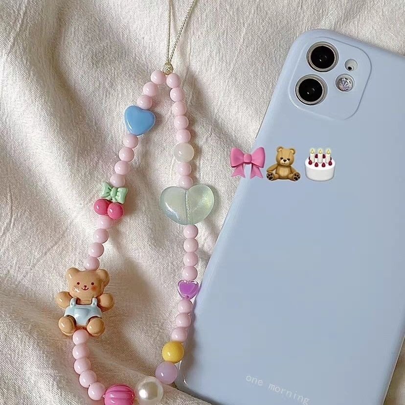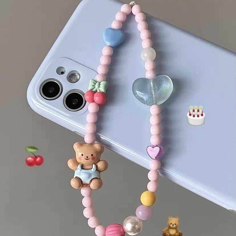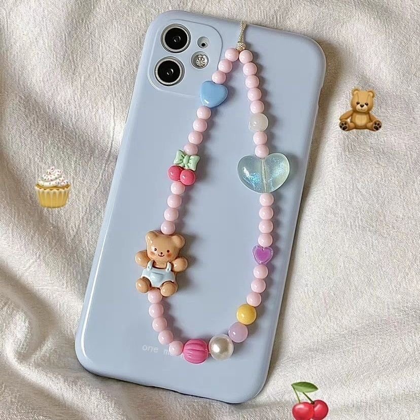 Blue Bear Phone Chain, High-End Accessory, Original Chain, Cute Wrist Lanyard, Beaded Pendant, Camera Hanging Chain
