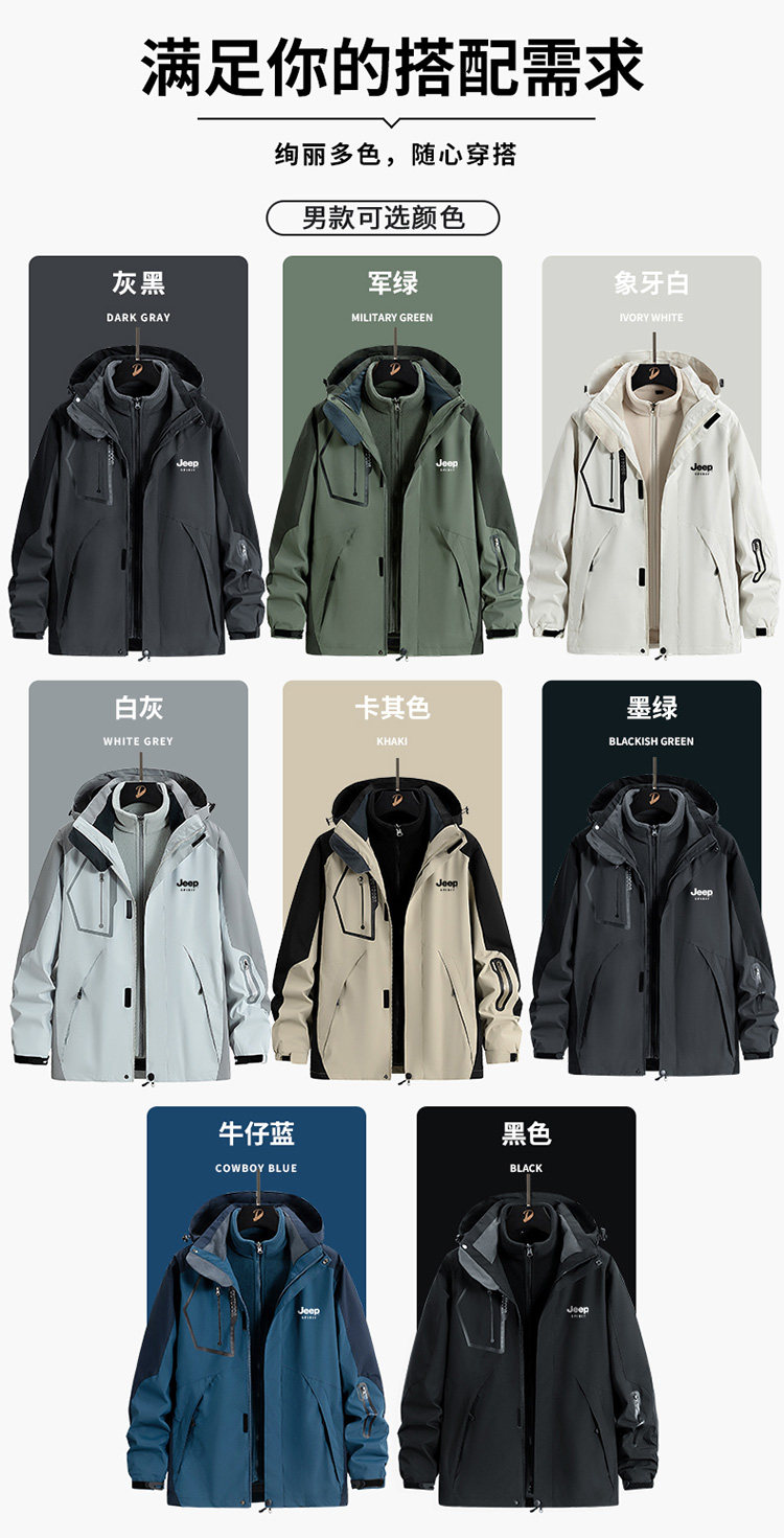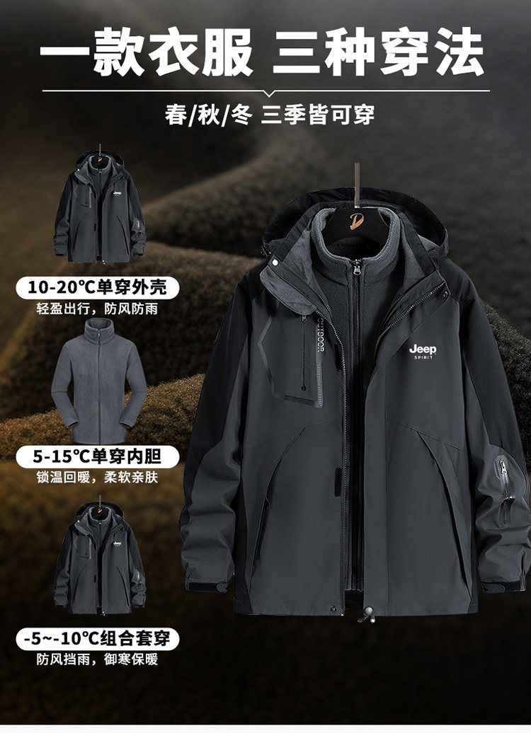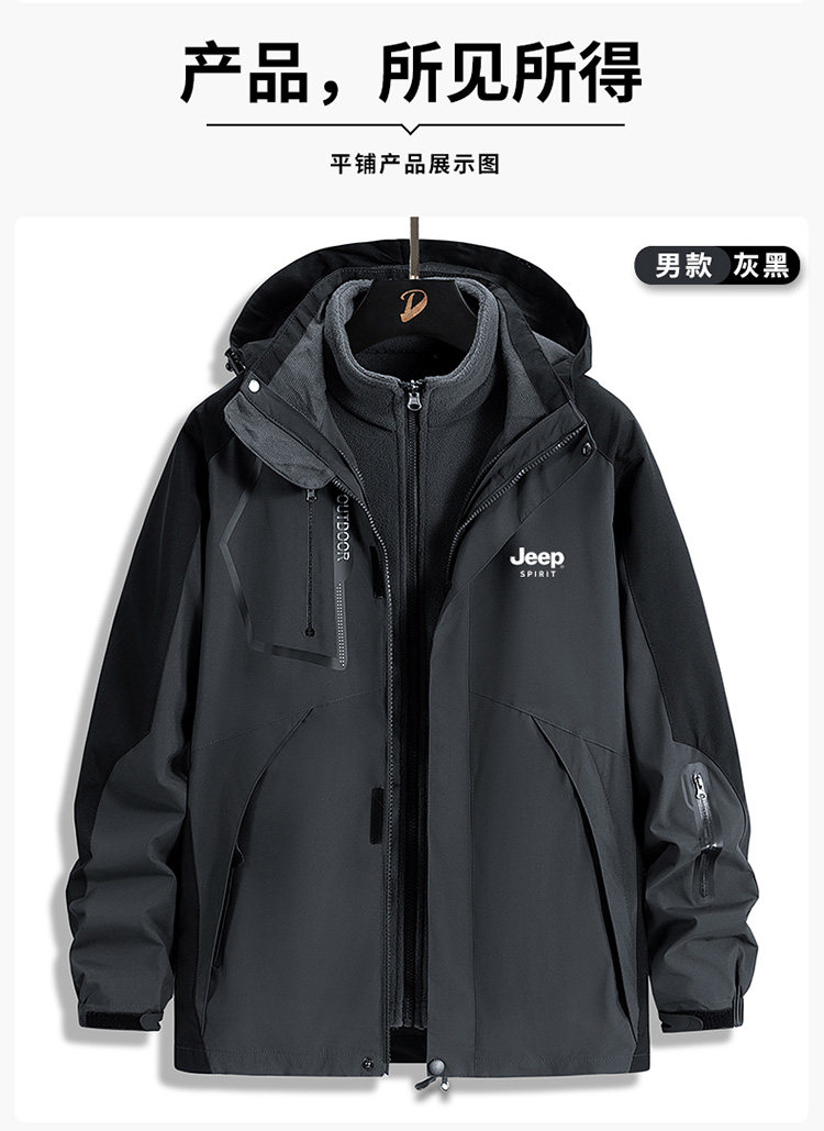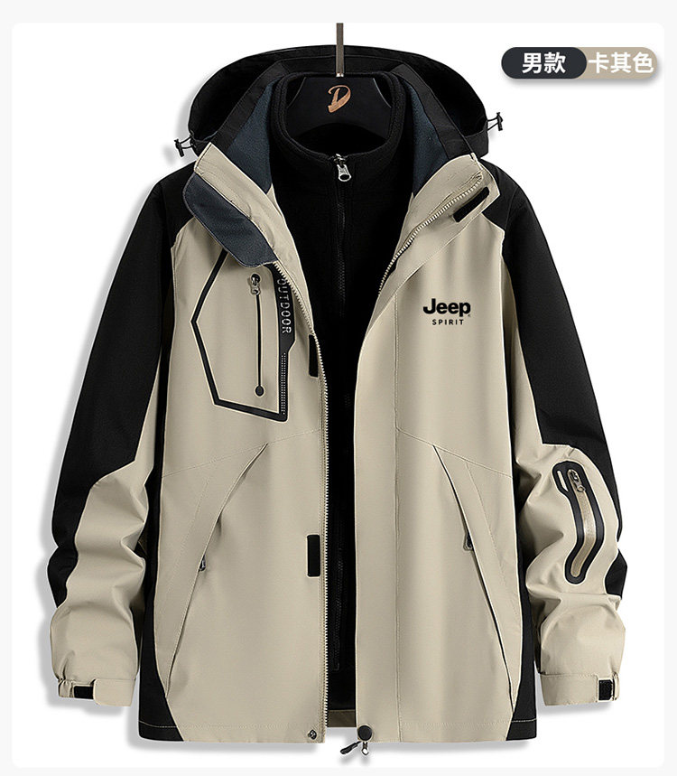 Jeep Men's Jacket 2025 New Three-In-One Detachable Outdoor Windproof Autumn and Winter Jacket