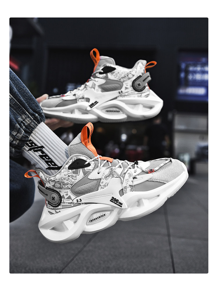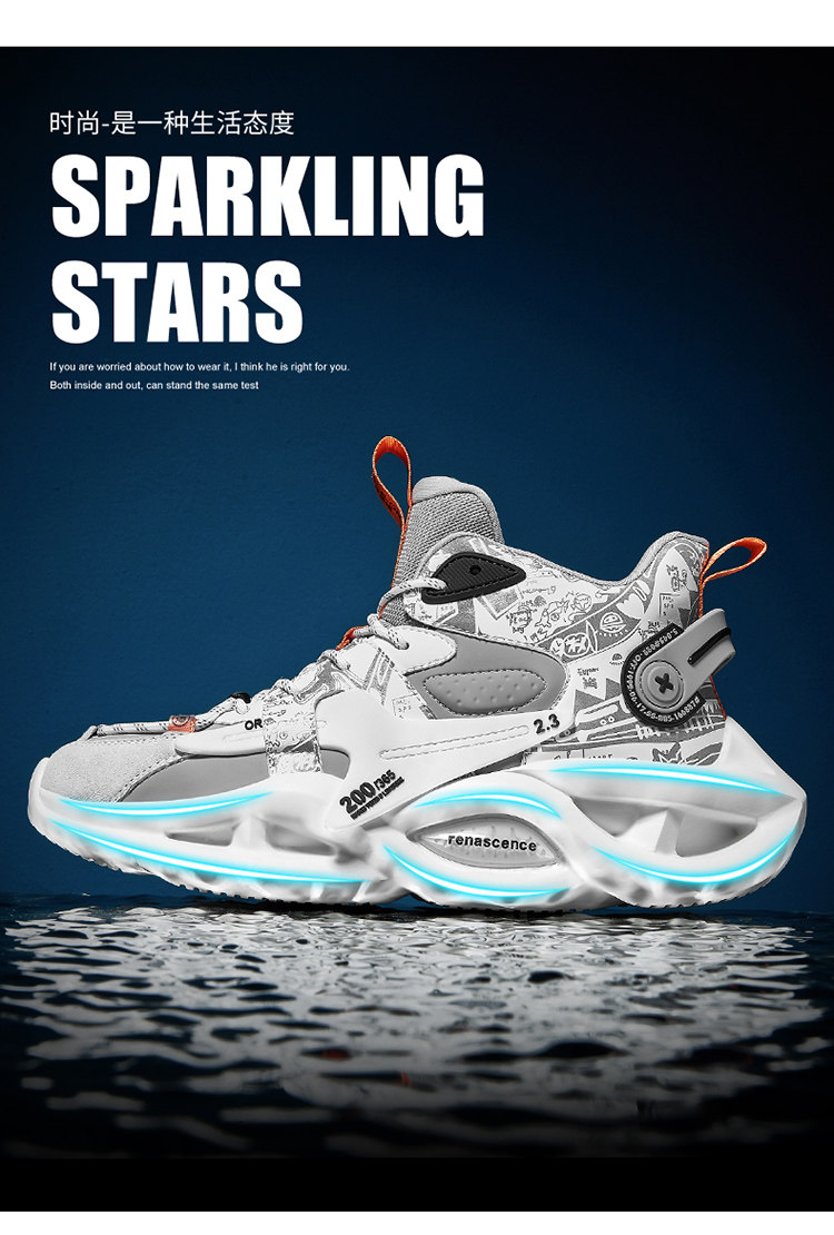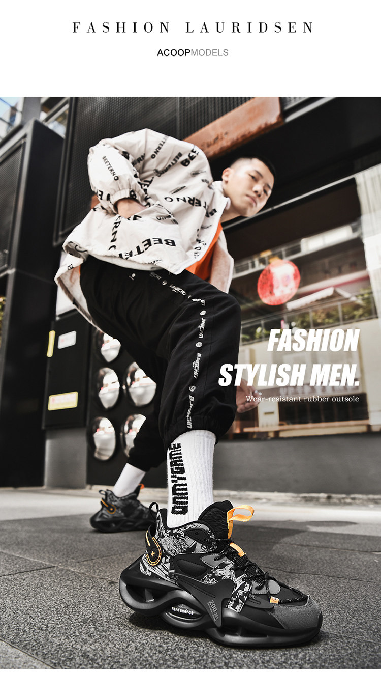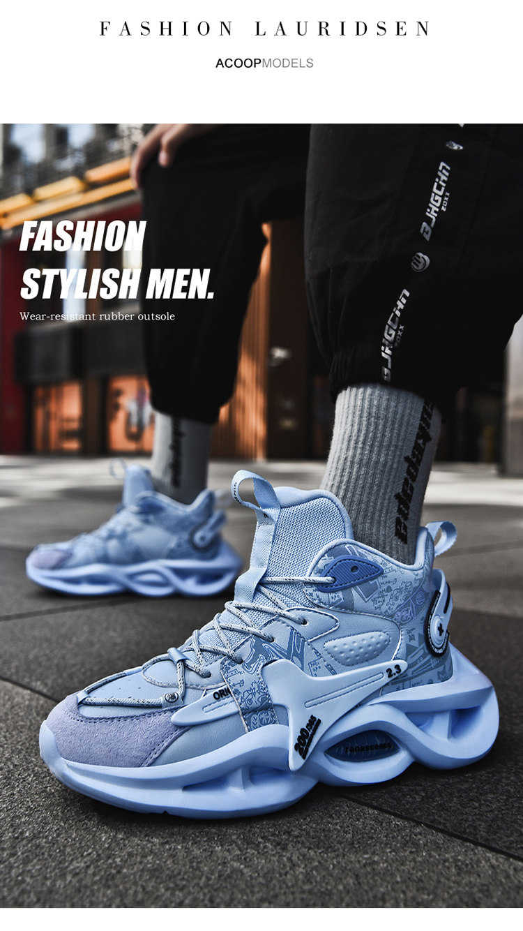 High-Top Men's Shoes, Summer 2025 New Model, Thick-Soled, Shock-Absorbing, Non-Slip, Wear-Resistant, Sports Running Basketball Trendy Shoes for Junior High School Students