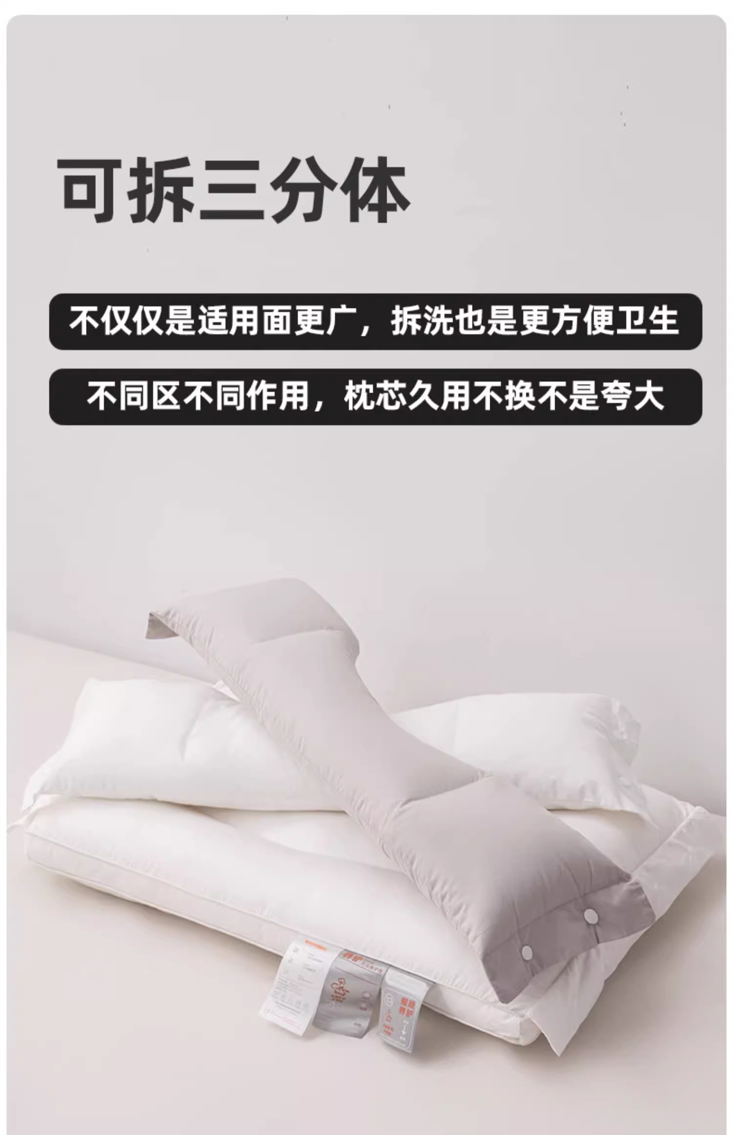 All-Cotton Detachable Two-Way Pillow with High and Low Pillow Cores, Dual-Layer Partitioned Side Sleeping Pillow, Neck Protection, Sleep Aid, Home Use, for Men
